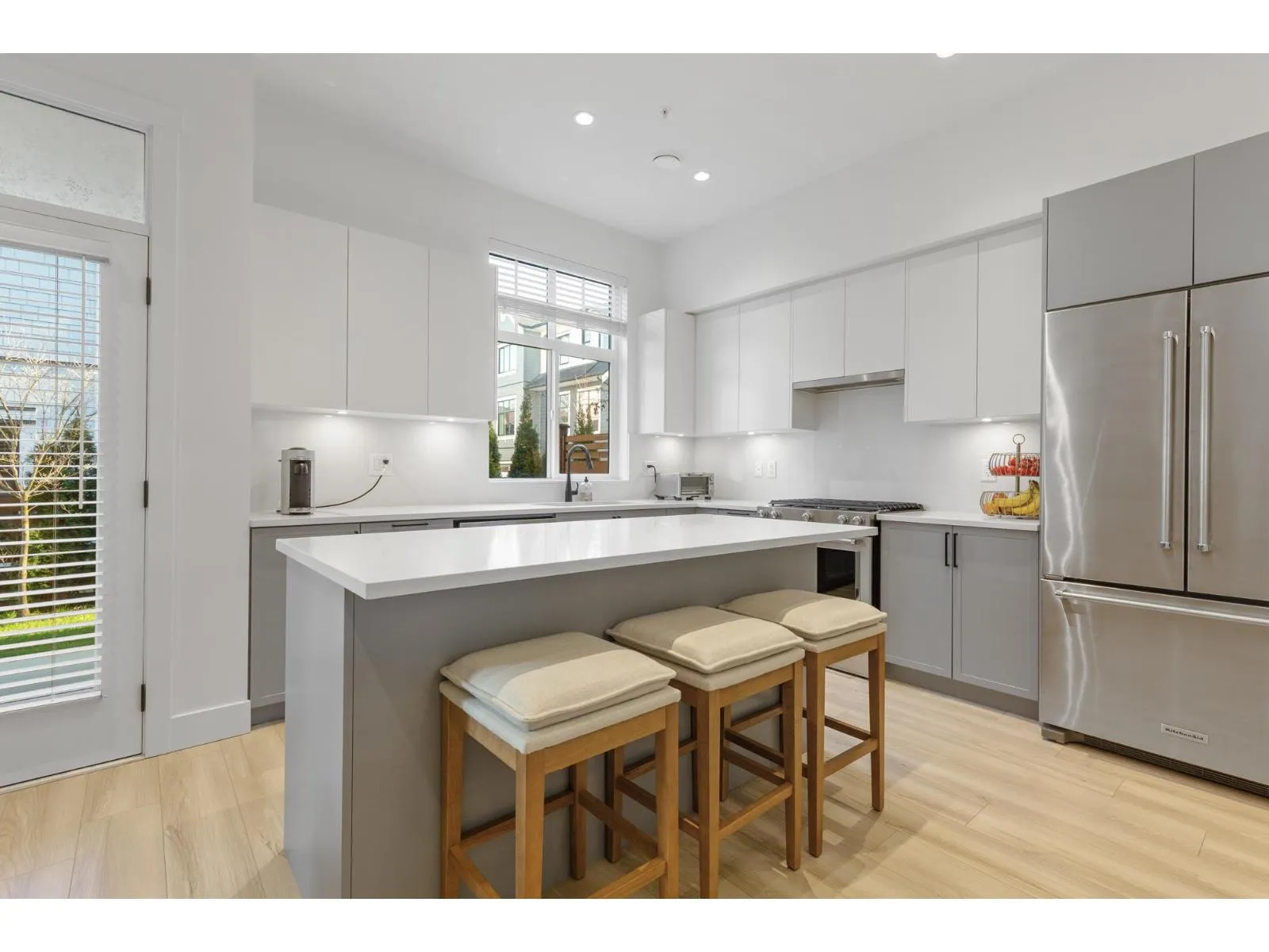 Stunning 2 level townhome at the 2024 Grand Haven Award-winning Newbury built by Zenterra! Ideally located within the development offering easy access and a sought after oversized, East facing private backyard. This 3Bed / 3Bath home features A/C, hot water on demand, 10' ceilings, Ample natural light, Double wide garage pre-wired for EV, Powder room on the main floor, Stainless steel appliances, Gas Stove, Quartz counters and a large Kitchen/Great Room perfect for entertaining. Upstairs you'll find 3 generous sized bedrooms including a King sized Primary bedroom with a spa inspired 4pc ensuite. Walking distance to R.E Mountain School, Langley Events Centre all local amenities and parks! Pets allowed, low strata fees and the remainder of 2-5-10 warranty! OPEN HOUSE SUN 2-4pm (id:27476)