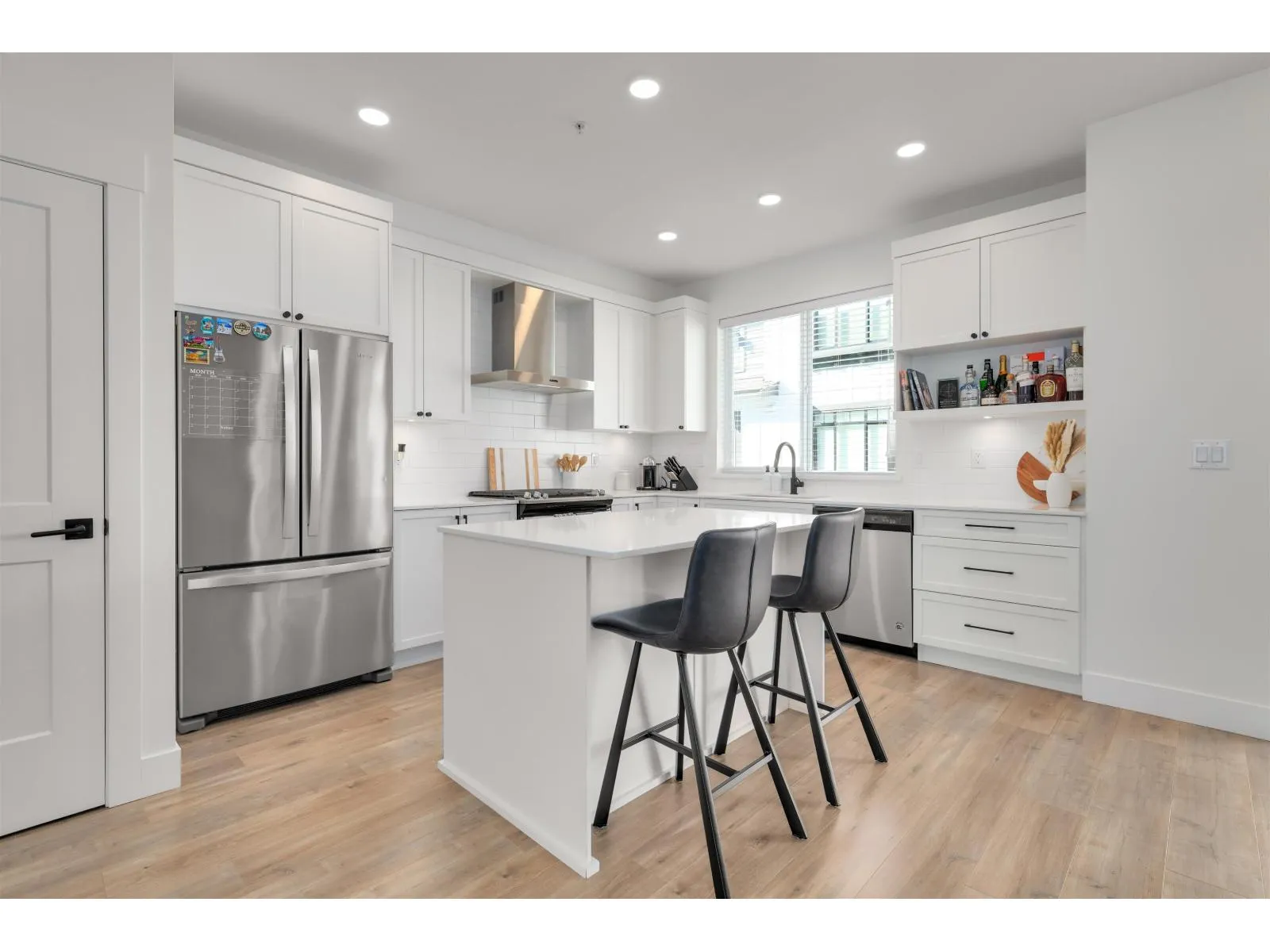 Welcome to the perfect family home at Wilder Crossing, thoughtfully built by award-winning Infinity Properties! This warm and inviting 3 bed, 2.5 bath & den townhome is nestled in the heart of family-friendly Willoughby Heights. Designed for comfort, it features wide-plank laminate floors, an open kitchen with Quartz counters, Whirlpool S/S appliances, A/C on every level, forced-air heating, EV charger, and an oversized garage with epoxy floor that even fits a truck. Step outside to your fenced patio/yard with gas BBQ hookup, then retreat upstairs to the spacious primary with vaulted ceilings and walk-in closet. All within walking distance to R.C. Garnett Elementary, parks, trails, and playgrounds. BONUS family extras: laundry countertop, garage shelving, and irrigation for the gardens. (id:27476)