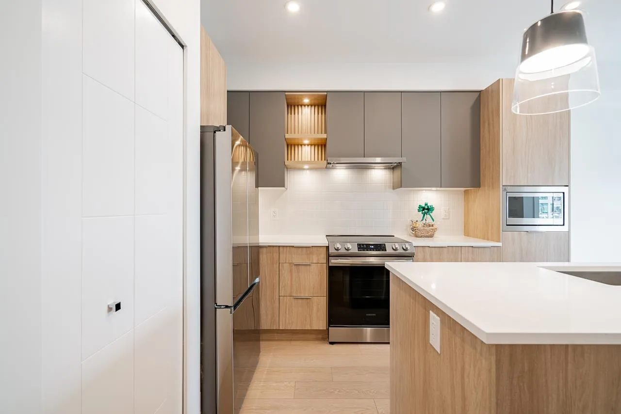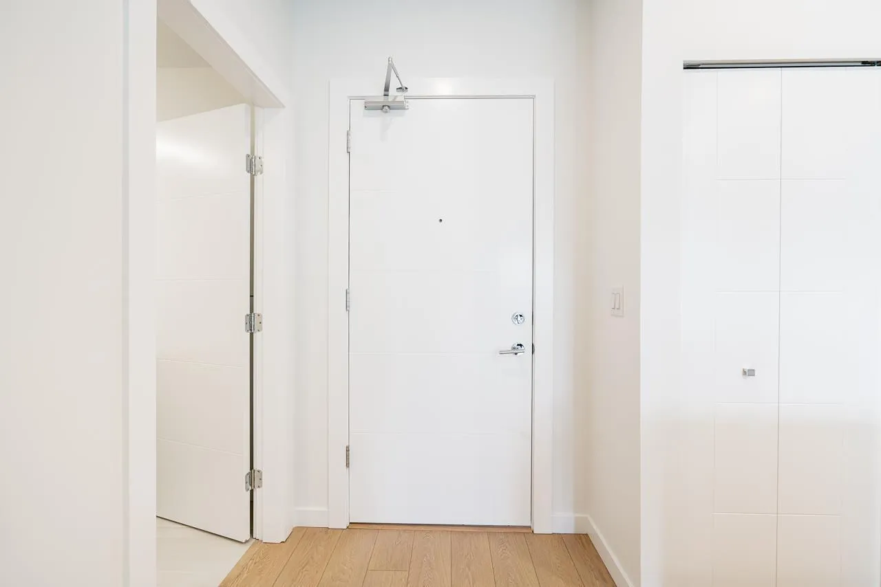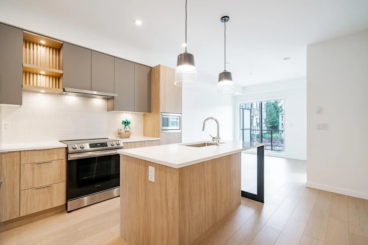 Welcome to Eastleigh! This stunning 1 Bed + 1 Bath CORNER UNIT offers luxury living with sleek modern finishes and custom designer millwork. The spacious master bedroom easily accommodates a king-sized bed and features a generous walk-in closet. STORAGE room provides the perfect footprint for a home office or a cozy second bedroom. The open-concept kitchen boasts premium Samsung S/S appliances, quartz countertops, and smart access to the stacked laundry. Residents enjoy amenities, including community garden plots, a playground, and a professional co-work space with a private boardroom. Steps from historic downtown Langley's boutique shops, dining, and parks. Close to the community center. Only a 10-minute walk to the future Skytrain Station! (id:27476)