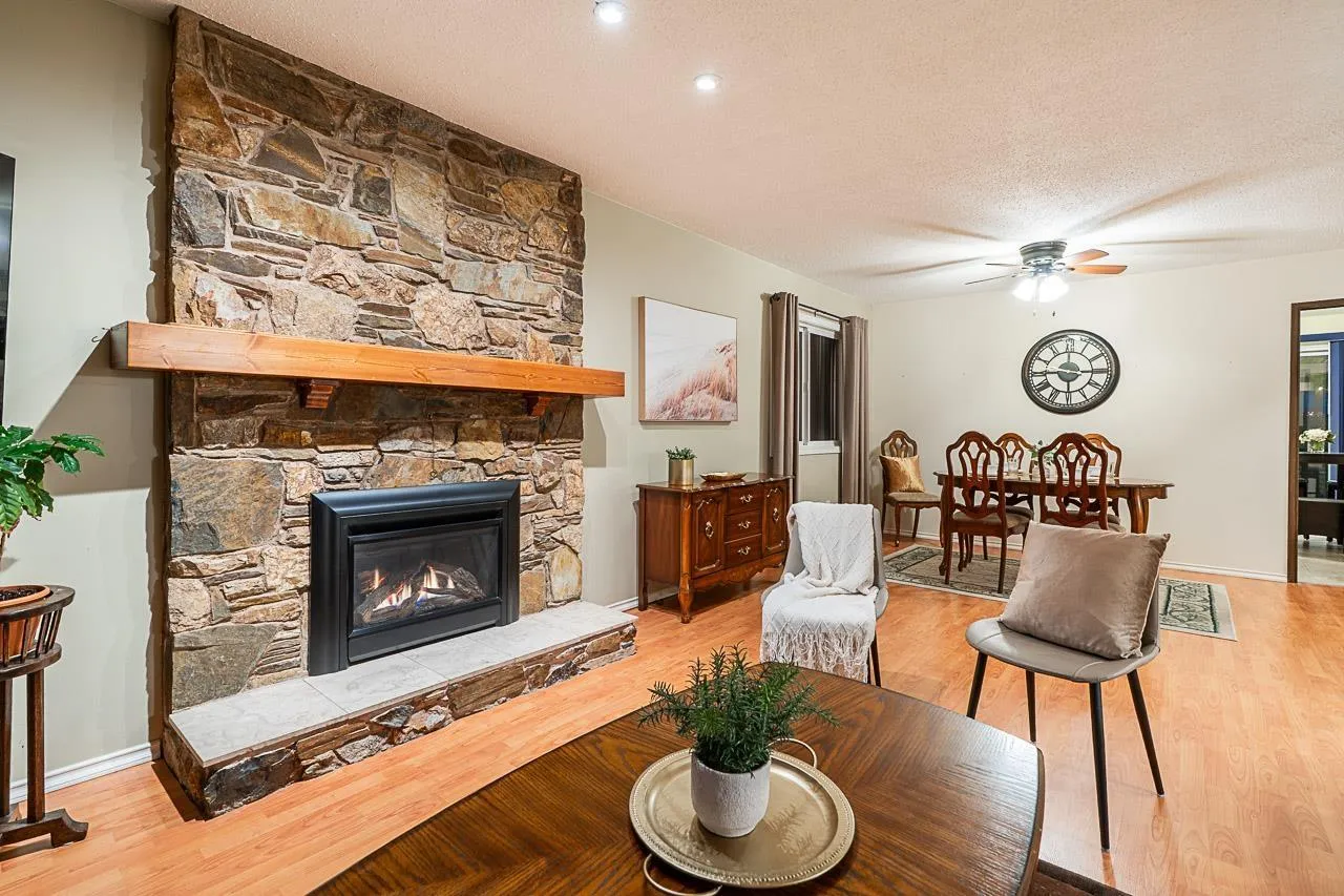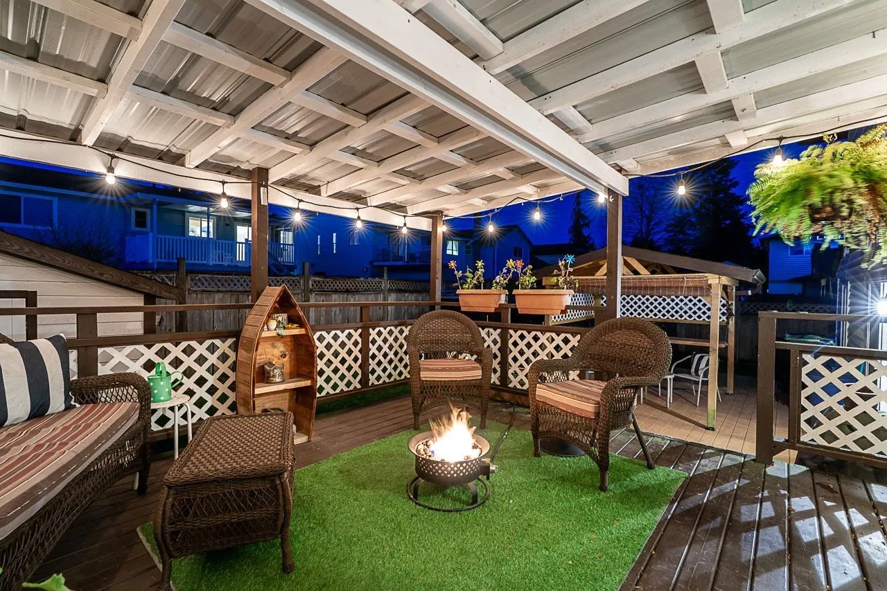 This welcoming three-level split in Aldergrove offers peaceful, wide-open living room views and a serene setting fronting onto farmland that you'll love coming home to. Fresh flooring throughout, 24 year old roof, 2020 H/W tank, vinyl siding, double glazed windows, 2007 furnace, stainless steel appliances including gas stove, newer fireplace and an upgraded deck make this home truly move-in ready. The oversized covered balcony is a standout, perfect for morning coffee or evening wind-downs. A double-garage and detached shop 10 x 10 add great functionality, rounding out this well-cared-for property that blends comfort, space, and lifestyle. Short walk to ACSS, upcoming Aldergrove Town Center, Bus & easy access to Hwy 1. Home Sweet Home! (id:27476)