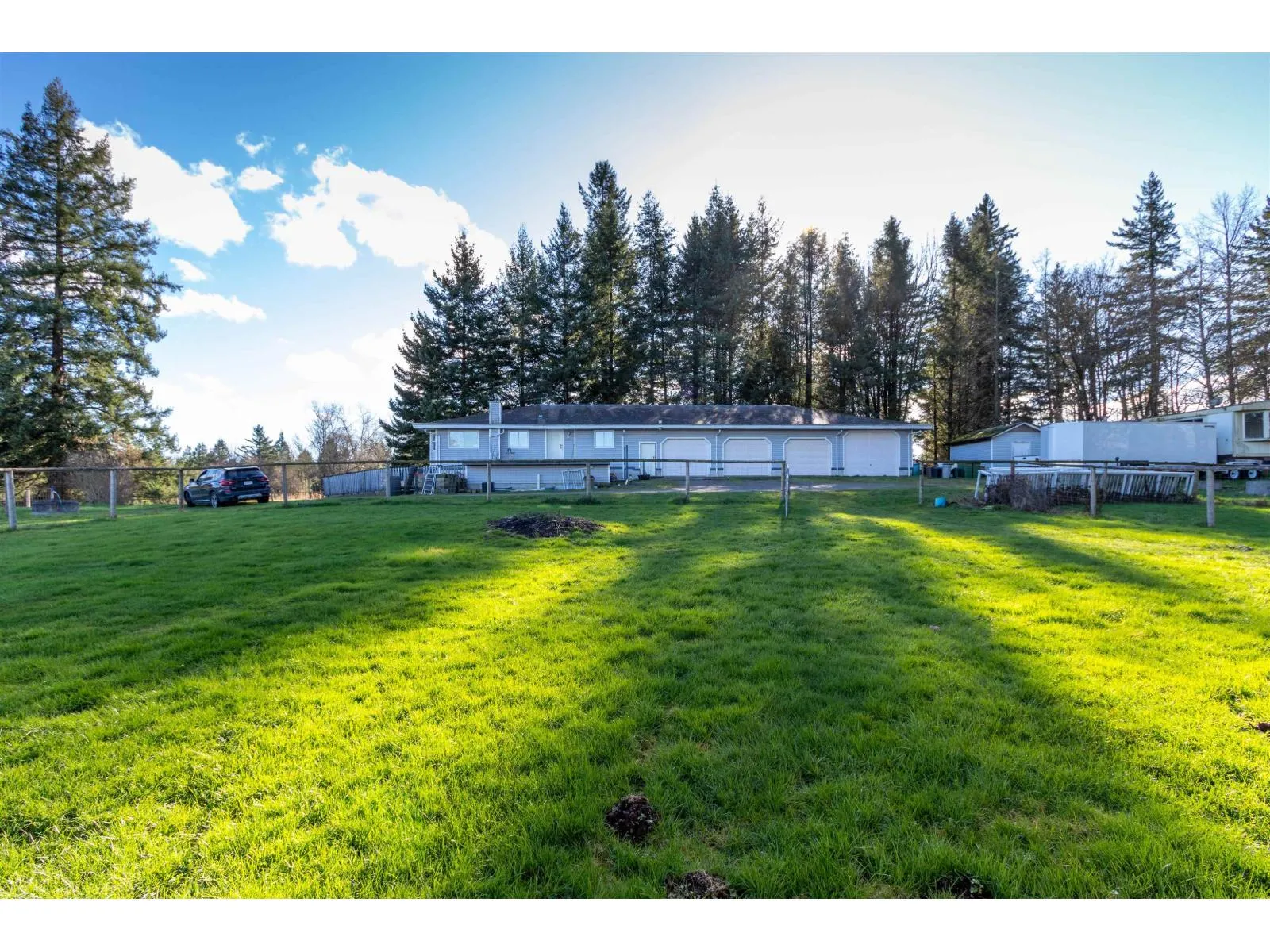 Best small acreage property in Campbell Valley? This could be it- High & Dry! Impressive 4.74 acre property perched atop a rolling hill offers an elevated living experience with bright & airy "big sky" outlook and fantastic 180 degree views over the surrounding area from sunny South all the way North toward North Shore mountains. Custom rancher style house and attached 2400 sqft garage- both are free span structures allowing for wide open space & flexible floor plan options. Huge deck off main living area+ full unfin basement w/ separate access, roughed-in bathroom and easy kitchen potential. The property is partially fenced, featuring pasture areas ideal for animals, complemented by a forest area in the back. 600 sqft workshop & separate Manufactured home with services also included! (id:27476)