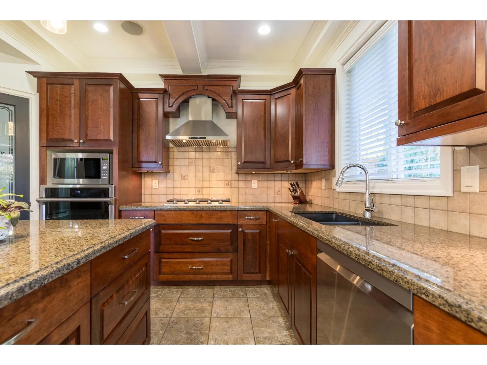 This masterfully maintained 5 bed, 4 bath Willoughby home where every detail has been considered. Features highly sought-after primary bedroom on the main floor. Soaring vaulted ceilings and a cozy gas fireplace, creating an airy yet intimate atmosphere. Kitchen w/granite countertops, newer appliances, pantry, and the comfort of heated floors. Unique features set this home apart, including built-in speakers, a whole-home intercom system, central A/C, garage wired for 220V, perfect for an EV charger, lots of storage, and backs onto a park w/playground. A bright 1 bed suite w/own laundry, perfect for extended family or a premium rental. Fully fenced, private backyard is an entertainer's dream w/ durable composite deck covered w/ an awning, and lush turf grass. Close to schools and shopping. (id:27476)