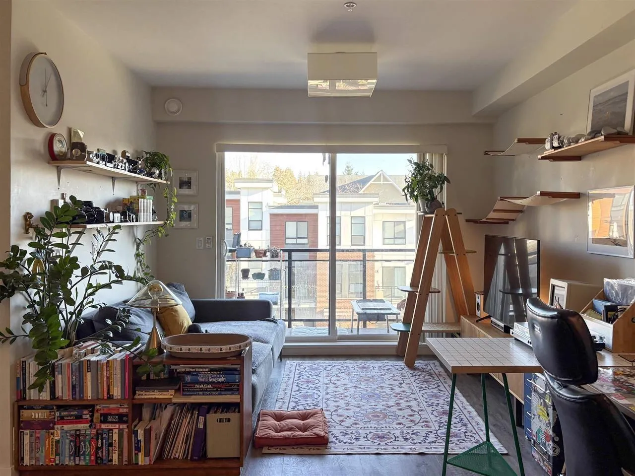 Priced to sell! Nature meets convenience in this east-facing 1 bed + den home with a thoughtfully designed open-concept layout. Two scenic trails begin right at your doorstep: the front trail connects to Walmart and Costco, while the back trail winds through a quiet, protected greenbelt to Circle K, a local grocery store, and Starbucks. The spacious kitchen features quartz countertops, stainless steel appliances, and an island with built-in storage. The bathroom offers double sinks for added comfort. Located in a quiet residential neighborhood, yet walkable to schools, parks and everyday essentials, including RC Garnett Elementary and R.E. Mountain Secondary (IB Program). Don't miss out! 1 parking 1 locker. (id:27476)