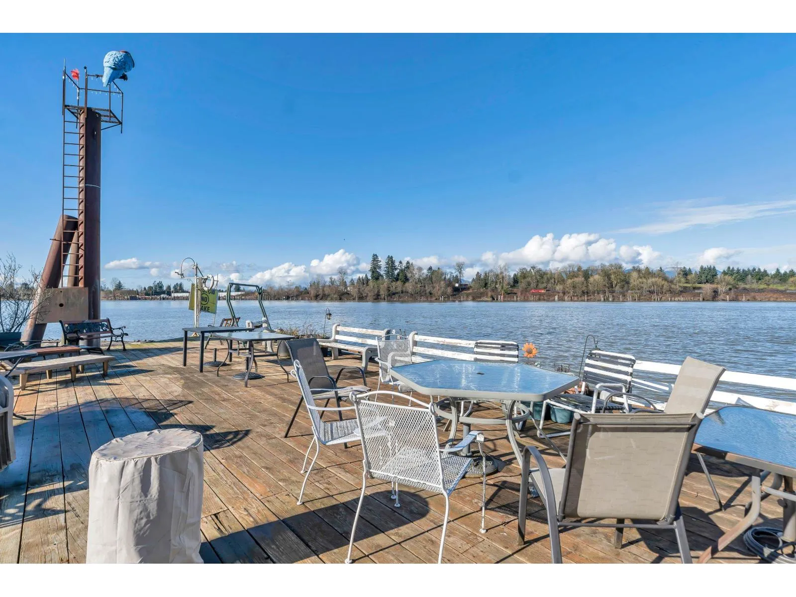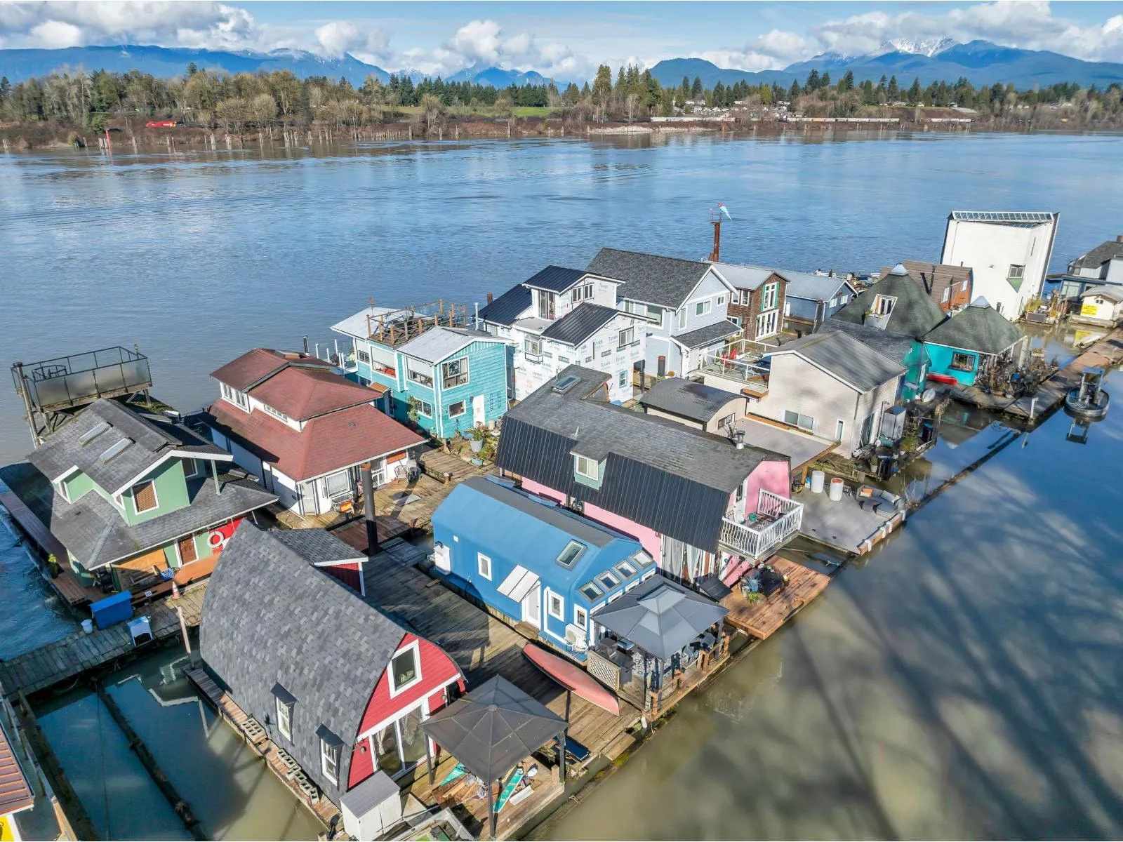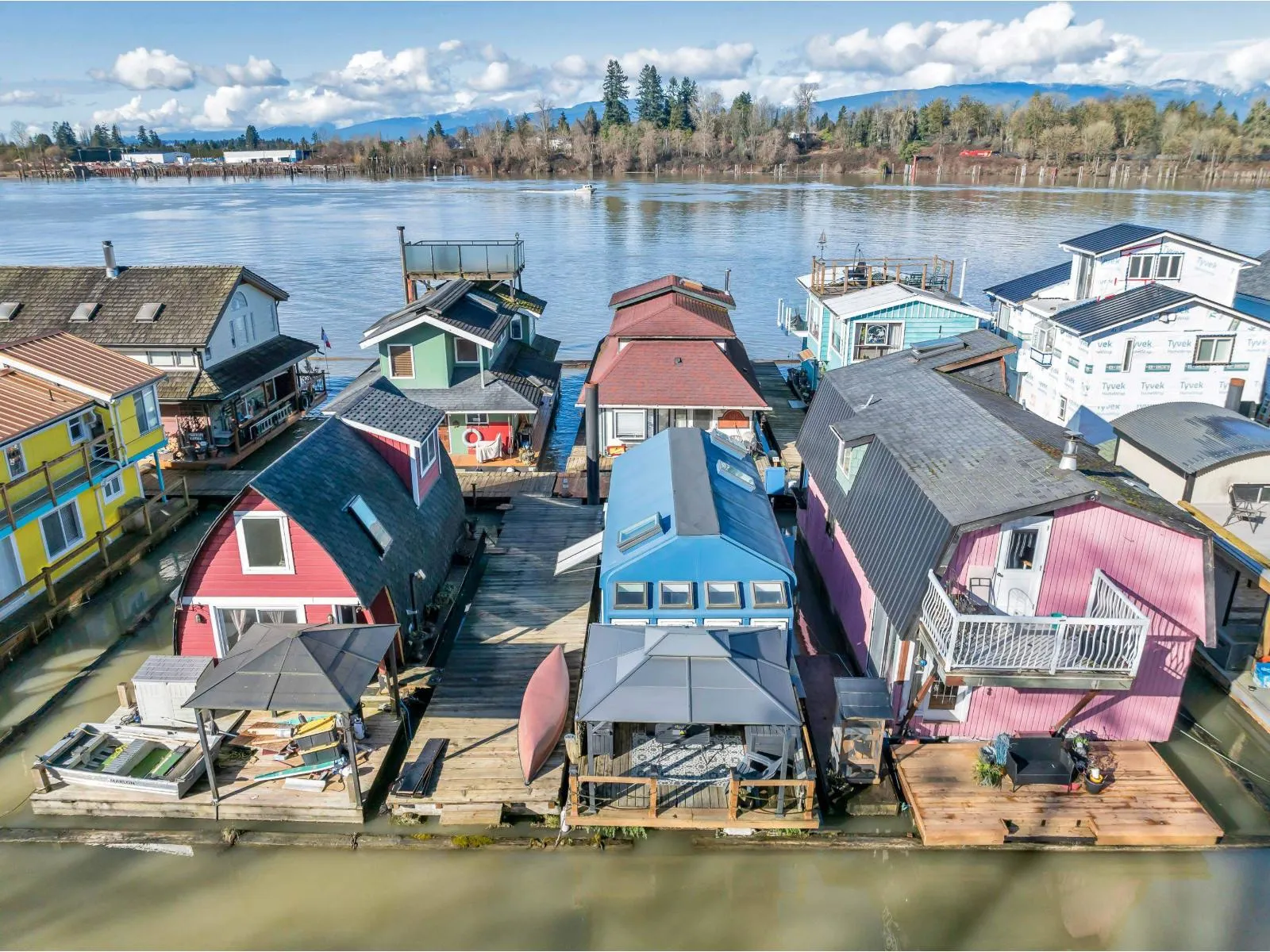 The cutest float home you ever did see! Beautifully updated bachelor studio with a sleeping loft and skylights that flood the space with natural light. Enjoy peaceful mornings on the covered patio, surrounded by nature in the sought-after Derby Reach community. A shared communal area offers an even more stunning view to relax and connect. Heat pump, on-demand hot water (propane), upgraded plumbing, and modern finishes throughout. Adult community with no rentals, pets welcome. One-time marina entry fee $12,000. Monthly moorage $1,250. Optional 10x10 storage unit $175/month. Scenic trail access for walking, biking, and fishing, plus an easy route to Fort Langley shops and restaurants. Peace, privacy, and charm all in one. (id:27476)