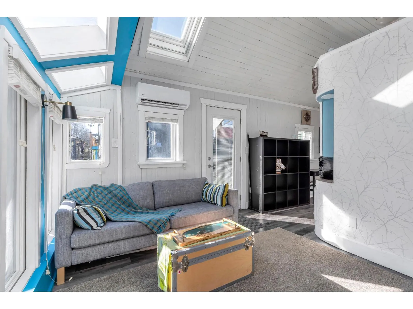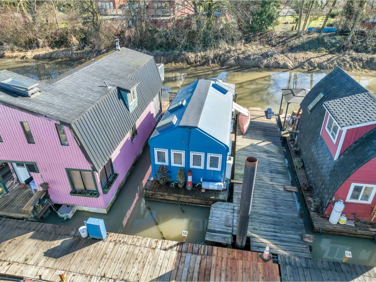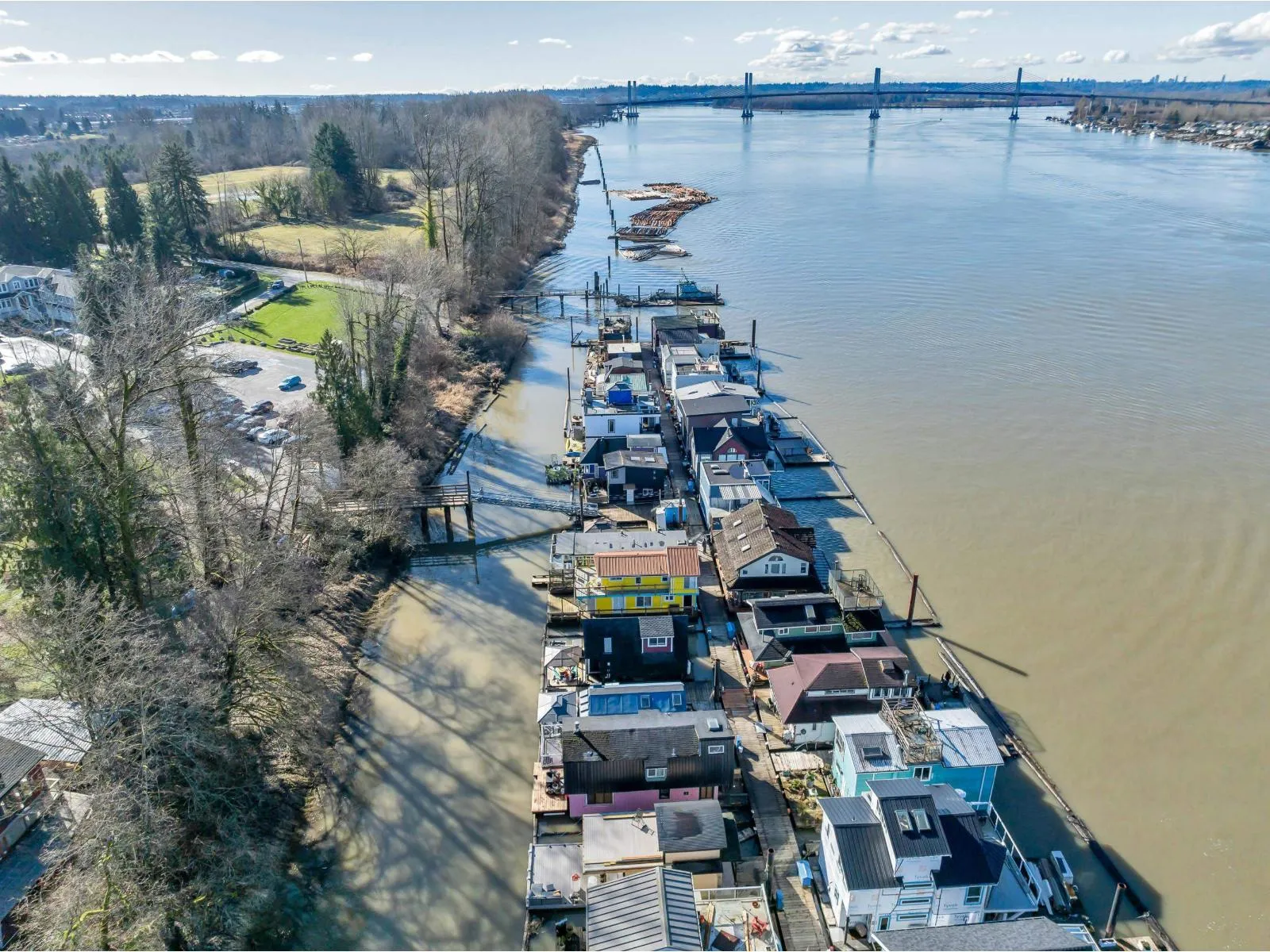 The cutest float home you ever did see! Beautifully updated bachelor studio with a sleeping loft and skylights that flood the space with natural light. Enjoy peaceful mornings on the covered patio, surrounded by nature in the sought-after Derby Reach community. A shared communal area offers an even more stunning view to relax and connect. Heat pump, on-demand hot water (propane), upgraded plumbing, and modern finishes throughout. Adult community with no rentals, pets welcome. One-time marina entry fee $12,000. Monthly moorage $1,250. Optional 10x10 storage unit $175/month. Scenic trail access for walking, biking, and fishing, plus an easy route to Fort Langley shops and restaurants. Peace, privacy, and charm all in one. (id:27476)