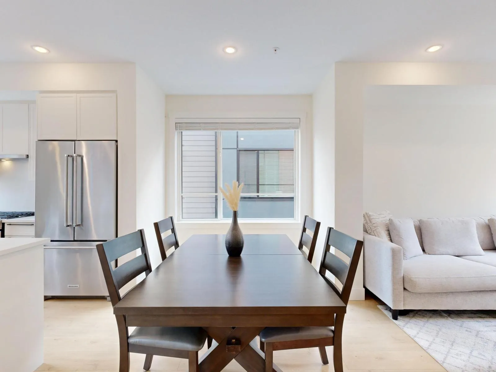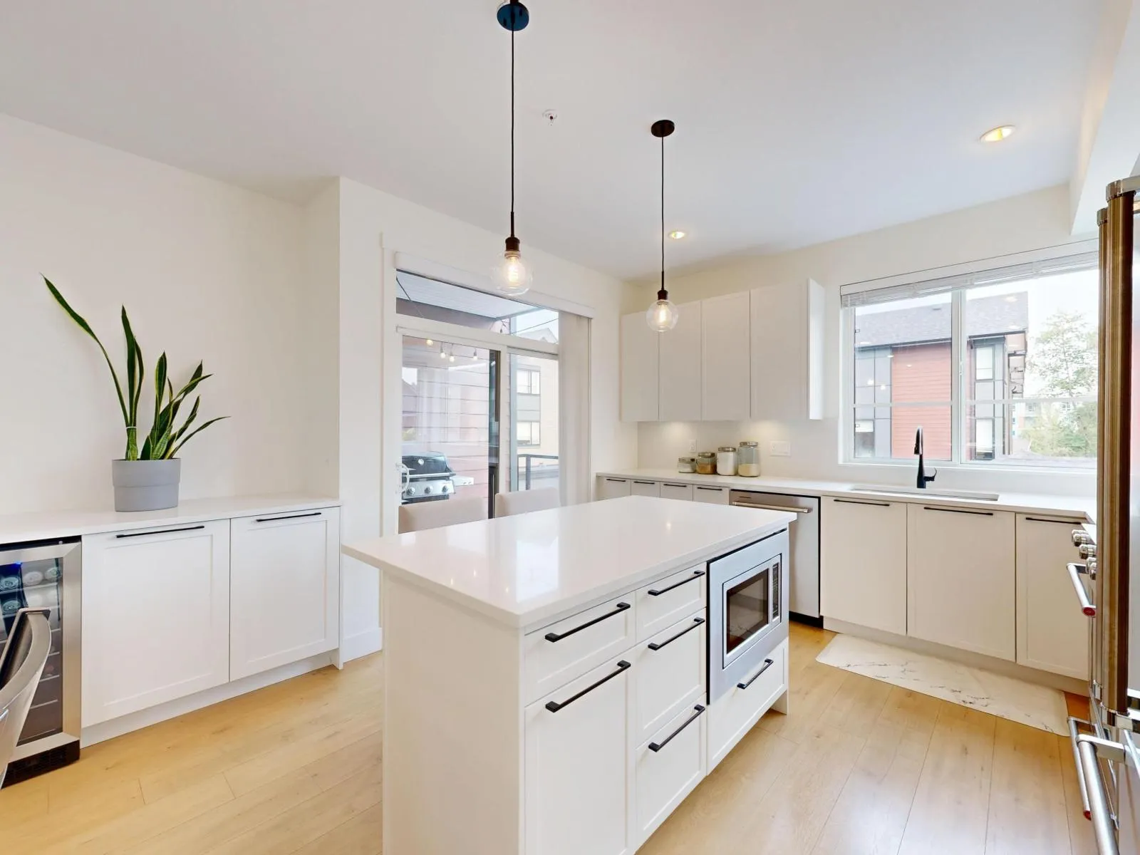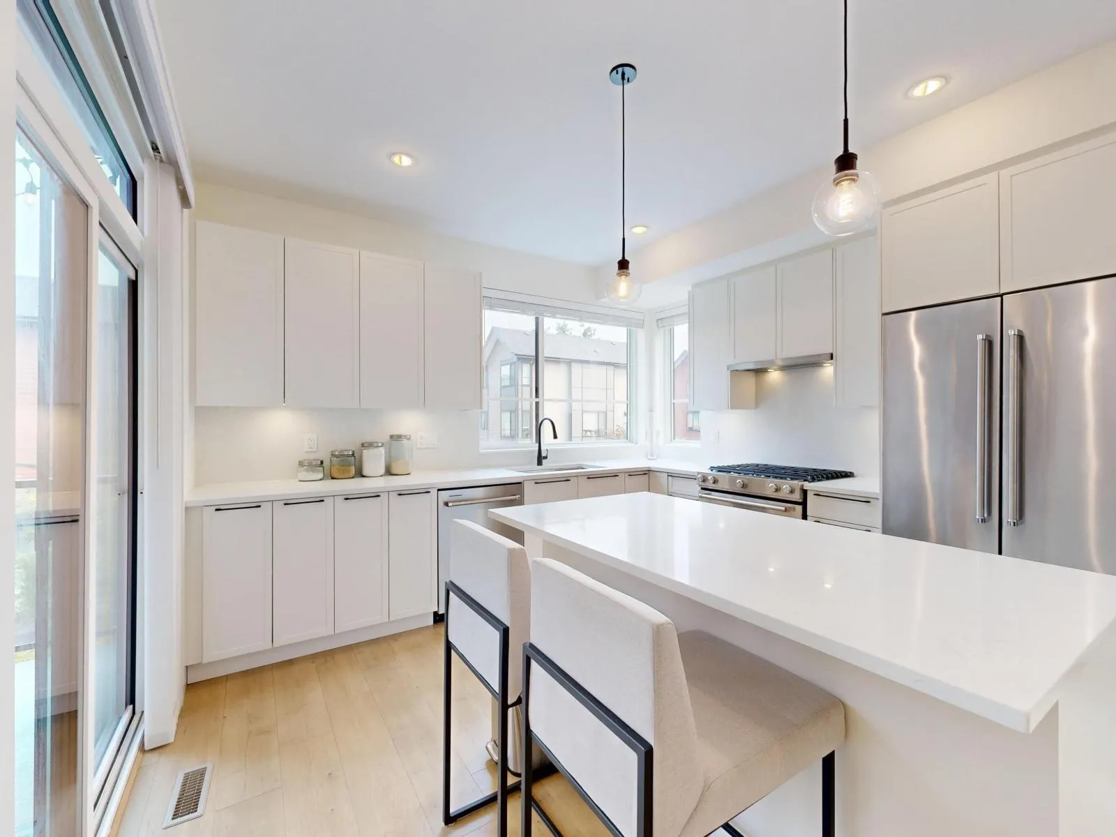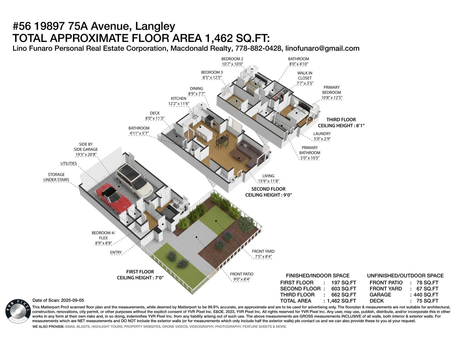 Elevate your lifestyle in this stunning, modern and highly sought-after corner unit townhome nestled in the heart of Langley's vibrant Willoughby Heights. This bright and spacious 4-bed, 3-bath home boasts 1,462 sqft of stylish living with extra windows providing abundant natural light throughout. The open-concept main floor is perfect for entertaining and offers 9ft ceilings, a gourmet kitchen with large island, quartz countertops, premium KitchenAid appliances, and sleek cabinetry. 3 spacious bedrooms on upper level with additional bed/flex room on lower level. Enjoy year-round comfort with forced air heating, A/C, and on-demand hot water. Side-by-side double garage with EV charging and ample storage. A rare opportunity to own a modern, well-appointed corner unit in a prime location! (id:27476)