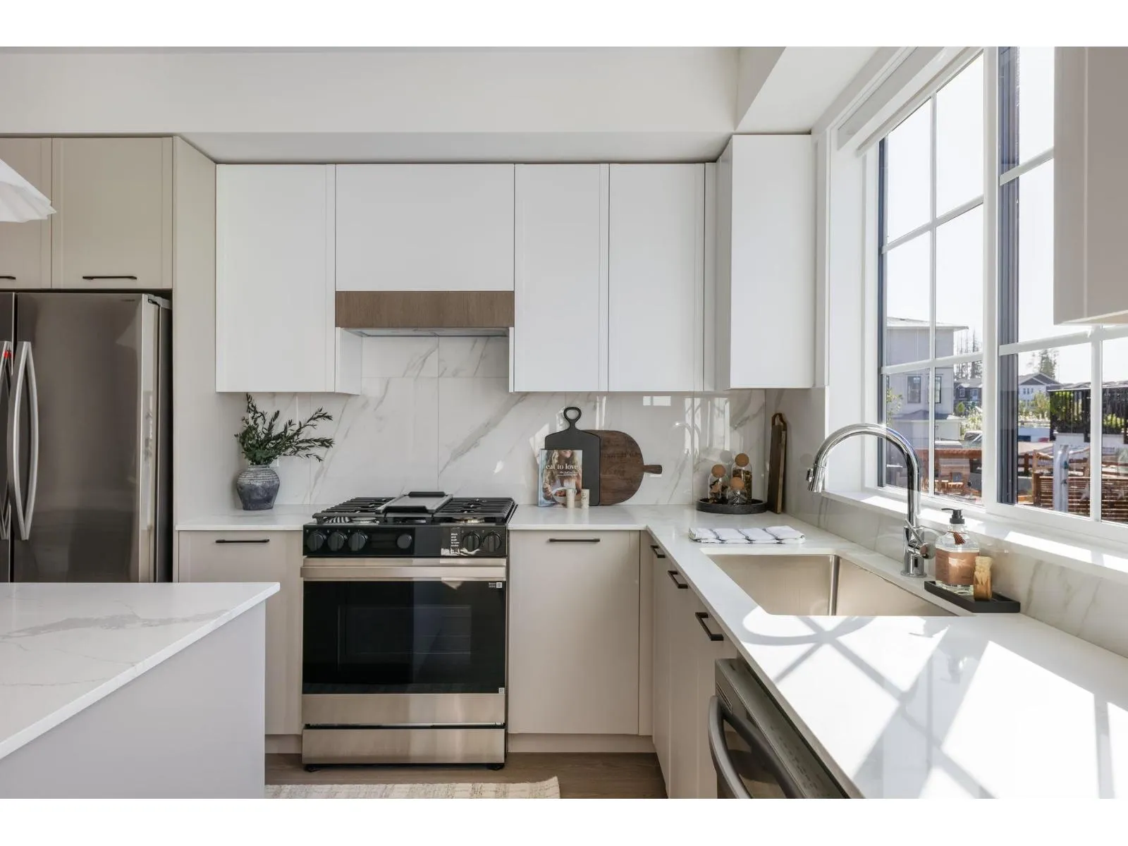 Welcome to TOWNSIDE VILLAGE by Warwickshire homes. This NEW, CORNER 4-bed, 3.5-bath with double SxS garage is what your growing family has been looking for! Bright main floor offers a huge great room w/ fireplace, 9ft ceilings, walk in pantry, SS appliance package with gas range & 10.5ft island for entertaining! Ground level bedroom & full bath perfect for guests, in-laws etc. South facing fenced yard & balcony w/bbq gas line. Expansive Primary suite offers HIS+HERS walk-in-closets. Lamanite included throughout, full-size SxS laundry + large linen closet, gas-forced air heating, and FREE AC for a limited time. Situated on a quiet street, steps to transit, great schools and Willoughby Town Centre shops. MOVE IN SPRING 2026. Showhome open Sat-Wed 12-5, #1 - 20650 78 Ave Langley. (id:27476)