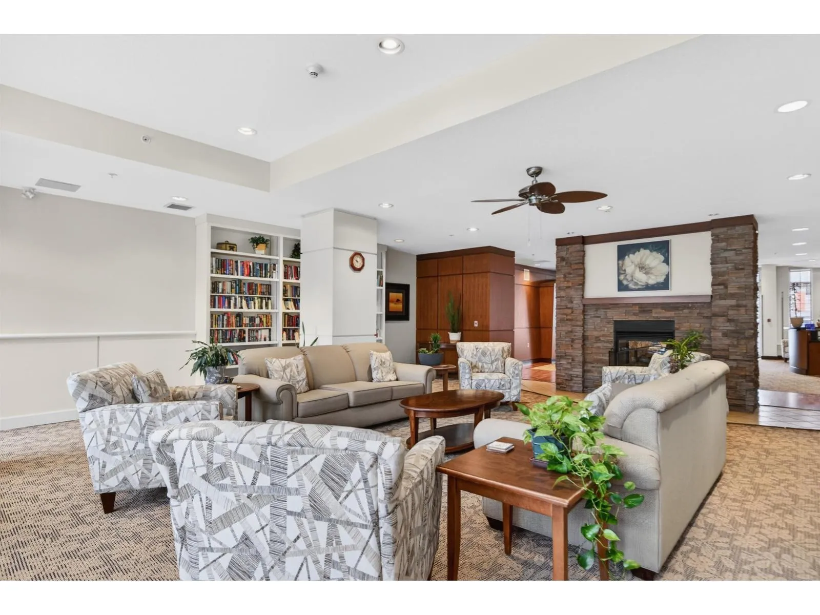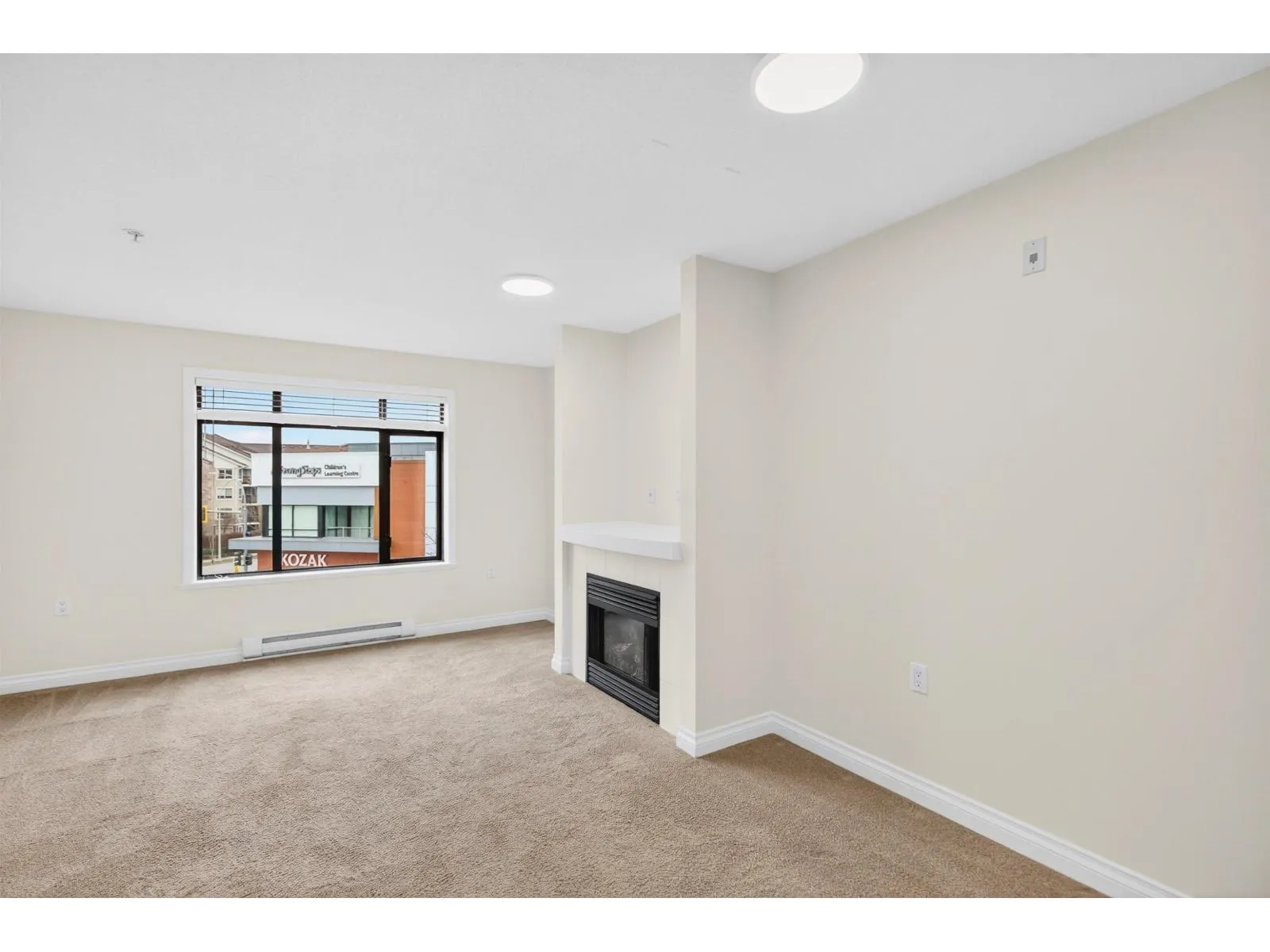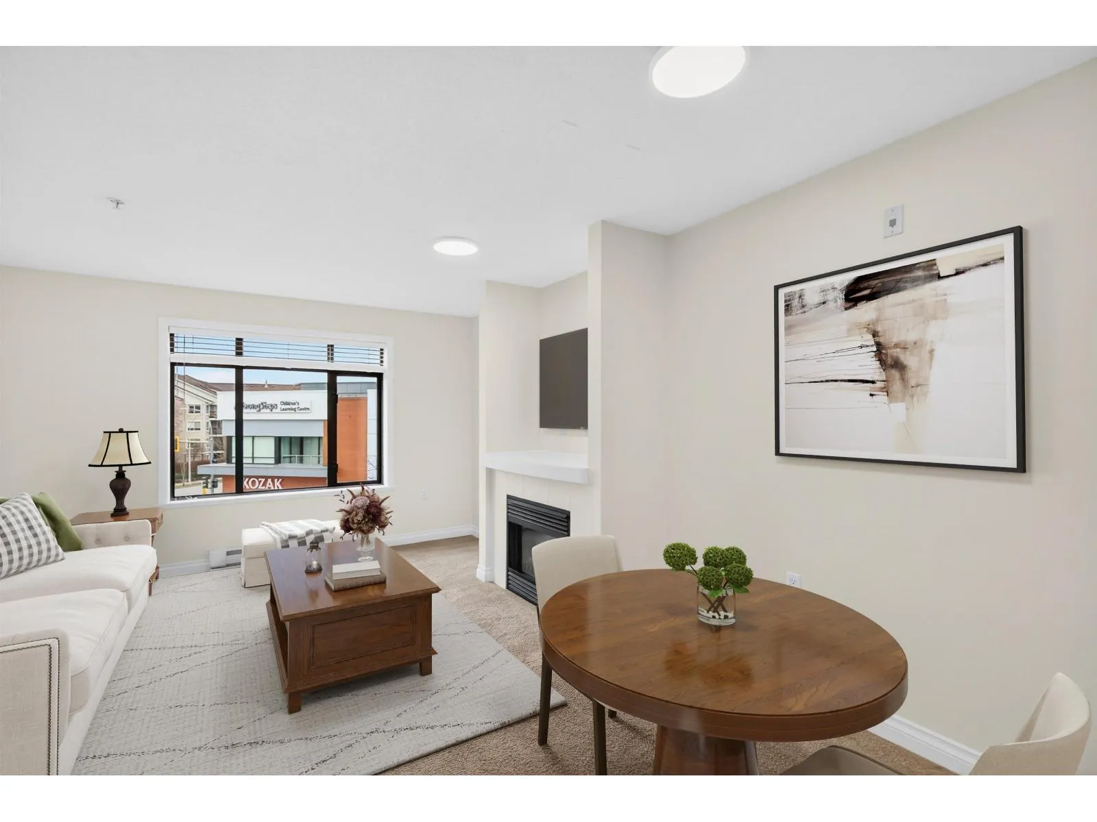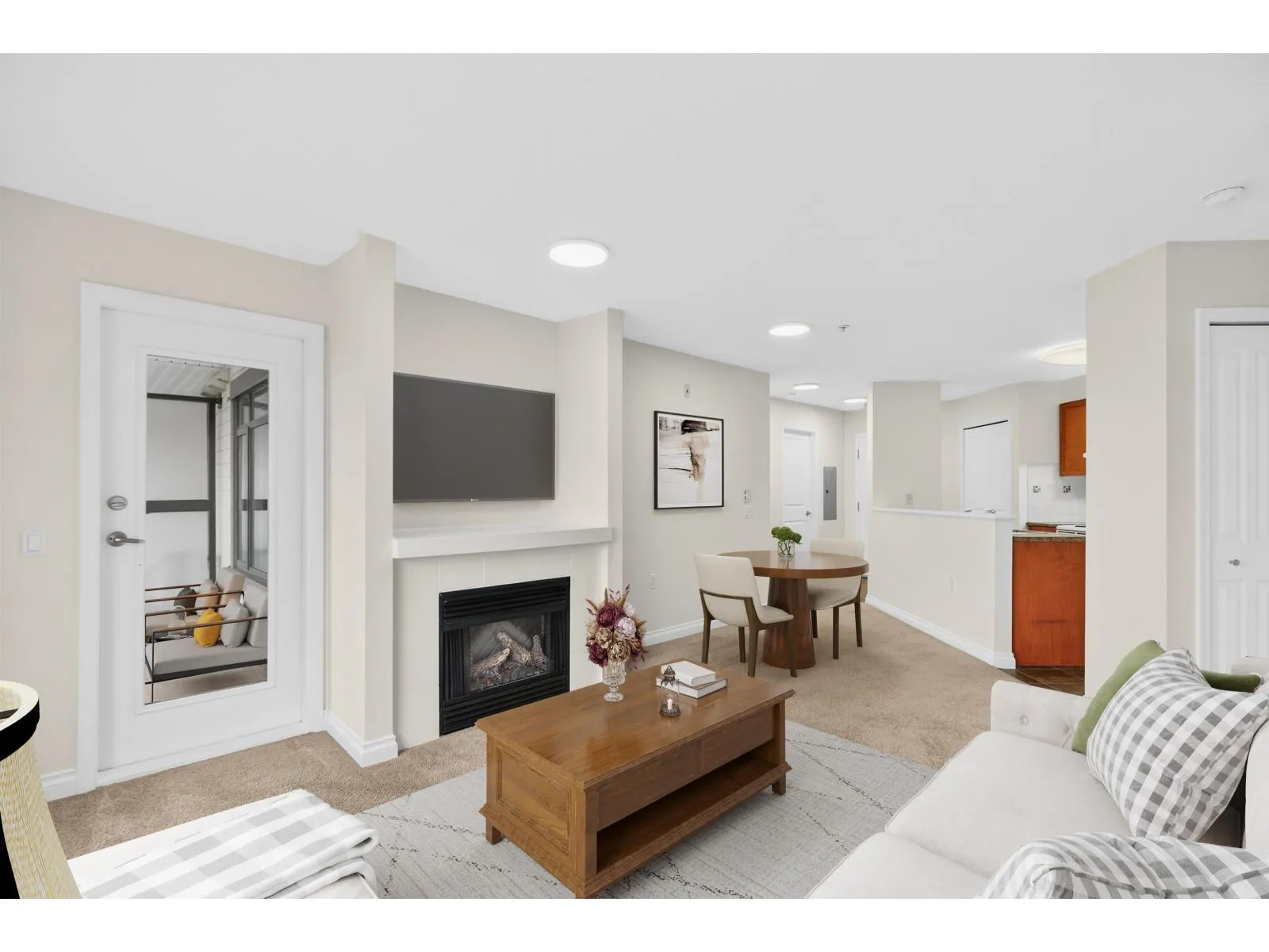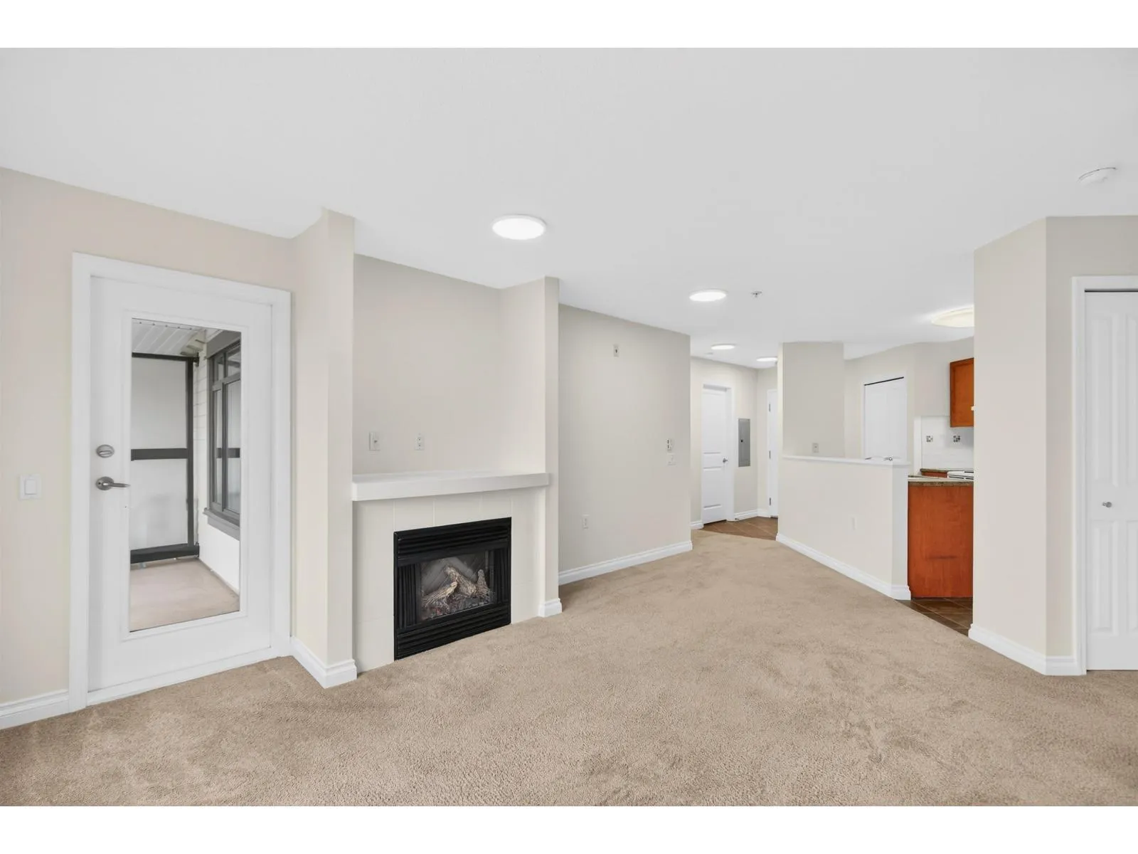 The Residences at Village Square in the heart of Walnut Grove! This bright, open-concept home features fresh paint and a cozy electric fireplace, creating a warm and inviting living space. Offering 2 spacious bedrooms, each with its own ensuite, this layout provides excellent comfort and privacy. Enjoy year-round use of the covered balcony. Includes 1 parking stall and 1 storage locker. This well-managed 55+ community offers concierge service 7 days a week, an exercise room, "Soho Room" lounge, "Broadway Room" available for functions, and beautiful outdoor spaces with BBQ area. Conveniently located within walking distance to shops, restaurants, medical offices, and everyday amenities. (id:27476)