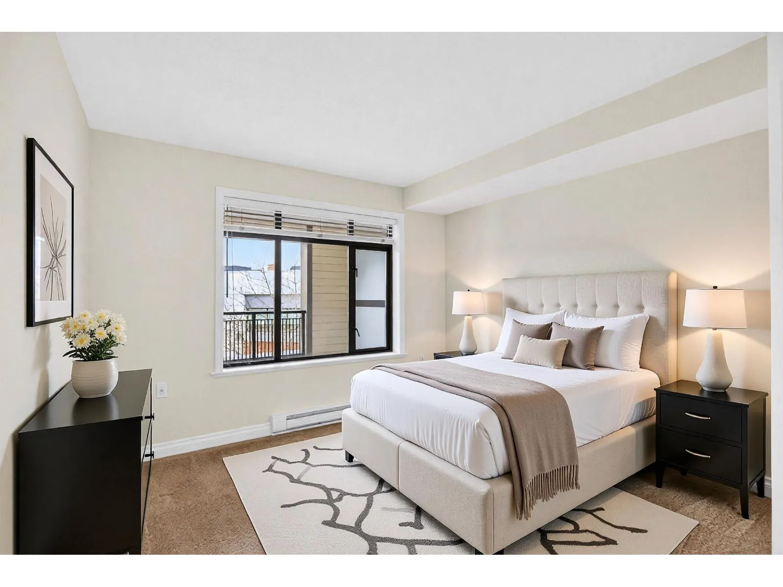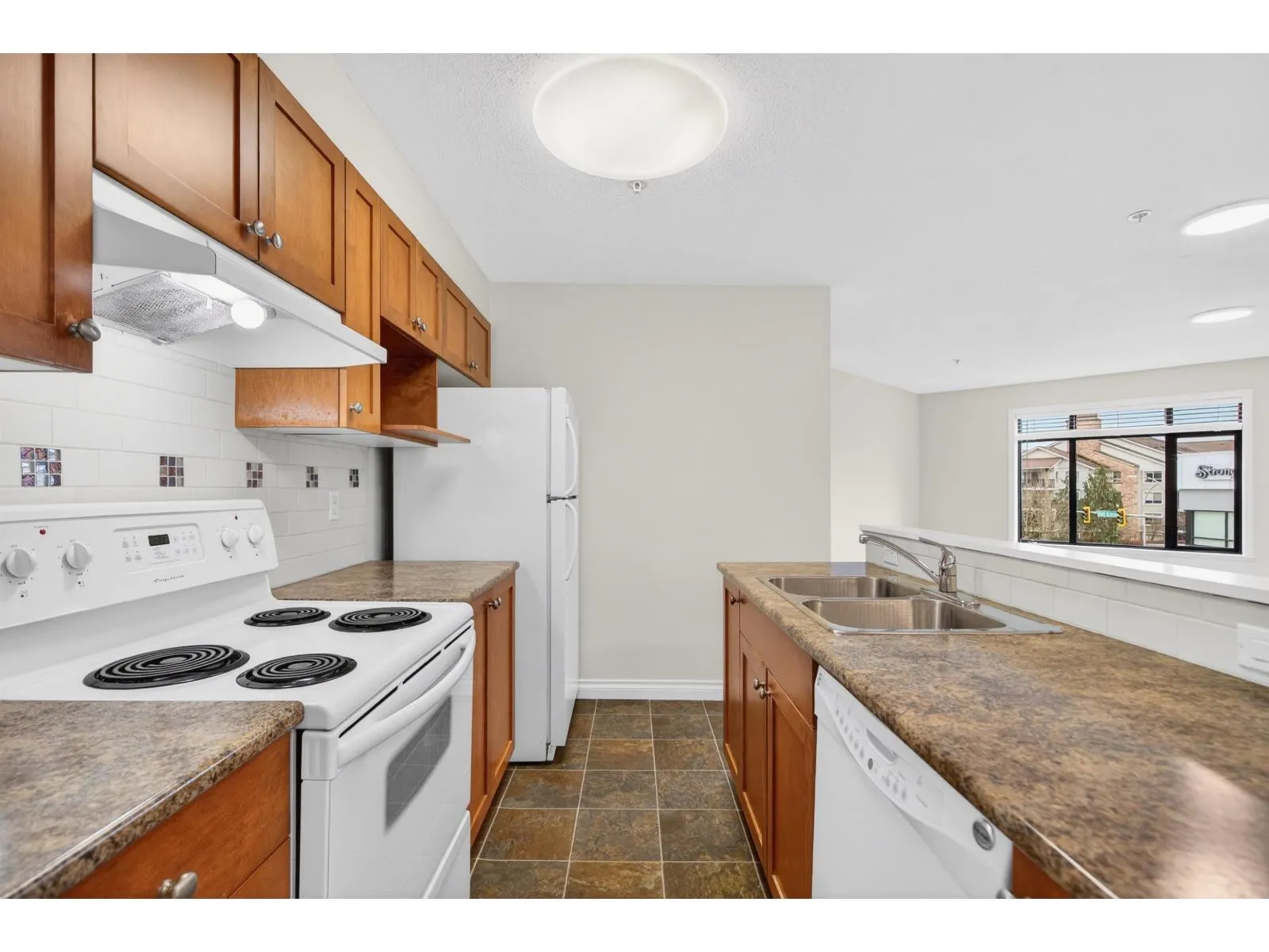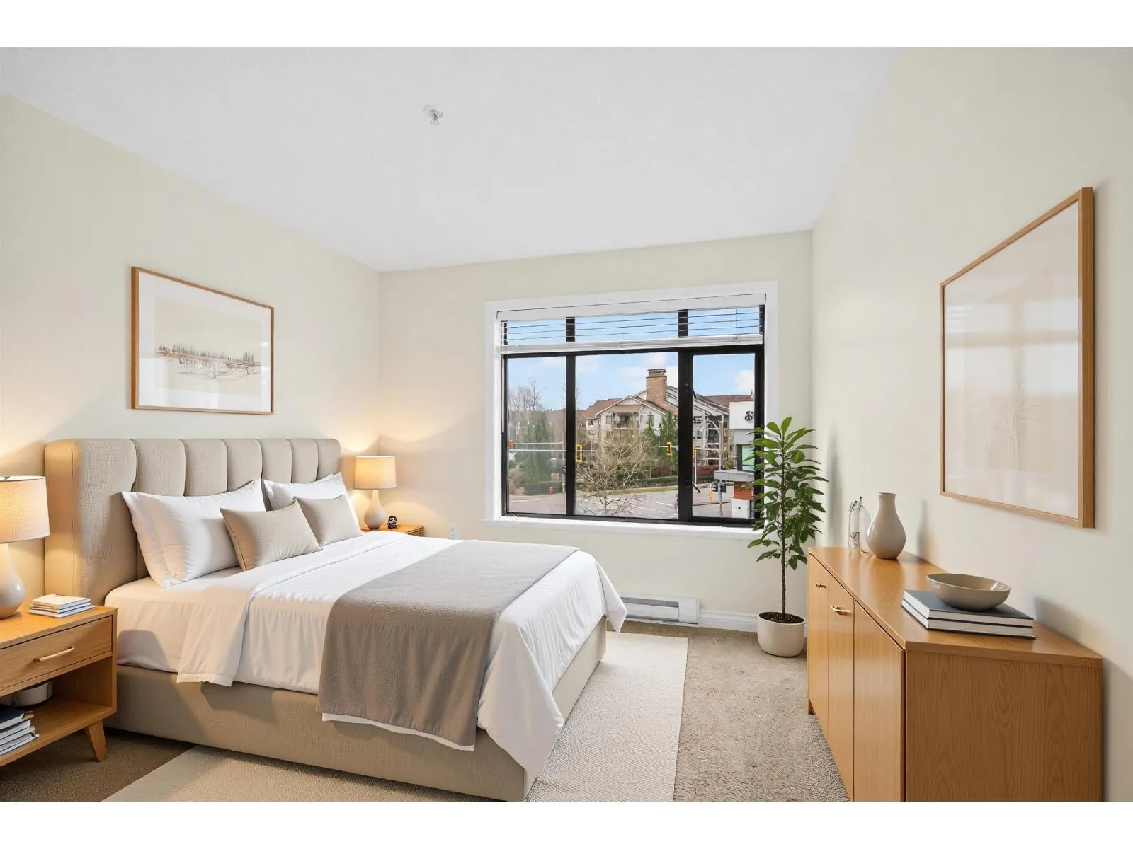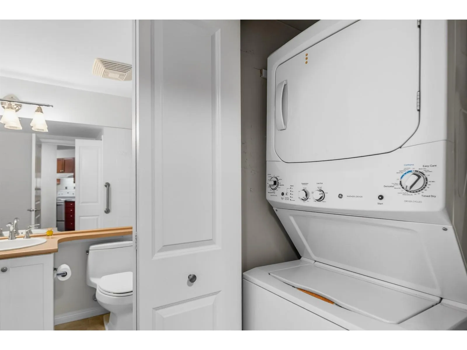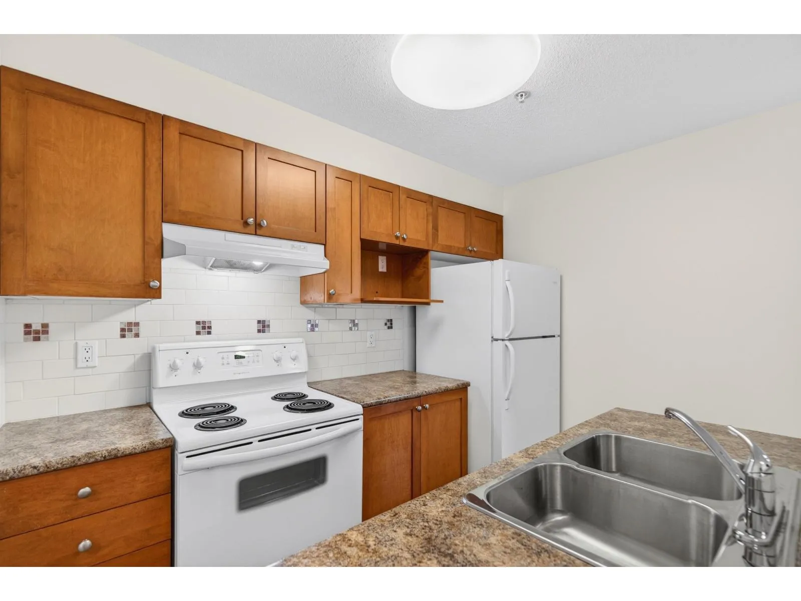 The Residences at Village Square in the heart of Walnut Grove! This bright, open-concept home features fresh paint and a cozy electric fireplace, creating a warm and inviting living space. Offering 2 spacious bedrooms, each with its own ensuite, this layout provides excellent comfort and privacy. Enjoy year-round use of the covered balcony. Includes 1 parking stall and 1 storage locker. This well-managed 55+ community offers concierge service 7 days a week, an exercise room, "Soho Room" lounge, "Broadway Room" available for functions, and beautiful outdoor spaces with BBQ area. Conveniently located within walking distance to shops, restaurants, medical offices, and everyday amenities. (id:27476)