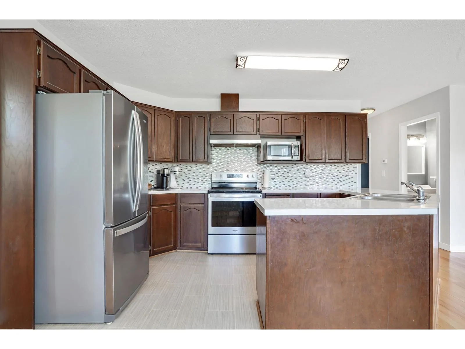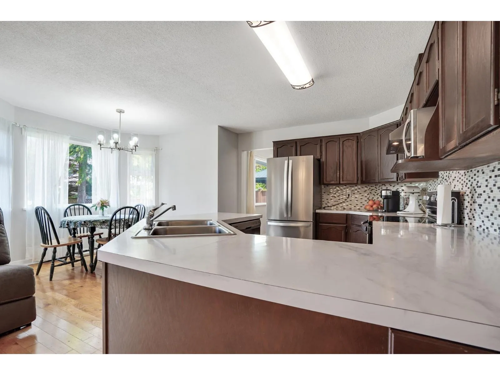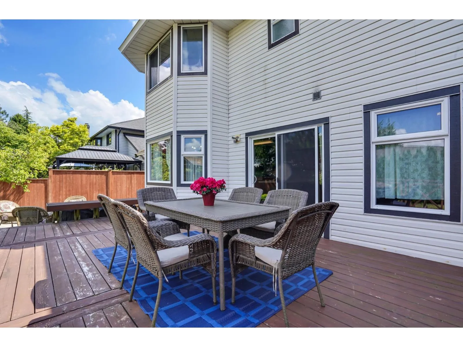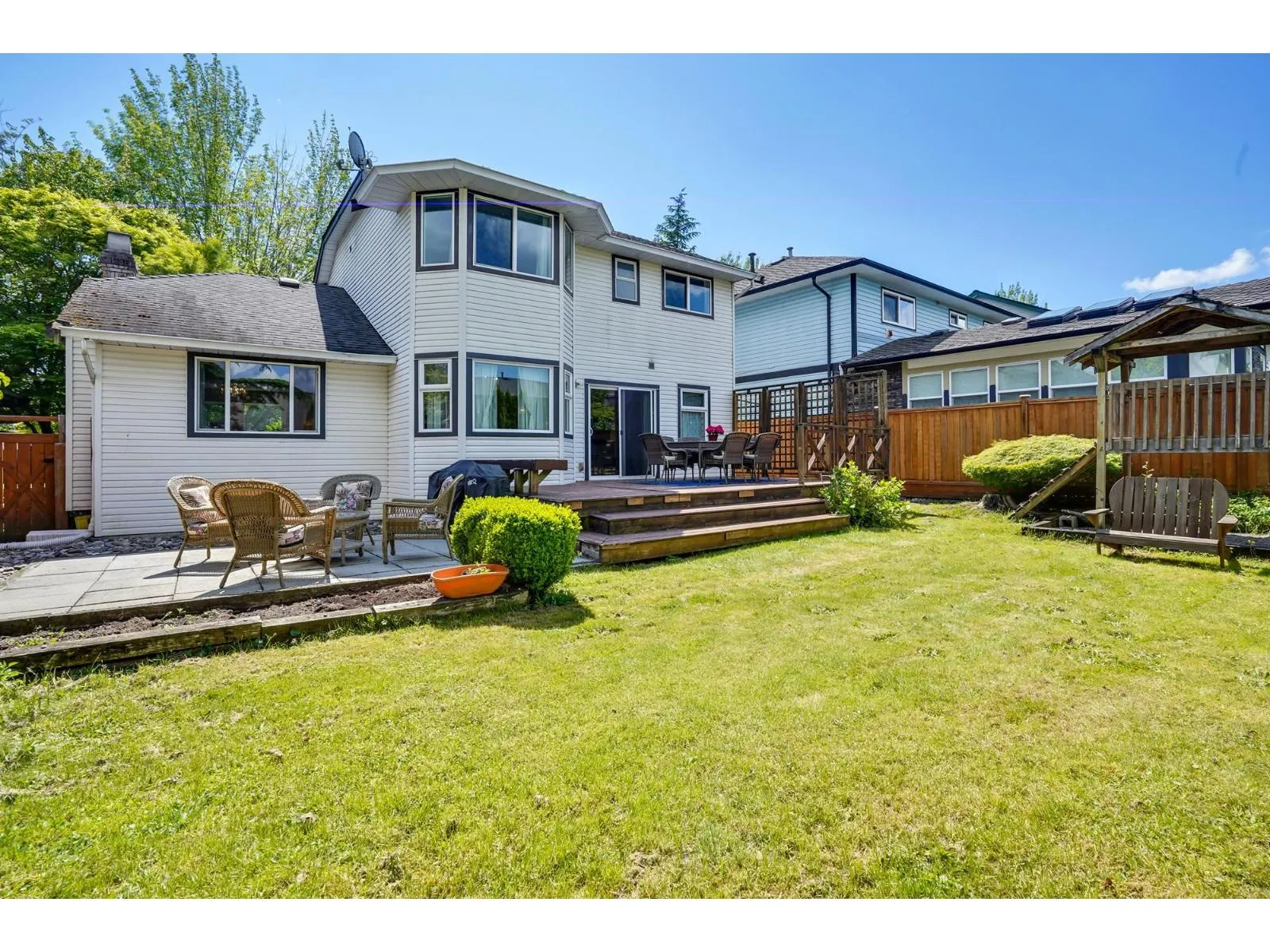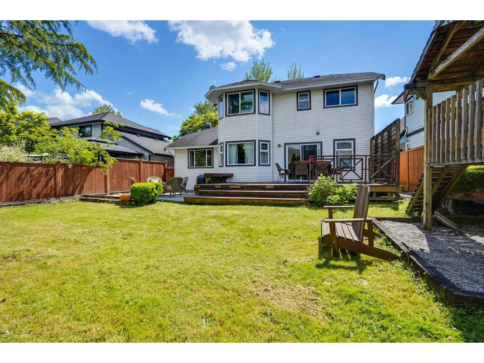 Welcome to this well maintained 4 bedroom 3 bathroom house in Walnut Grove! Bright and inviting living room, with expansive bay windows. Adjacent to the living area is a formal dining room, perfect for hosting dinner parties or enjoying family meals. The spacious kitchen boasts updated stainless steel appliances and plenty of storage. Powder room and mud room with new washer/dryer complete the main floor. Upstairs features 4 spacious bedrooms and 2 full bathrooms, with mountain views. Hardwood flooring throughout. Double car garage fits 2 cars easily. Backyard has separate patios and fenced yard. Within walking distance to Walnut Grove Secondary school catchment, Forest Hills Park, shops and easy access to Golden Ears Bridge and Hwy 1. (id:27476)