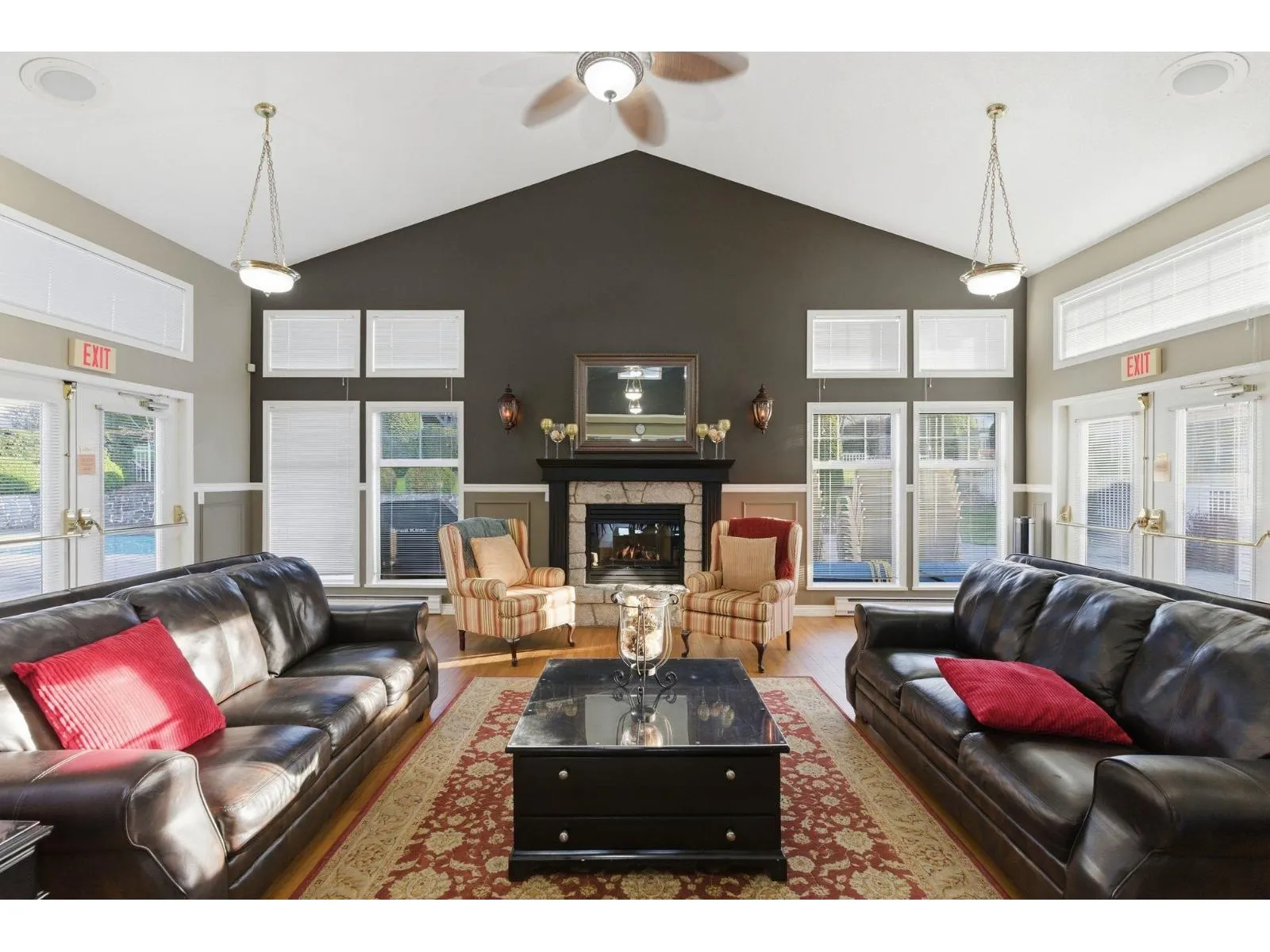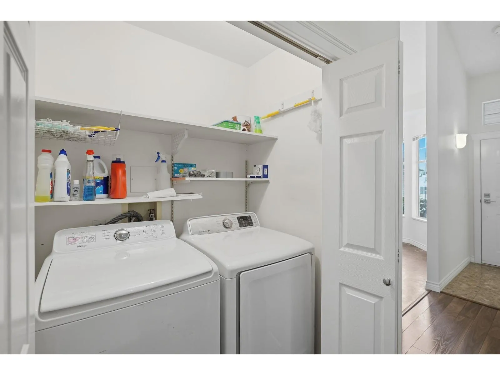 FRESHLY PAINTED townhome in gated 55+ community, this 3 bedroom, 2 bathroom home features a SPACIOUS LAYOUT, and VAULTED CEILINGS. A large MAIN FLOOR MASTER includes a WALK-IN CLOSET and ensuite bathroom. A second bedroom on the main floor doubles perfectly as a den or hobby-room with NO NEED TO USE THE STAIRS, and the third bedroom upstairs is perfect for guests to enjoy some privacy. The SOUTH-FACING BACKYARD is a great place to spend sunny afternoons, while a RETRACTABLE AWNING ensures you stay cool all summer. The club-house is perfect for gatherings, equipped with a full kitchen, along with an outdoor pool, hot tub, woodworking shop, library, and billiards room. Located in between Walnut Grove Community Centre and Save-On-Foods, everything you need is just a short walk away! (id:27476)