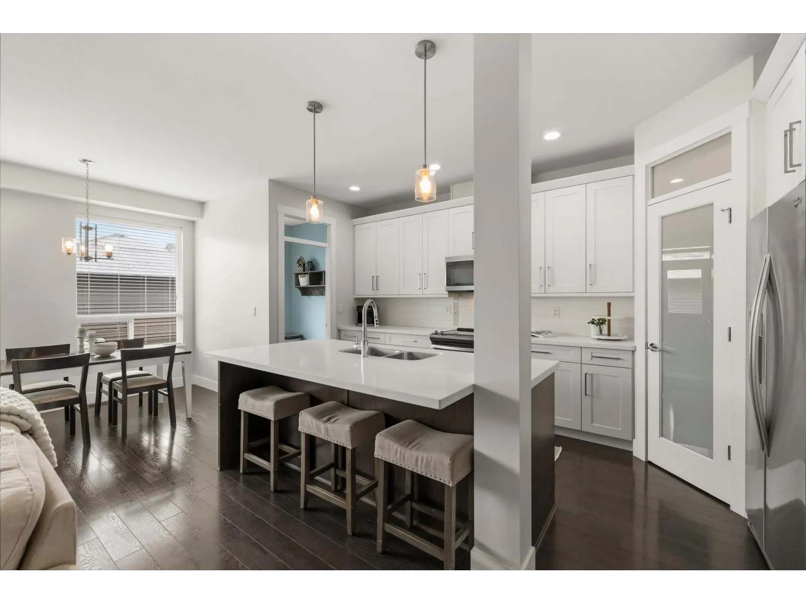 Welcome to The Meadows by Noort Homes. This elegant 5-bedroom, 3.5-bath single-family residence showcases a bright, open-concept design enhanced by refined finishes and abundant natural light. The gourmet kitchen is thoughtfully appointed with premium stainless steel appliances, expansive quartz countertops, custom cabinetry, and a walk-in pantry-perfect for both everyday living and entertaining. Retreat to the luxurious primary suite featuring a designer feature wall, spacious walk-in closet, and spa-inspired 5-piece ensuite. The lower level offers a generous rec room, full bath, and 1 bedroom, with potential for a legal 2-bedroom suite-already plumbed and wired for a seamless mortgage helper. Complete w/ a detached double garage and additional parking pad. (id:27476)