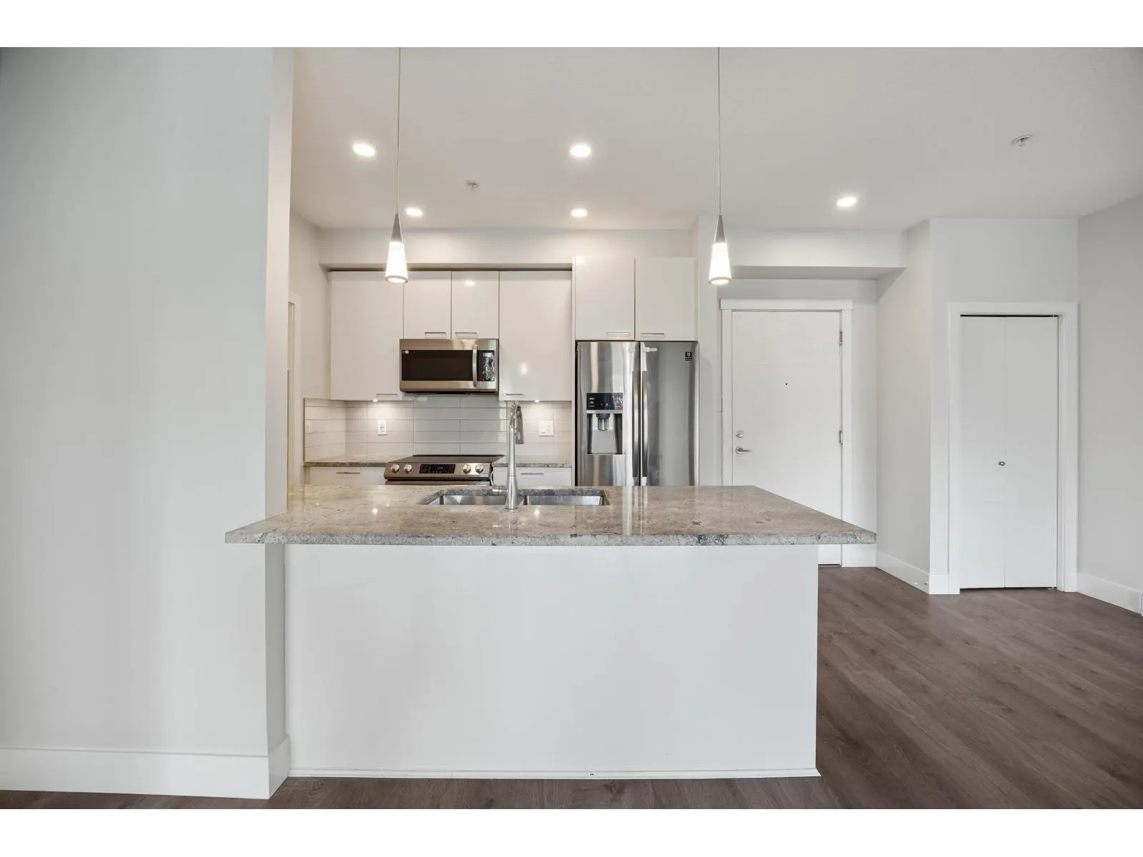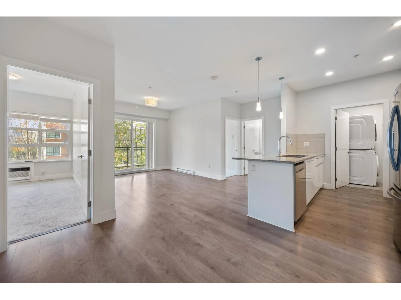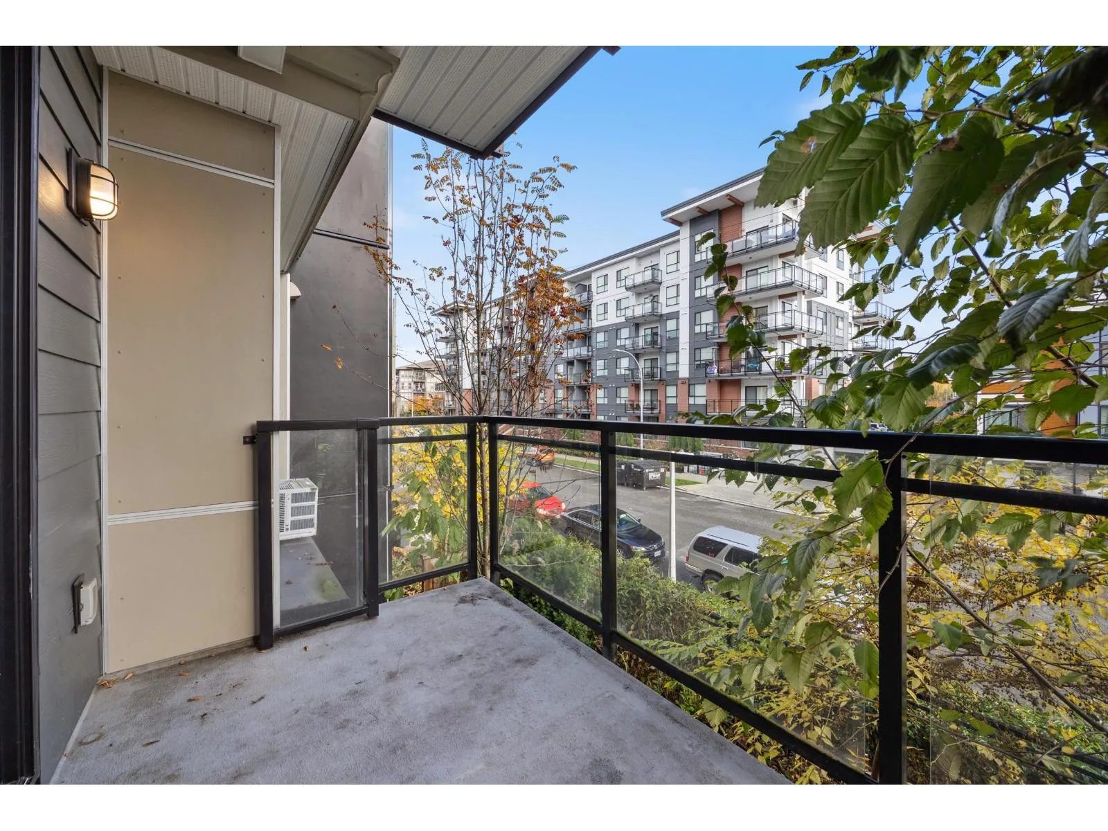 Welcome to The Wesley at Brydon Creek! This stunning 2-bedroom, 2-bathroom home features a bright, open-concept layout with bedrooms thoughtfully positioned on opposite sides for maximum privacy. Enjoy high-end finishes throughout, including granite countertops, stainless steel appliances, 9-foot ceilings, and air conditioning in the primary suite. Includes 1 parking stall and 1 storage locker. Perfectly situated within walking distance to Brydon Park and Baldi Creek Trail, and just minutes from Newlands Golf & Country Club, Willowbrook Mall, Costco, Walmart, T&T, Canadian Tire, Home Depot, schools, restaurants and more. Commuting is easy with nearby public transit, highway access, and the future SkyTrain line coming soon. Call today to book your private showing! (id:27476)