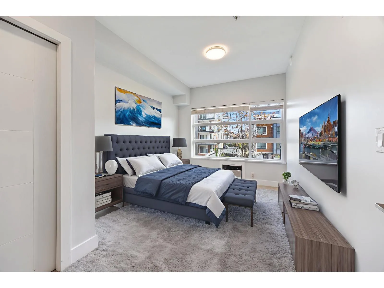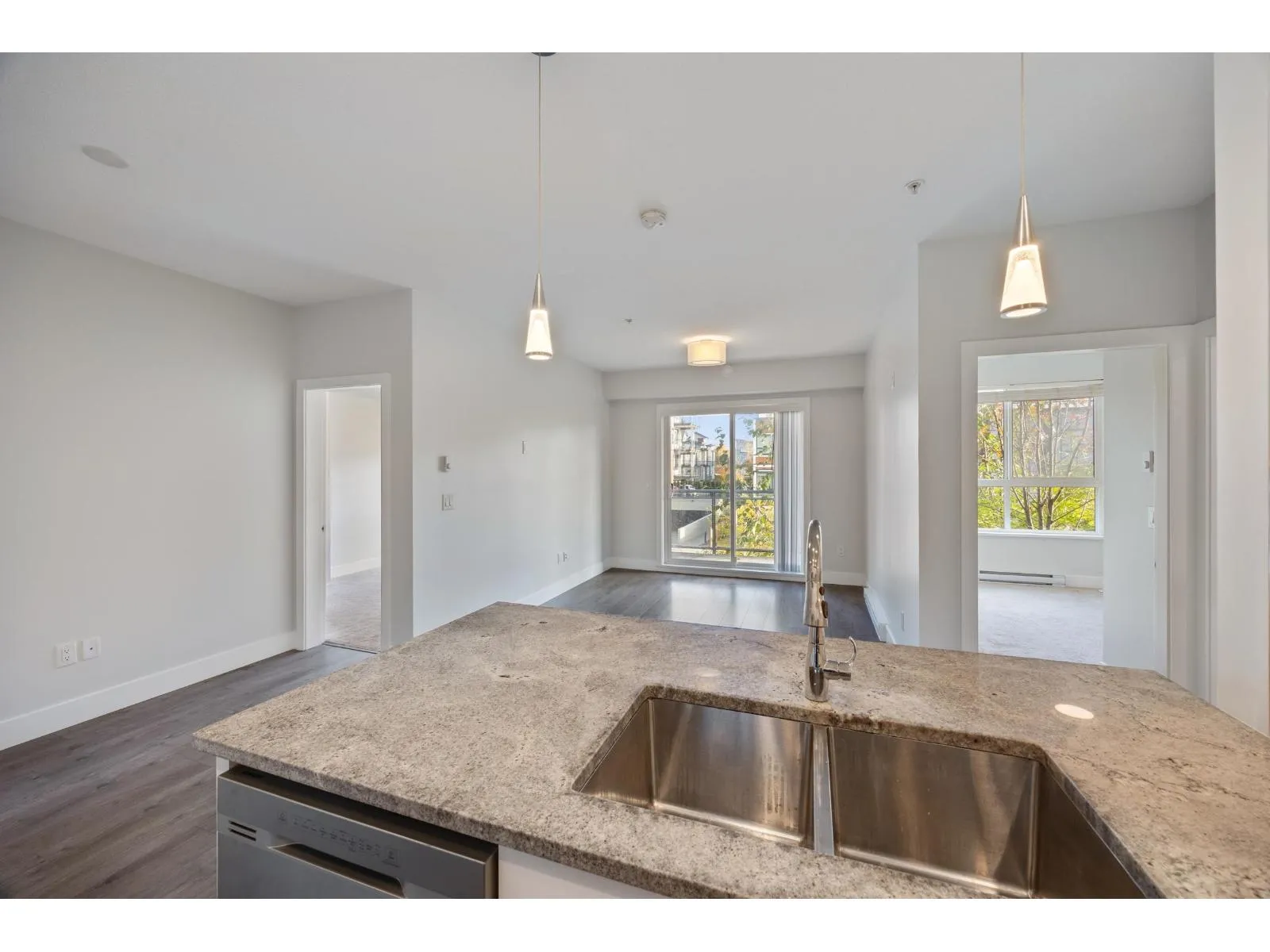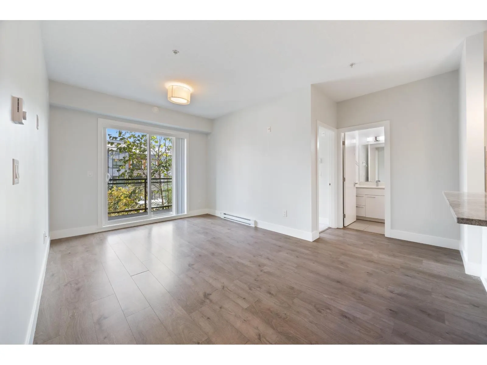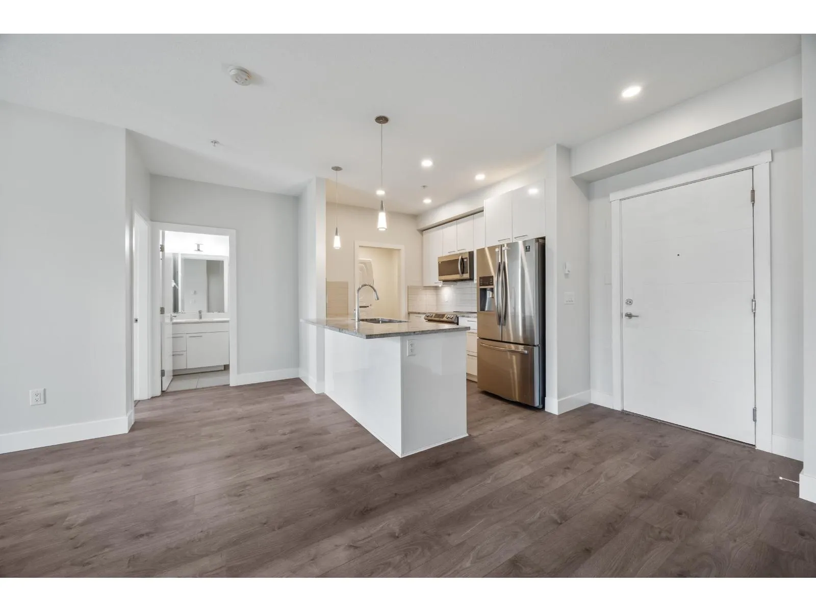 Welcome to The Wesley at Brydon Creek! This stunning 2-bedroom, 2-bathroom home features a bright, open-concept layout with bedrooms thoughtfully positioned on opposite sides for maximum privacy. Enjoy high-end finishes throughout, including granite countertops, stainless steel appliances, 9-foot ceilings, and air conditioning in the primary suite. Includes 1 parking stall and 1 storage locker. Perfectly situated within walking distance to Brydon Park and Baldi Creek Trail, and just minutes from Newlands Golf & Country Club, Willowbrook Mall, Costco, Walmart, T&T, Canadian Tire, Home Depot, schools, restaurants and more. Commuting is easy with nearby public transit, highway access, and the future SkyTrain line coming soon. Call today to book your private showing! (id:27476)
