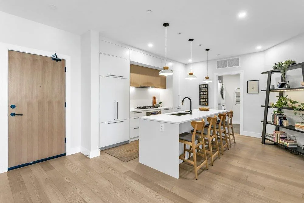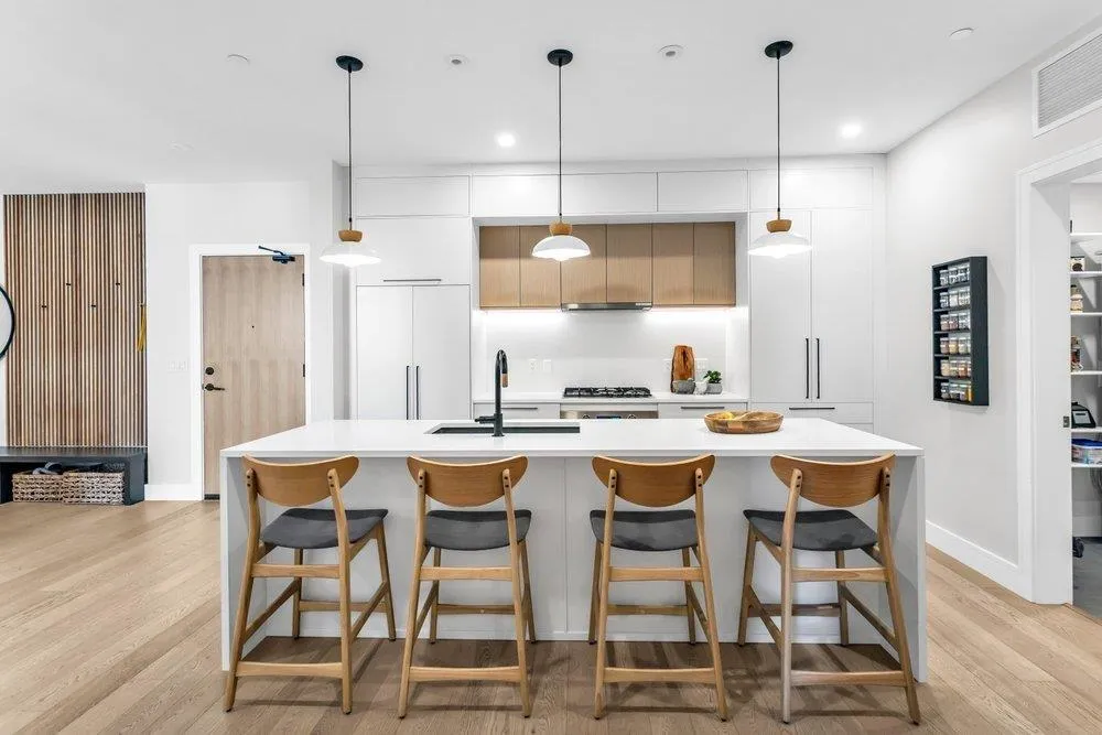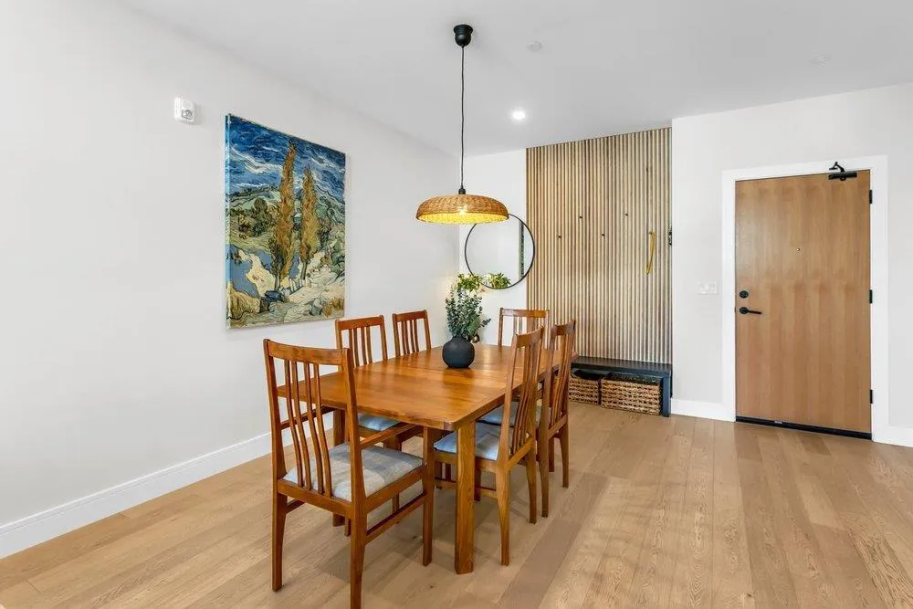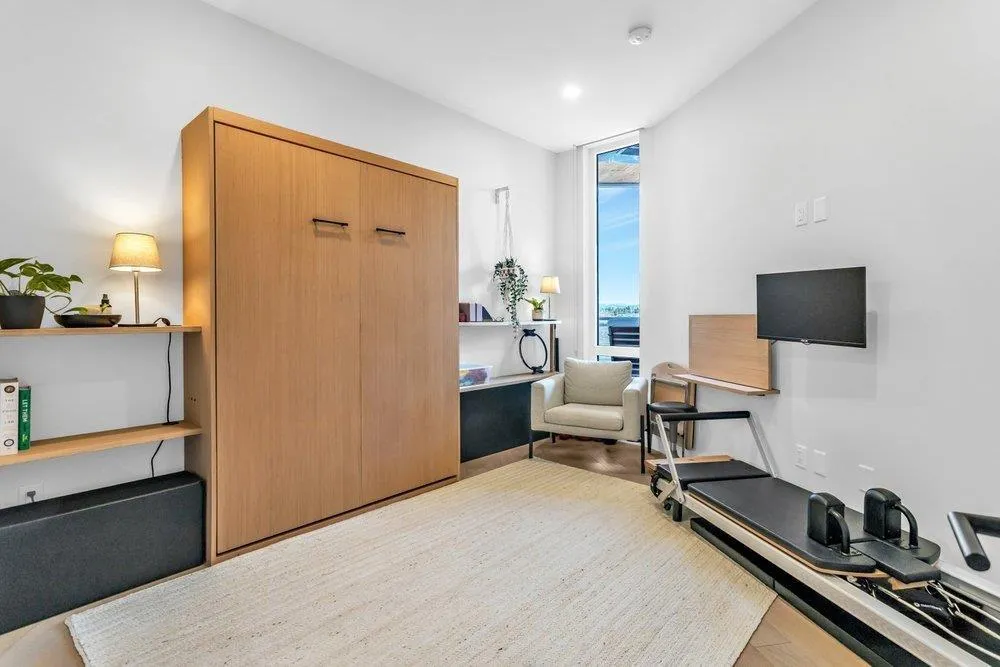 Enjoy engineered white oak hardwood floors, Caesarstone counters, oversized windows, and a private heating and cooling system. The open kitchen features extensive millwork, full-height backsplash, premium fixtures, and a curated appliance package, now improved with updated pendant lighting over the island and a superior microwave. Thoughtful seller enhancements continue with a dining room ceiling light, custom millwork at the entrance, a new pantry in the utility room, a wainscotting headboard feature in the primary suite, and a Murphy bed in the second bedroom that makes an ideal guest room or office. Amenities include concierge, a grand lounge with work areas, a fully equipped fitness centre, meeting and office space, secure storage and bike lockers, and EV charging capability. A polished home in a building designed for people who notice the differenceBonus: Sellers wil credit Buyers at closing with 12 times the current maintenance fee. (id:27476)