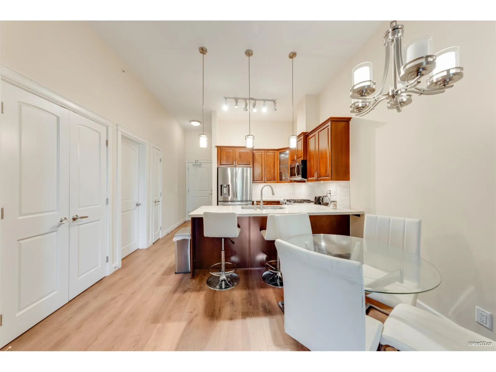 YORKSON PARK by QUADRA HOMES! BEST for FIRST time home buyers. This TOP FLOOR Large 01 BED 01 FULL BATH Vaulted Ceiling unit has AMAZING VIEWS Low Strata fee comes with 02 Extra Wide separate parkings with 02 Roll up storages,(very unique) Natural gas STOVE and BBQ. Just walking distance to trails, transportation (Carvolth BUS LOOP), easy Highway access and all the amenities. Every room has AIR CONDITIONING. Solarium for your all season entertainment Bathrooms have heated floors. Remaining 2-5-10 warranty (id:27476)