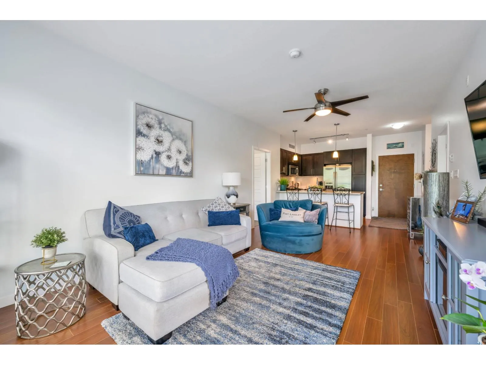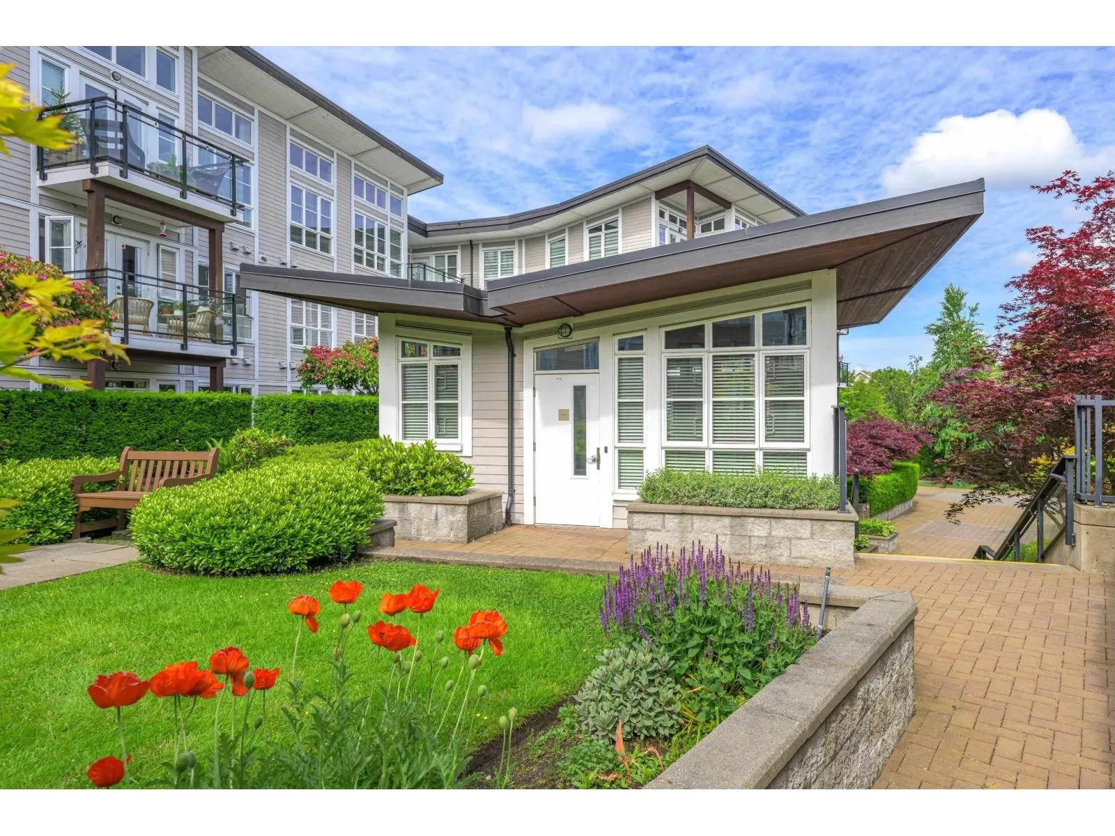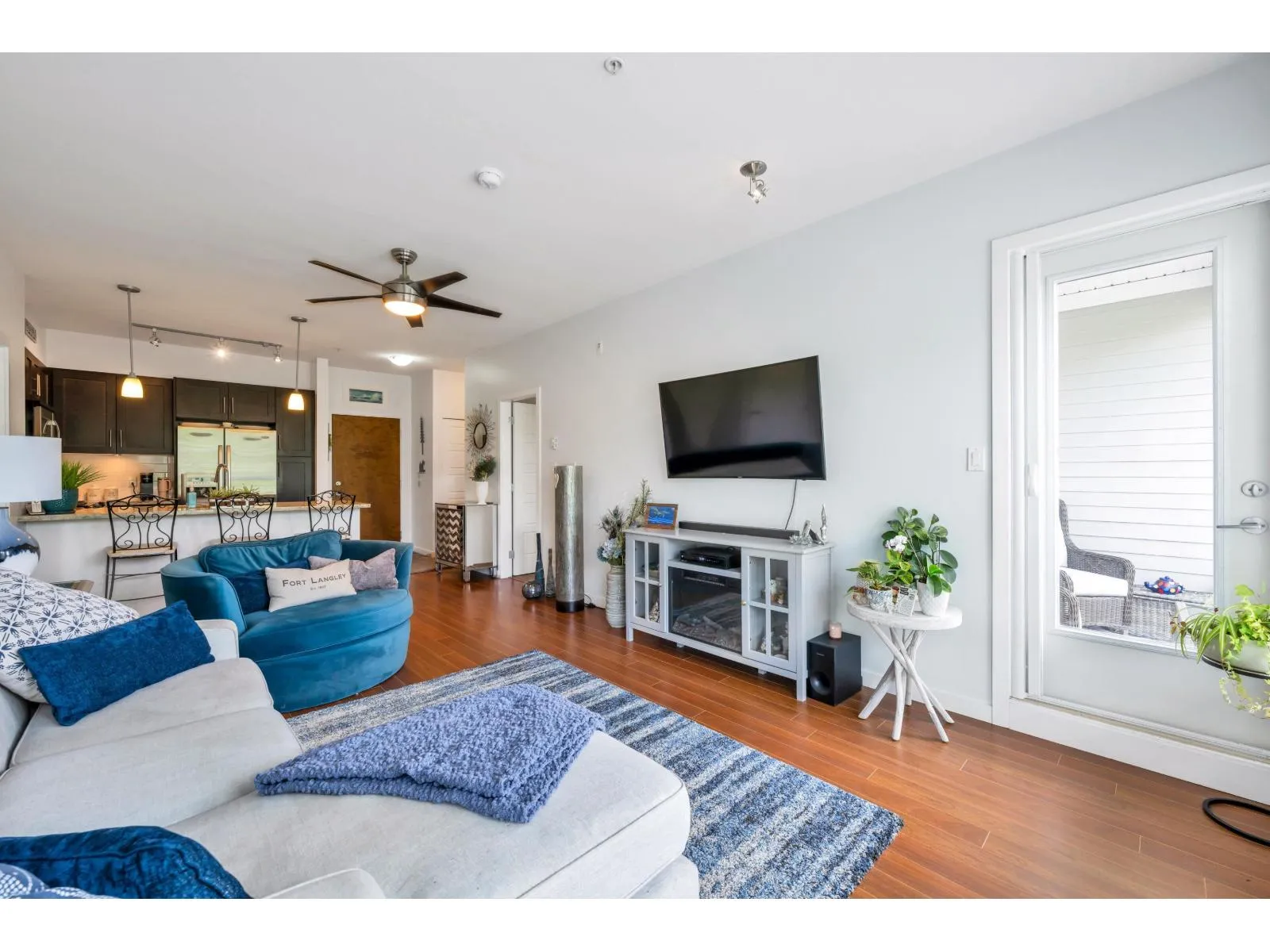 Welcome to Waterfront at Bedford Landing, a sought-after 55+ community in the heart of Fort Langley. Steps to Historic Fort Langley, river trails, cafés, shops, and restaurants. This beautifully maintained home offers nearly 900 sq ft with 2 bedrooms and 2 bathrooms, thoughtfully designed with bedrooms on opposite sides for privacy. The kitchen features granite countertops, stainless steel appliances including a gas stove, and a dining area for entertaining. Updates include fresh paint and newer carpeting. Spacious primary bedroom with walk-in closet and ensuite with heated tile floors. Enjoy a bright south-facing balcony, same-floor storage locker, and 2 underground parking stalls near the elevator. (id:27476)