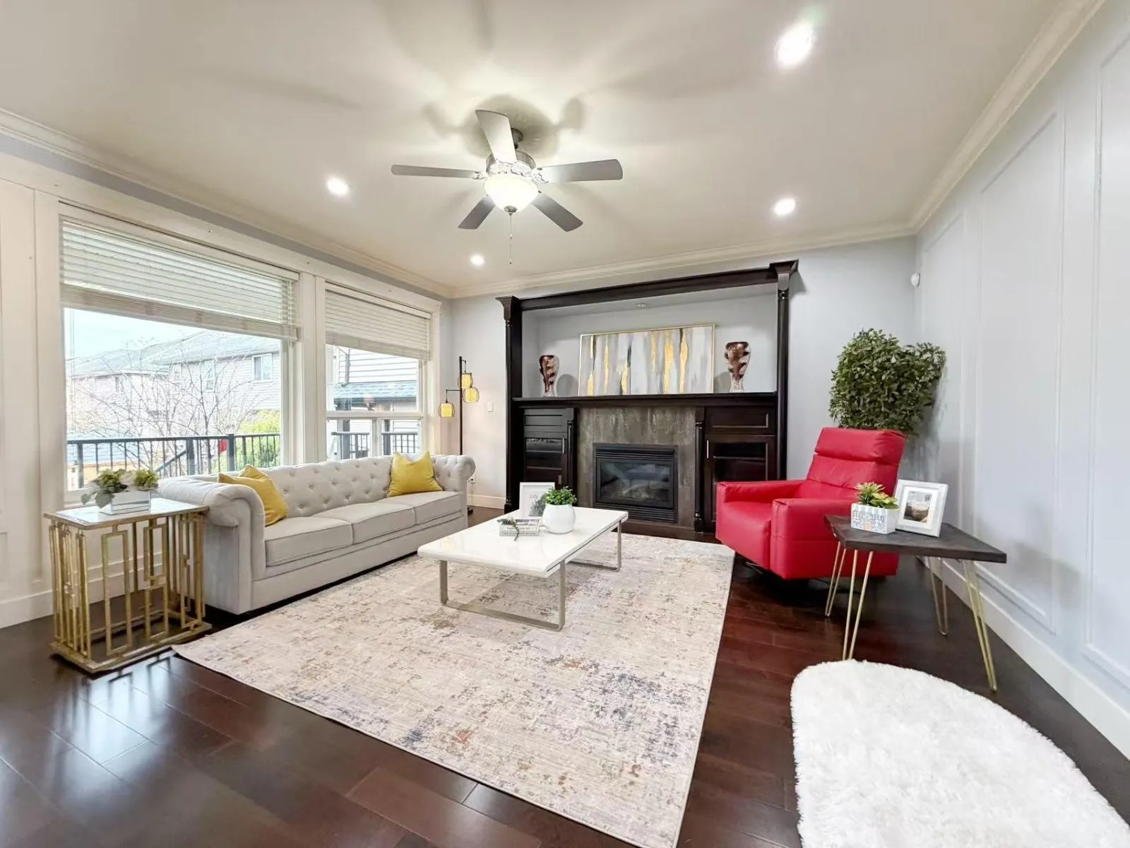 Luxurious home in Yorkson South! Featuring a gourmet kitchen with granite counters, large island with built-in drawers, custom maple cabinets, S/S appliances & gas stove. Main floor offers a spacious office/living space with wainscoting, plus a bright family room with gas fireplace, custom built-ins & engineered hardwood floors. Upstairs includes a primary suite with walk-in closet & organizers, ensuite with jacuzzi tub, granite counters, maple cabinets, separate showers & mountain views. Radiant heat, designer lighting & crown mouldings throughout the top two floors. Basement includes media room & 2-bed legal suite with new laminate flooring. Close to Lynn Fripps Elementary, parks & shopping. (id:27476)