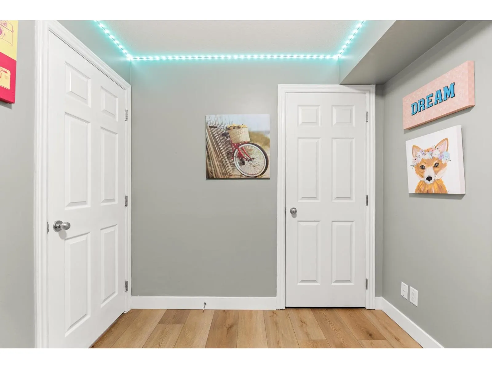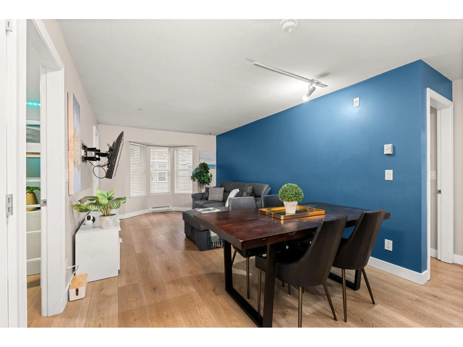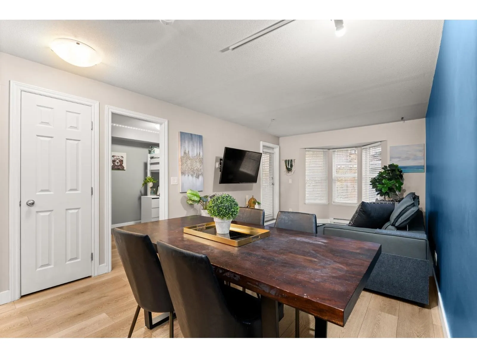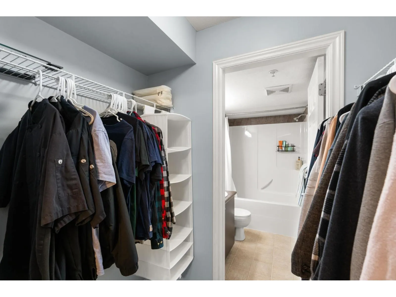 Welcome to Brydon Walk! This spacious 2 bed, 2 bath condo offers nearly 900 sq ft of bright, open-concept living in a quiet, private location on the courtyard side of the building. Enjoy vinyl plank flooring throughout, a functional kitchen with large central island, granite countertops, sit-up bar, and stainless steel appliances-perfect for everyday living and entertaining. The oversized primary bedroom easily fits a king-size bed and features a walk-in closet and ensuite. Rare dedicated laundry room with built-in shelving and upgraded Samsung washer/dryer provides abundant storage. One secured parking stall and lots of visitor parking. Professionally managed building with a new roof. Steps to Brydon Park, lagoon, trails, shopping, and the future SkyTrain. Book your private tour today! (id:27476)
