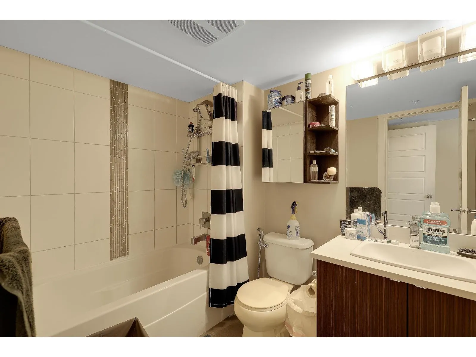 SOUTH-FACING 2 BED 2 BATH CORNER UNIT ON THE QUIET SIDE OF THE BUILDING! This bright, functional layout offers a gourmet kitchen with stainless steel appliances, modern full-wrap cabinets, under-cabinet lighting & Caesarstone counters. Spacious living/dining area with built-in fireplace & covered deck access. Primary bedroom features walk-in closet & 4-pc ensuite. Moen fixtures, ceramic tile & premium finishes throughout. Includes secure parking, storage locker & 2 elevators. Pets & rentals allowed. Beautiful, well-managed building close to shopping, parks & transit. (id:27476)