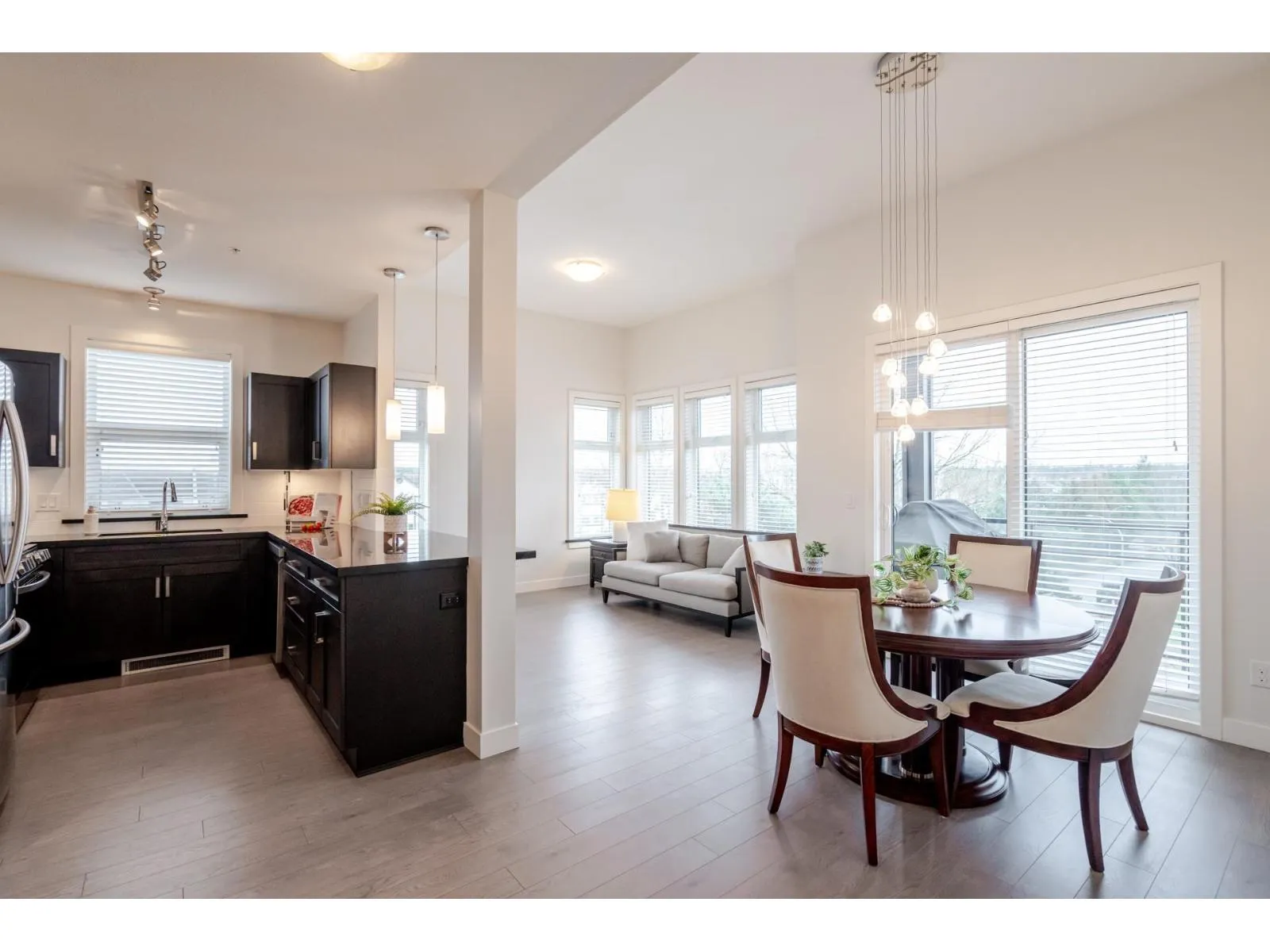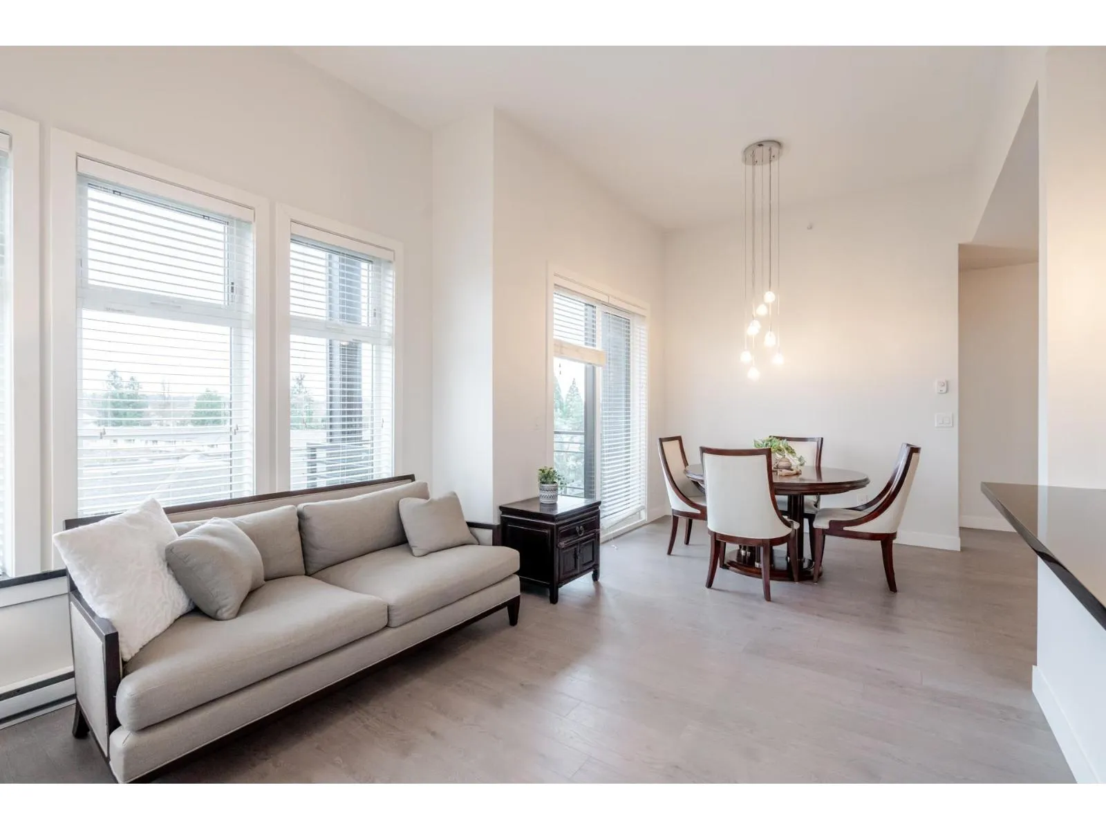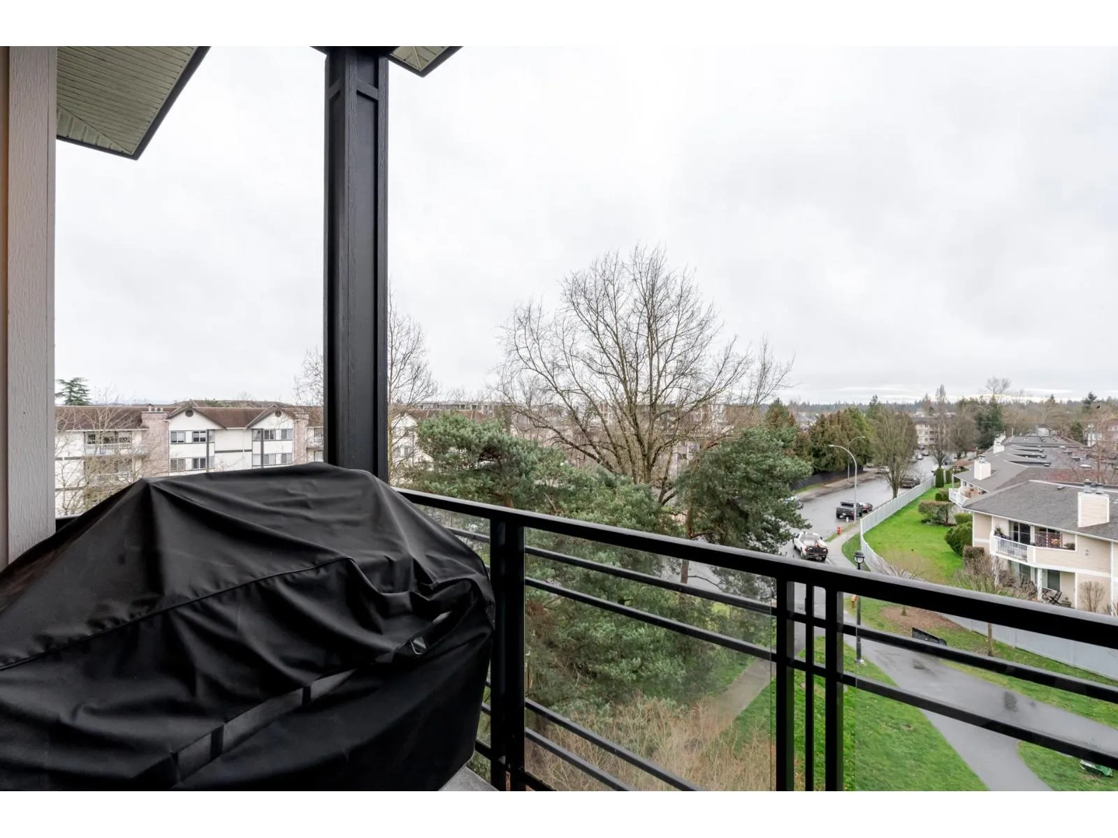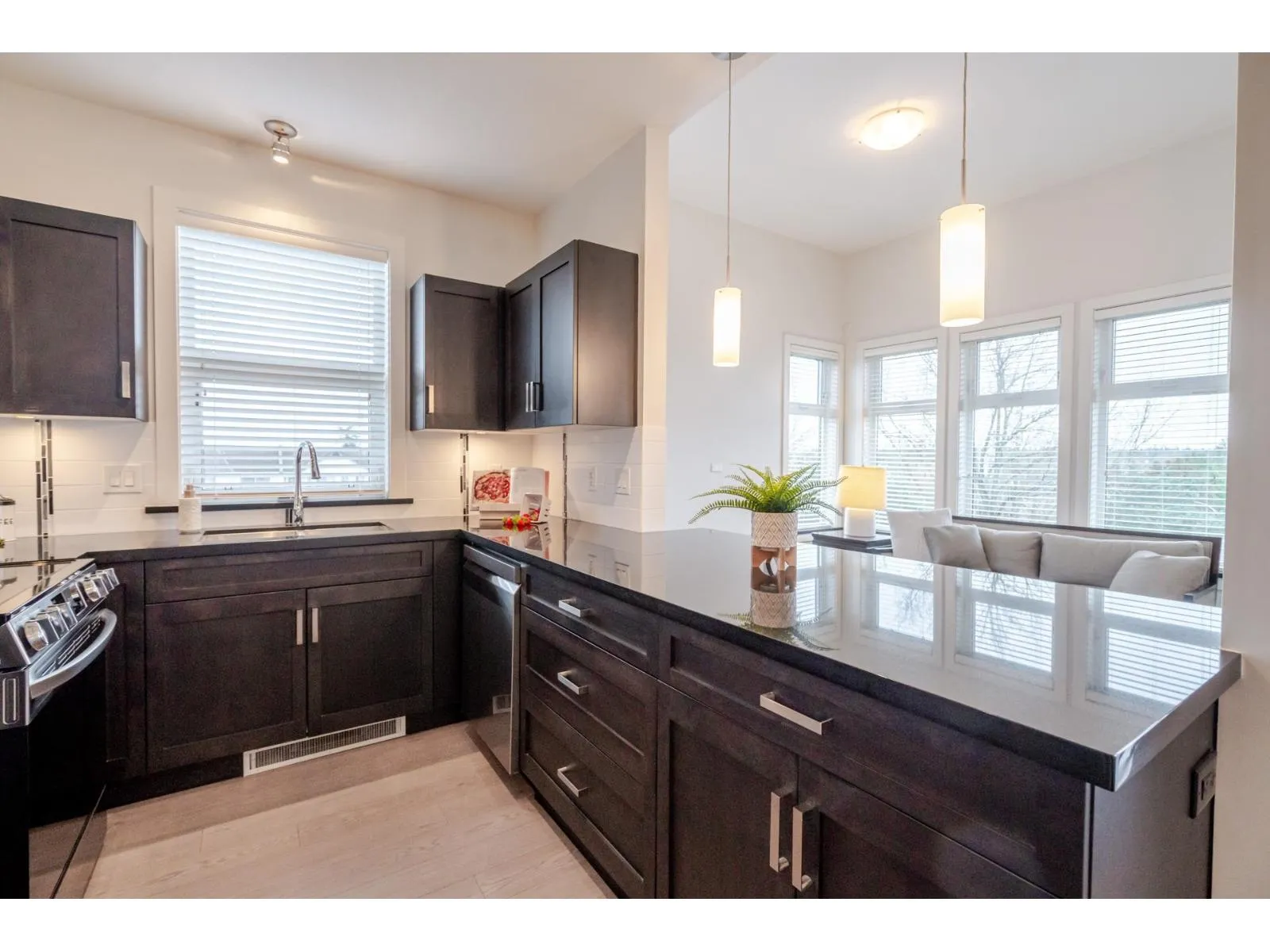 A must see!!!! Penthouse , corner suite, on the Quiet side of the building, overlooking the Green Space. One of the best locations in the Varsity! Open concept, spacious, 1100 sq ft, 2 bed (opposite sides of the unit) 2 bath. Primary bedroom offers walk-in closet, and built in shelving. Walk-in shower in ensuite bath complimented with granite counters. Gourmet Kitchen boasting granite counters , New SS range , dishwasher , microwave . 9' ceilings throughout PLUS bonus 11' ceilings in living room. Gas BBQ hook-up on deck. Laminate flooring through main area's, and brand new carpet in the bedrooms. Flex area , great for office space. Nice sized laundry room/storage area in suite. 2 side by side parking stalls. Great Location in Langley! Quick Possession! (id:27476)