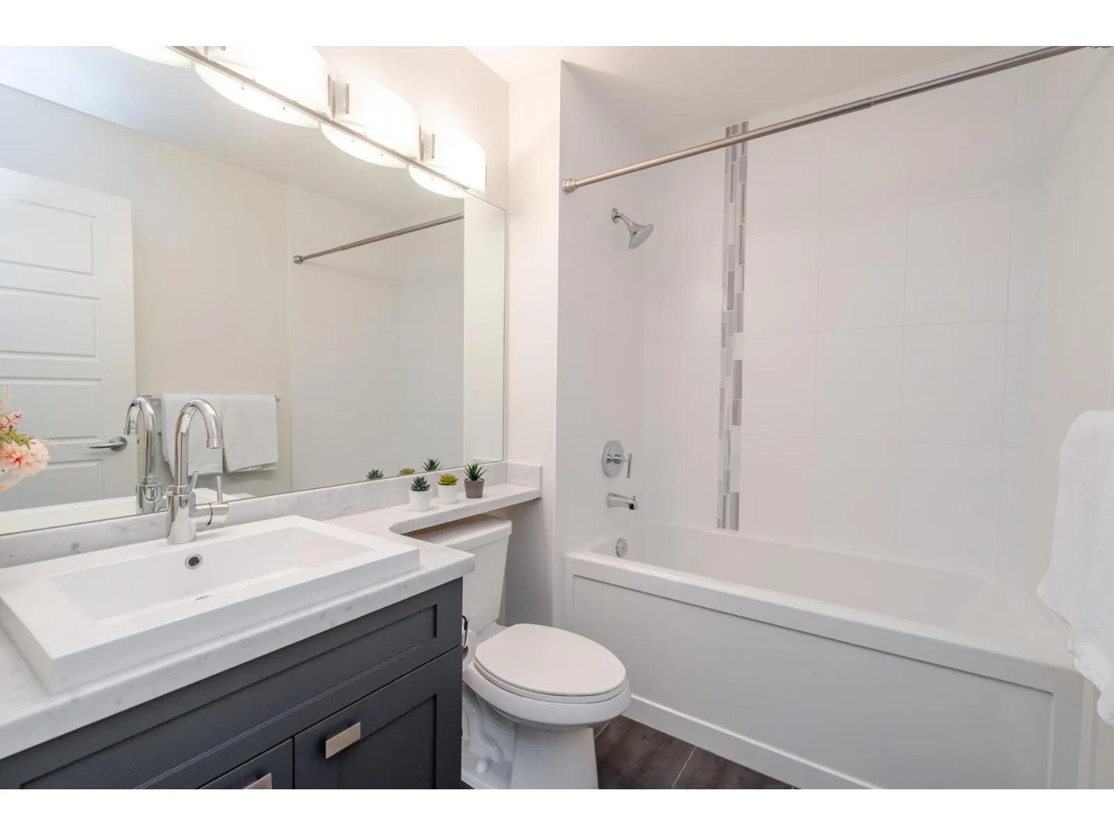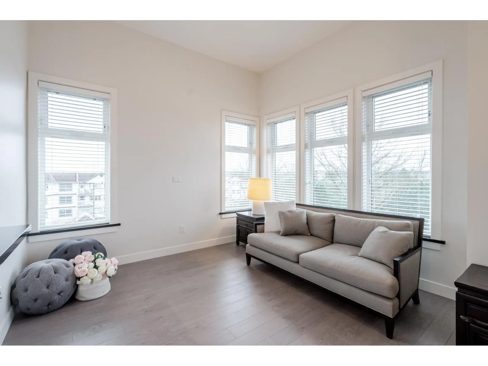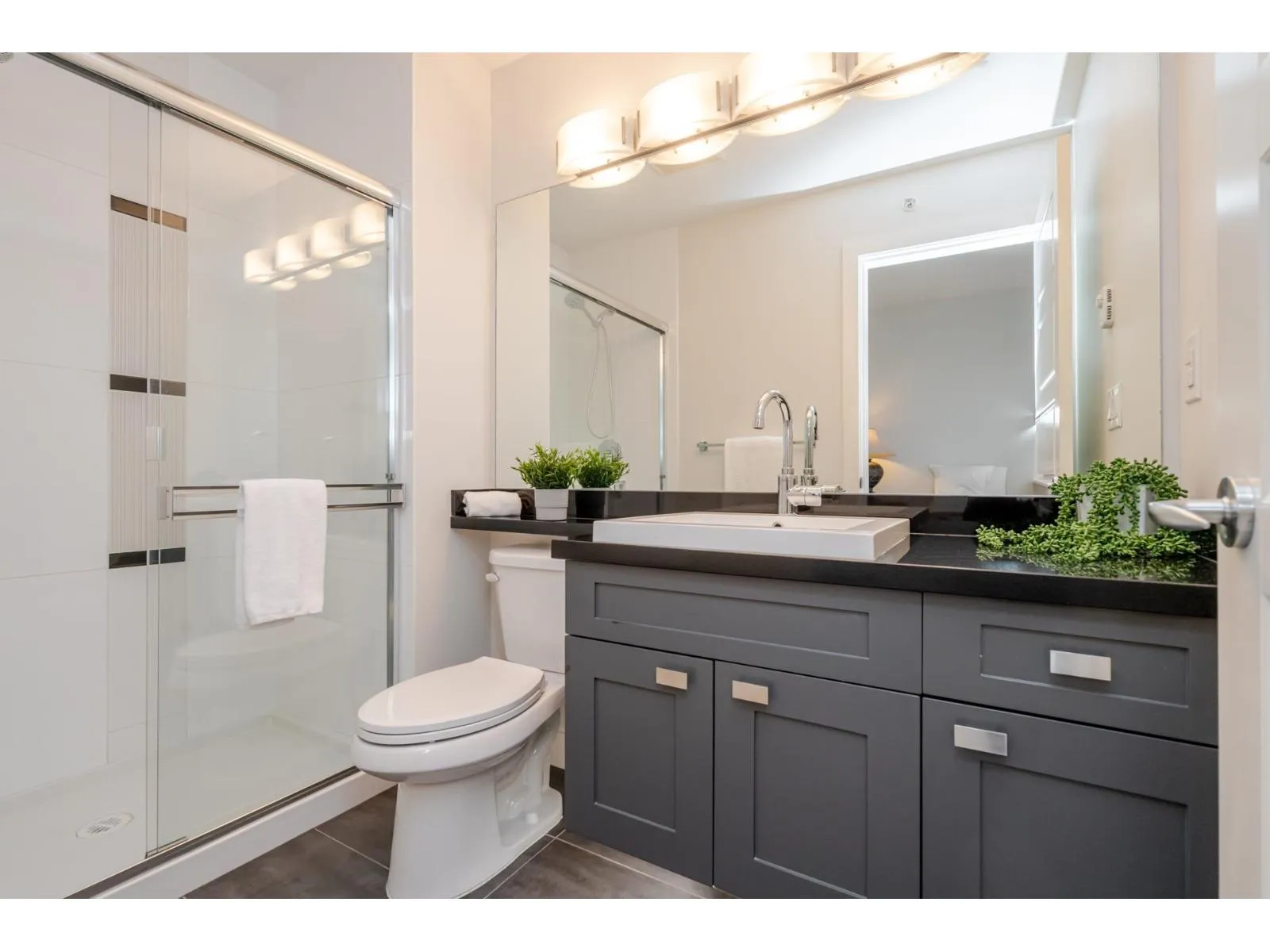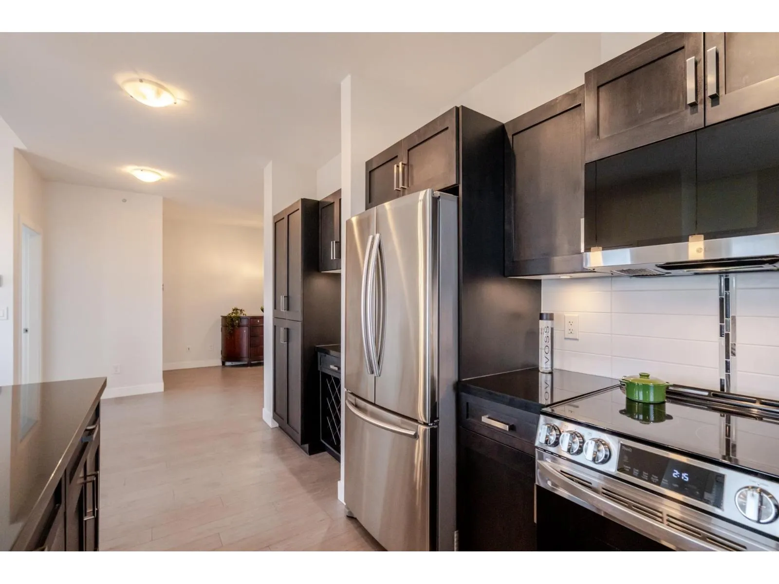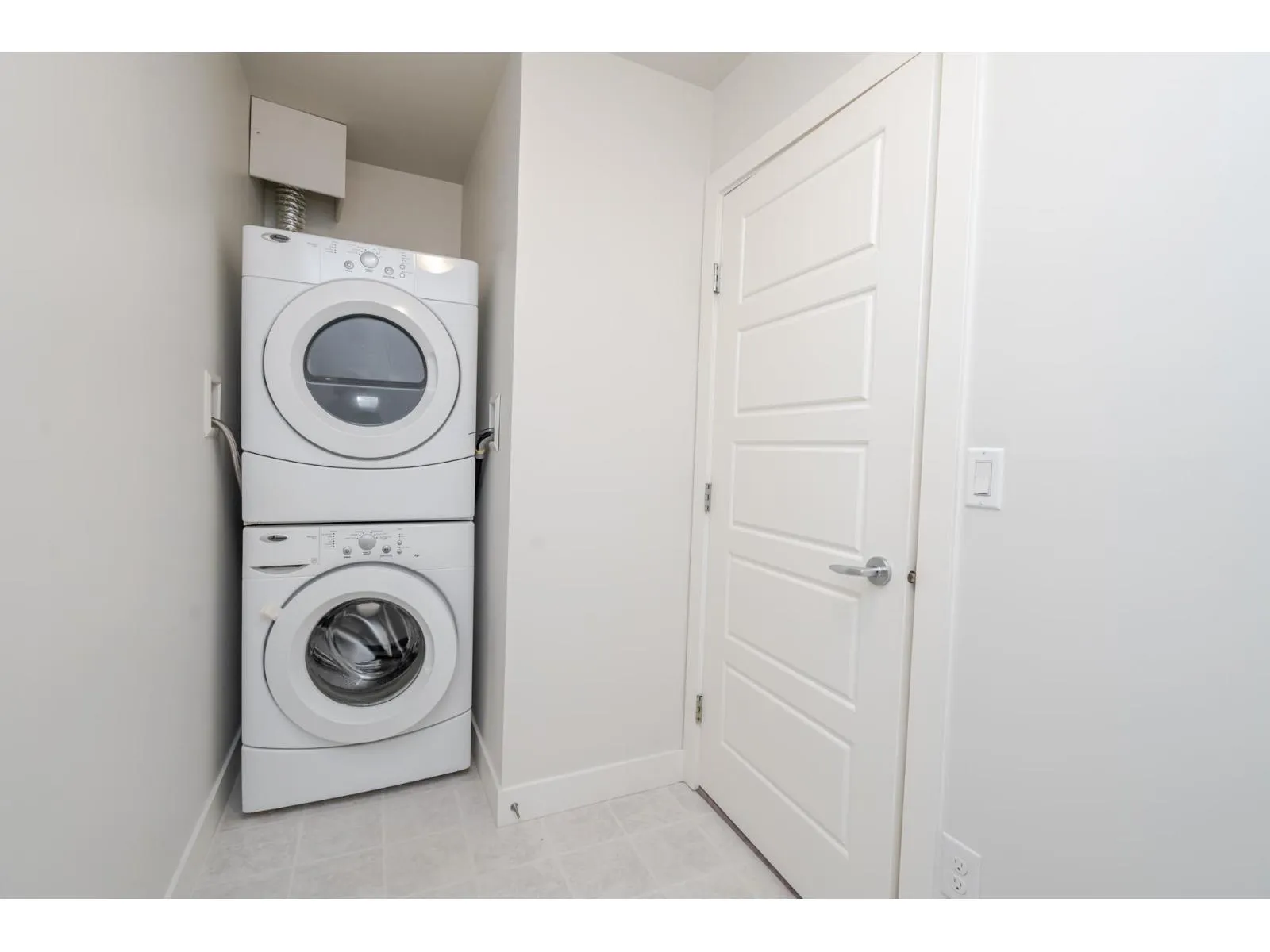 A must see!!!! Penthouse , corner suite, on the Quiet side of the building, overlooking the Green Space. One of the best locations in the Varsity! Open concept, spacious, 1100 sq ft, 2 bed (opposite sides of the unit) 2 bath. Primary bedroom offers walk-in closet, and built in shelving. Walk-in shower in ensuite bath complimented with granite counters. Gourmet Kitchen boasting granite counters , New SS range , dishwasher , microwave . 9' ceilings throughout PLUS bonus 11' ceilings in living room. Gas BBQ hook-up on deck. Laminate flooring through main area's, and brand new carpet in the bedrooms. Flex area , great for office space. Nice sized laundry room/storage area in suite. 2 side by side parking stalls. Great Location in Langley! Quick Possession! (id:27476)
