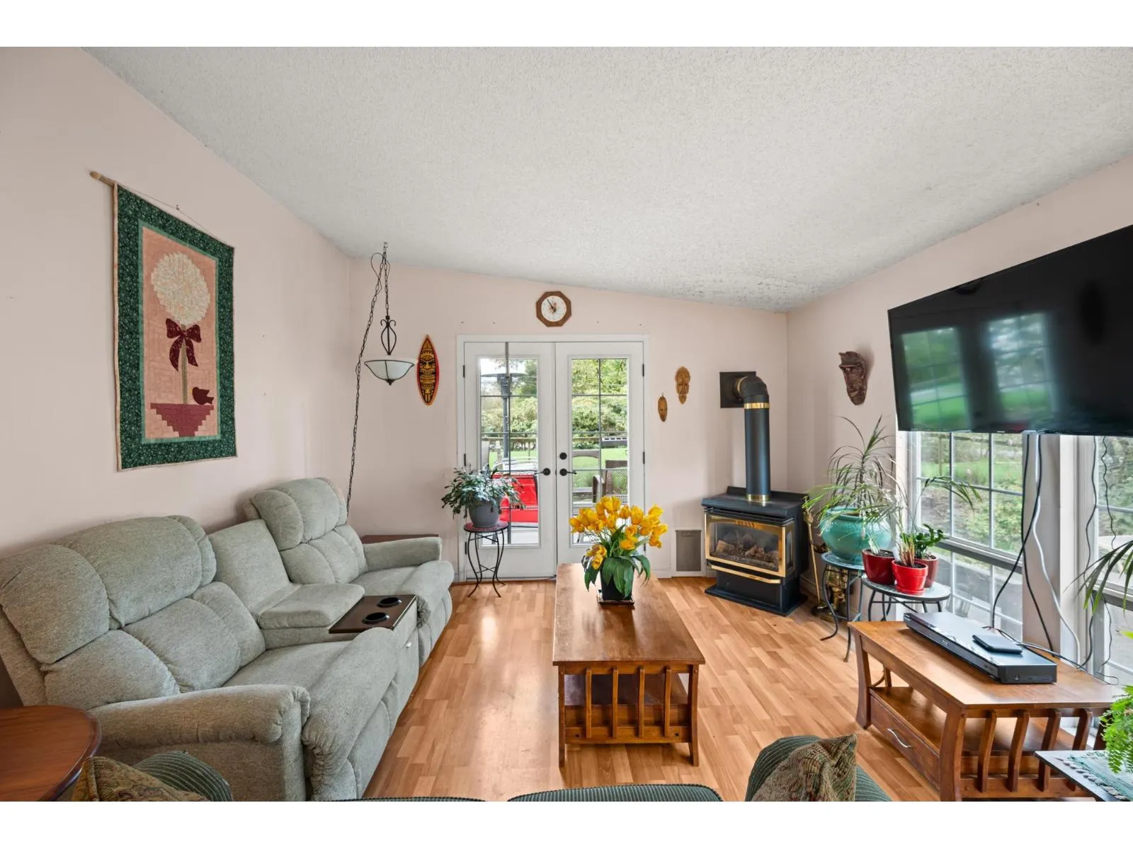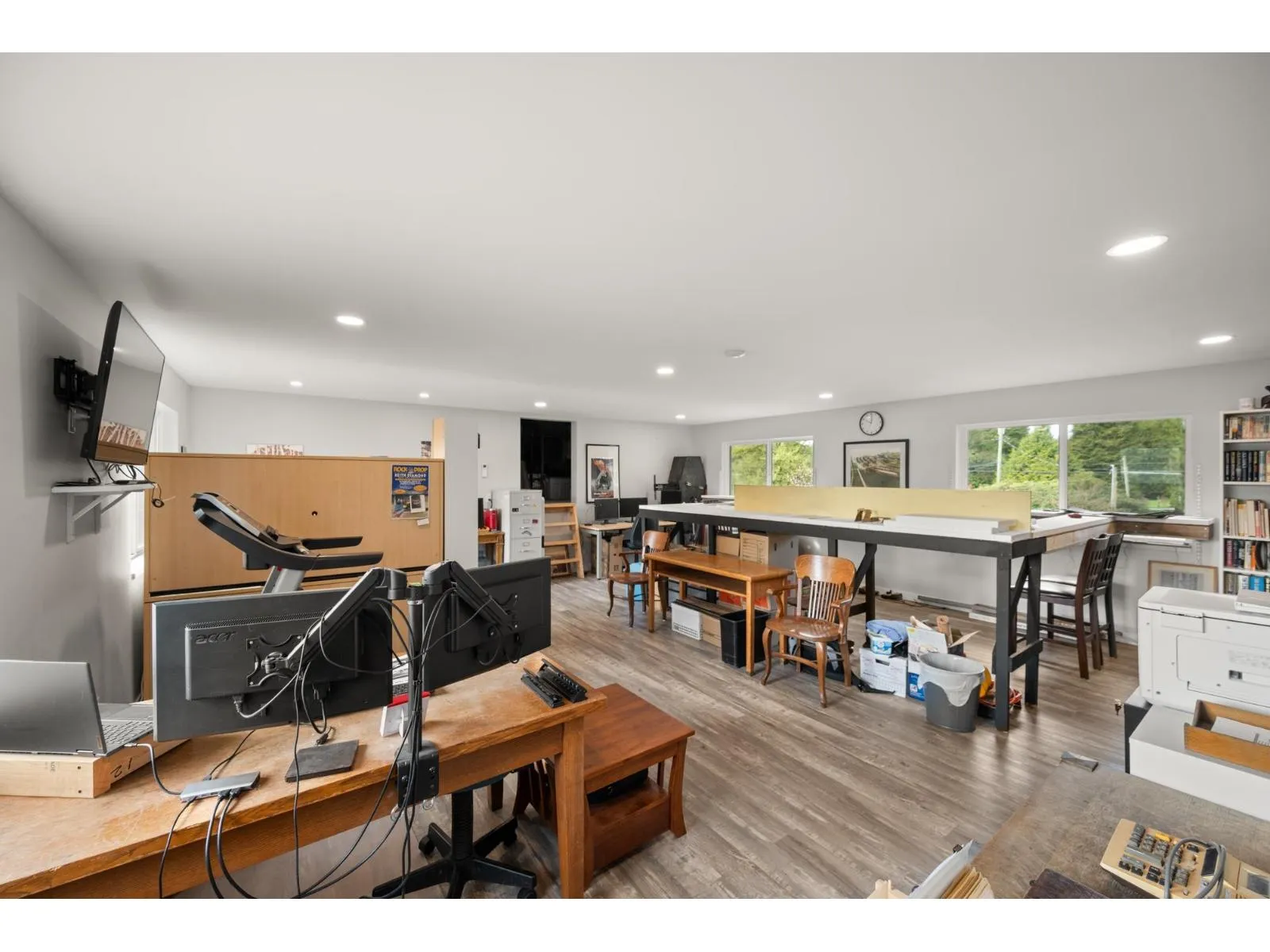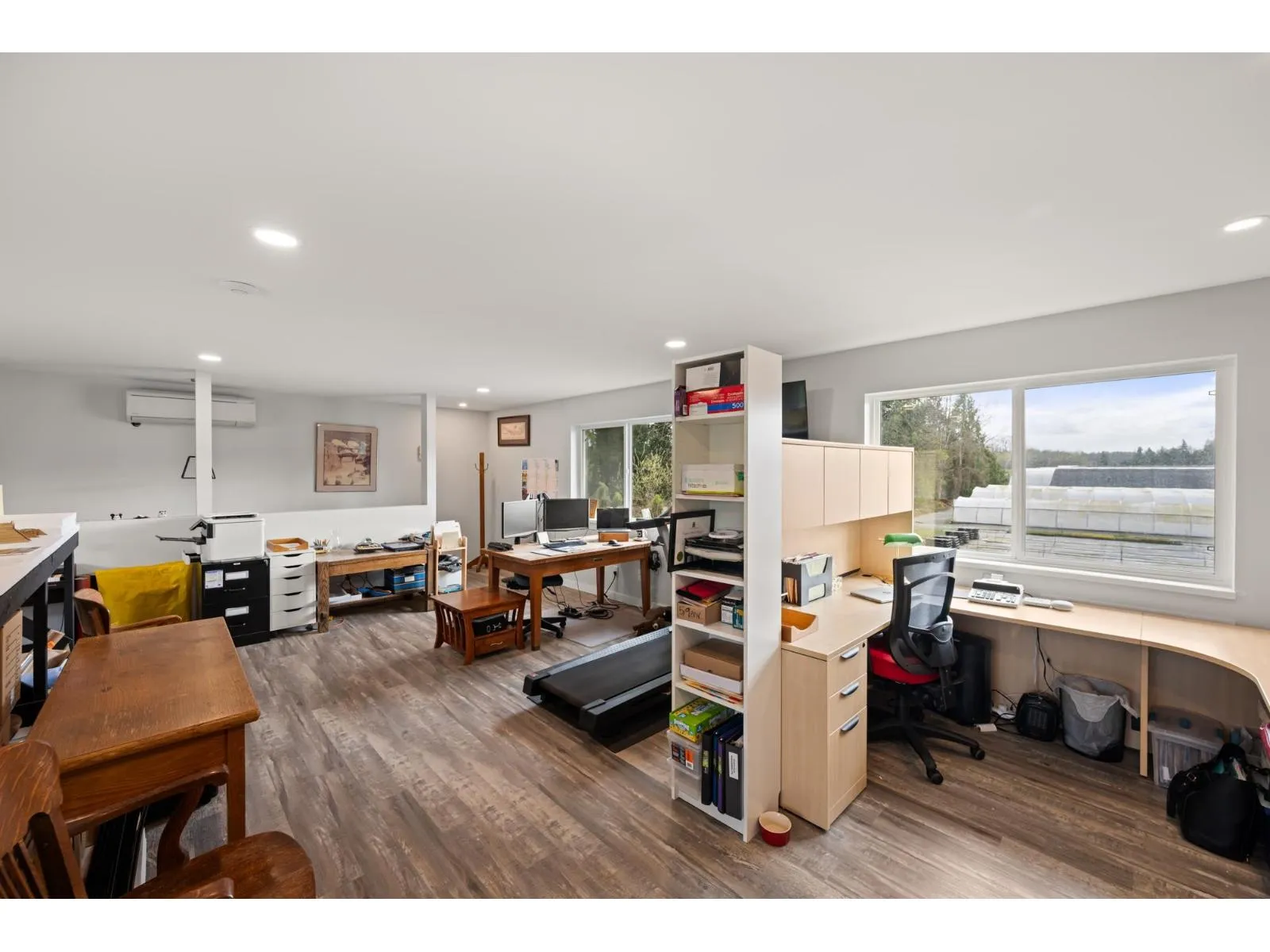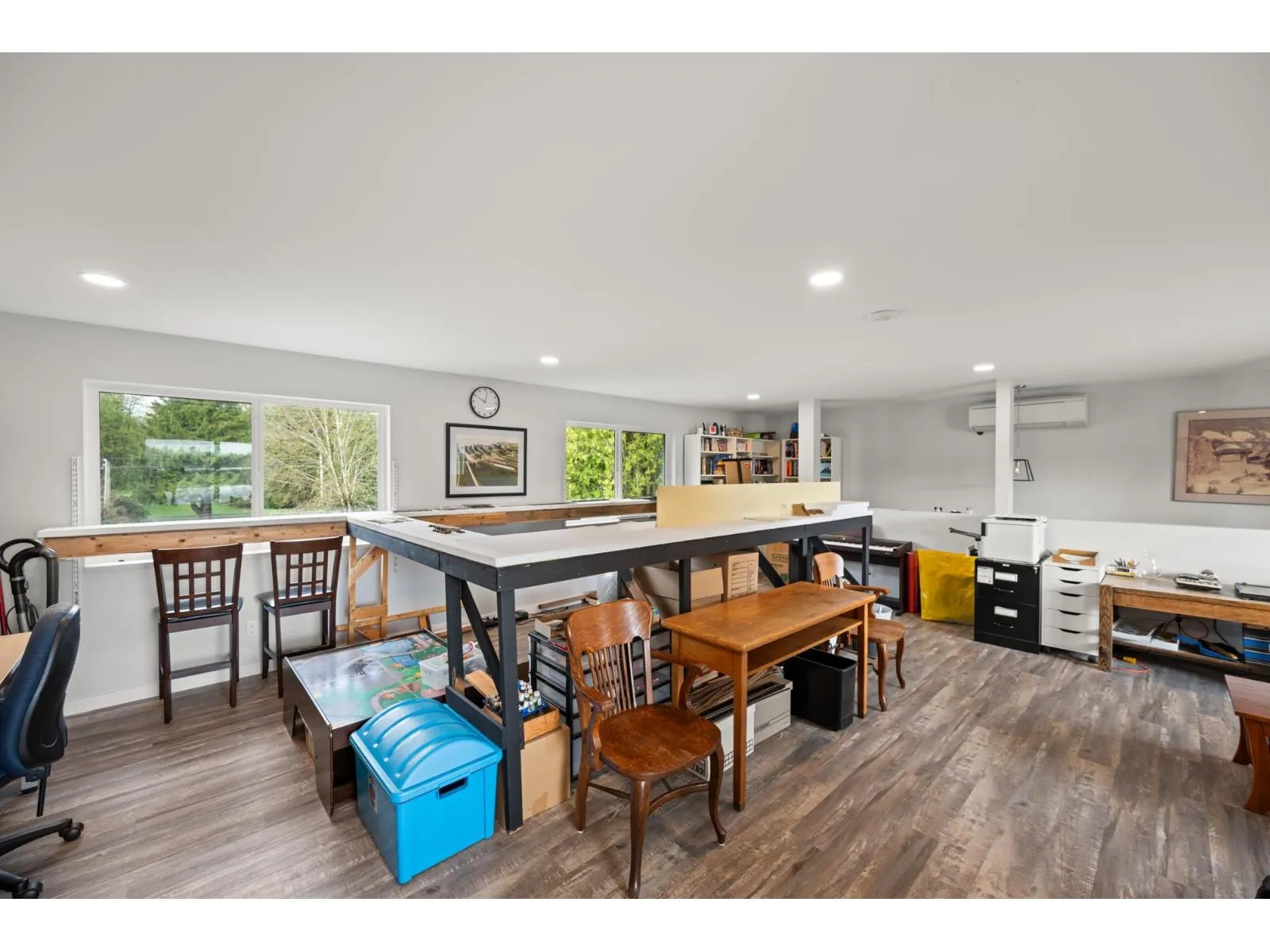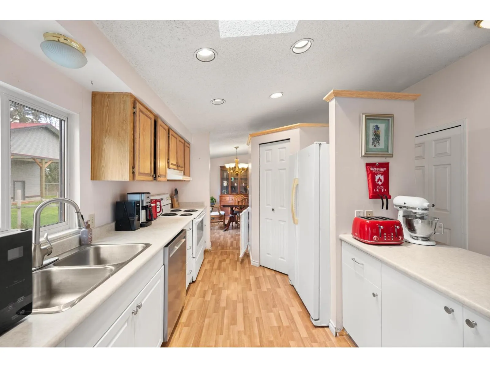 Clear, flat, 1-acre property with large, new shop & custom-designed modular home on crawl space offers perfect blend of style & functionality. Vaulted ceilings in living, dining, kitchen, & family room with gas fireplace create roomy, open layout with multiple activity or lounging areas. Primary suite boasts luxurious 5-pc ensuite. Enjoy sunsets on west-facing sundeck, through double French doors. Updates include vinyl plank flooring & septic system. Lots of parking available with detached double carport plus recently built detached double garage/shop & over-height carport with finished office & storage above, including 10' ceilings, upgraded electrical & gas services, 2-pc washroom, mini split heat pump (heating and cooling) & RV parking with hook-ups on both sides. (id:27476)
