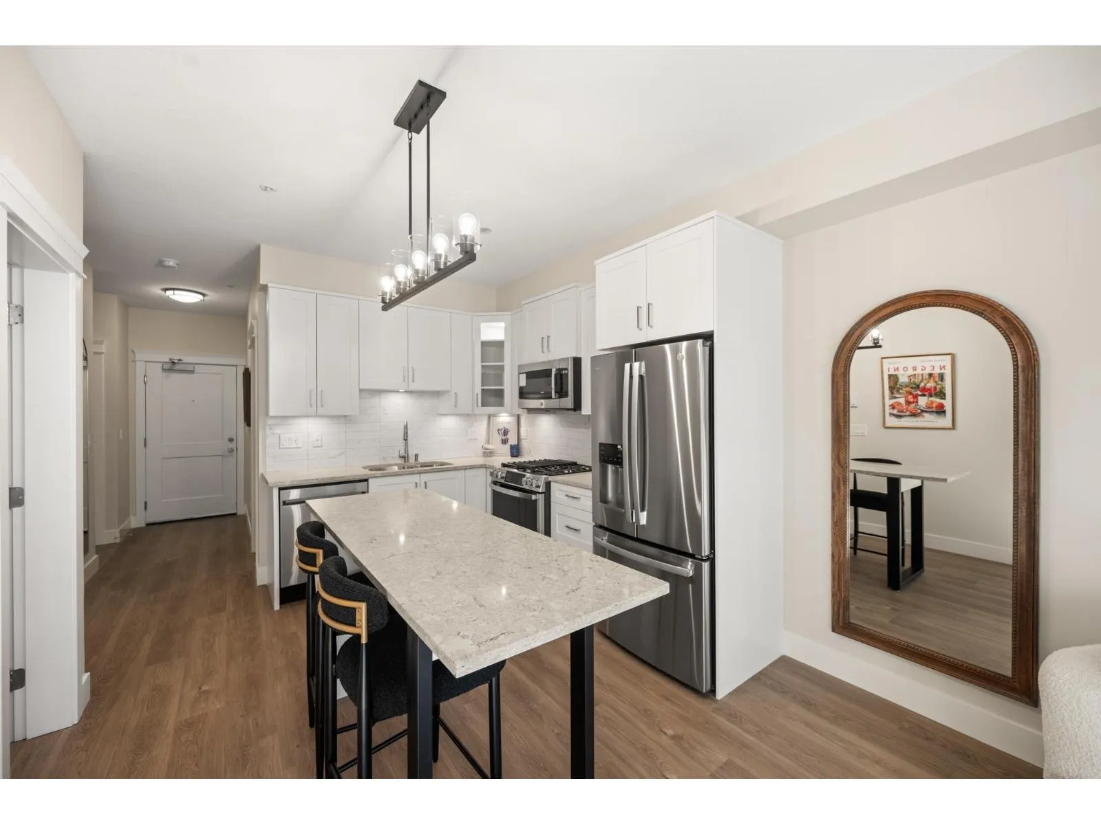 Welcome to Kensington Gate by Quadra Homes!!! This top floor JR 2 Bed 1 Bath unit has 10 foot ceilings, A/C, Stainless Steel appliance package, white quartz countertops, white shaker cabinets, vinyl-plank floors throughout (heated tile floors in the bathroom), built in closet organizers, built in safe, HUGE storage locker and 1 parking stall! Strata fees include natural gas for stove and BBQ hook up! Perfect location for schools, restaurants, shops, grocery stores and great access to the highway! (id:27476)