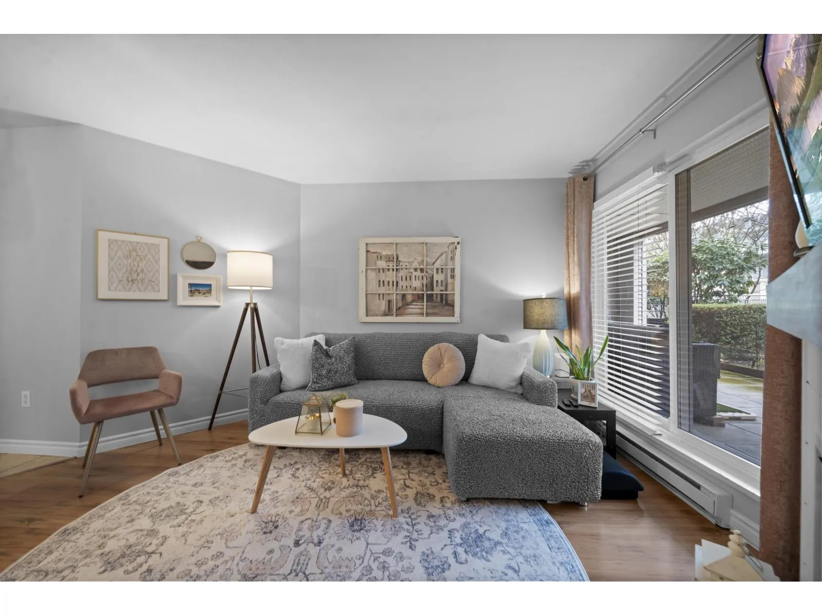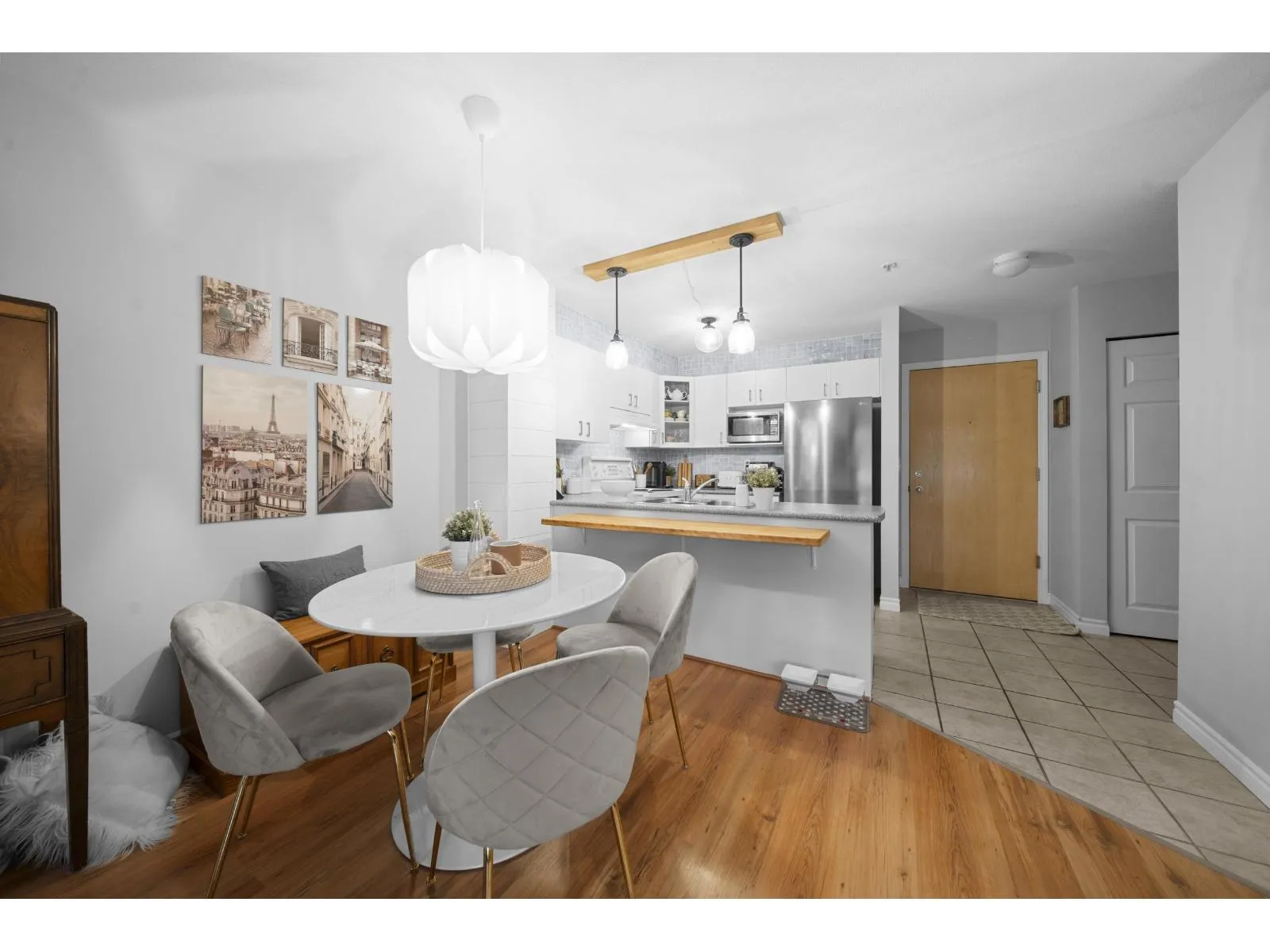 Welcome to this beautifully updated junior 2 bedroom condo offering style, comfort, and unbeatable convenience. The kitchen features crisp white cabinetry with updated hardware, modern lighting, sleek appliances, and warm wood accents complemented by charming shiplap details. Cozy up by the gas fireplace in the inviting living area, or step through the sliding doors onto your oversized private covered patio - perfect for year-round enjoyment and entertaining. The bathroom has been tastefully refreshed with a contemporary grey vanity, creating a clean and modern feel. Positioned above ground level for added privacy and security, this home offers peace of mind along with comfort. Complete with two secured parking stalls and a storage locker! (id:27476)