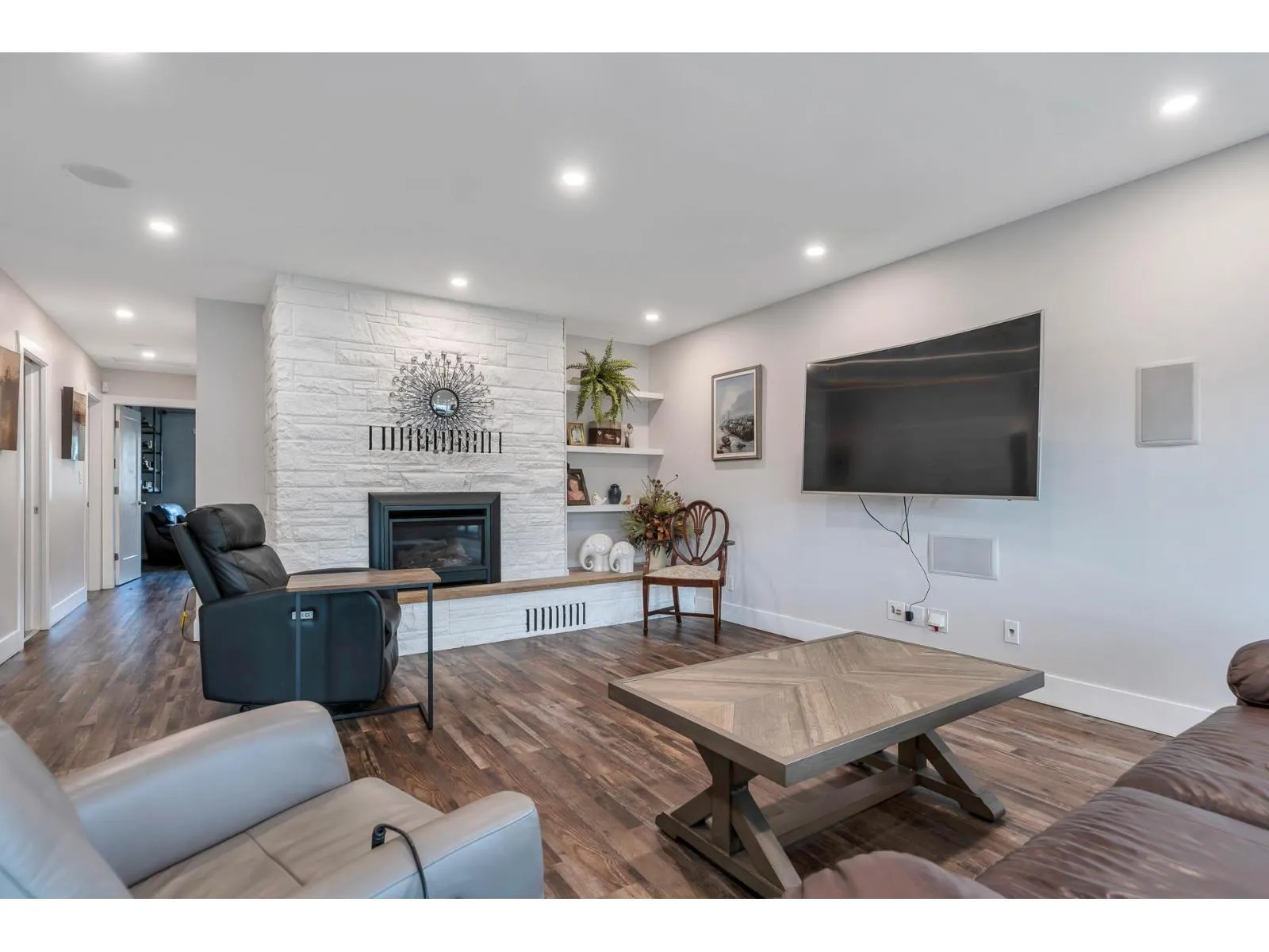 Beautiful fully renovated Rancher with a bright open finished basement on just over a half acre. Total of 6 bedrooms+ Den, 2 fireplaces & 4 fully updated bathrooms. Lots of windows, open concept, 2 Gorgeous kitchens, stainless steel appliances & 2 laundry rooms. New plumbing & Electrical, pot lights and light fixtures. Ideal set up for extended family. Fully fenced yard, Garden, lots of parking. Large Workshop & various storage sheds. Larger workshop 28 x23. Private yard to enjoy social gatherings, Outdoor Bar room, New large Sundeck & covered area for a Hot tub. Lots of parking on street. (id:27476)