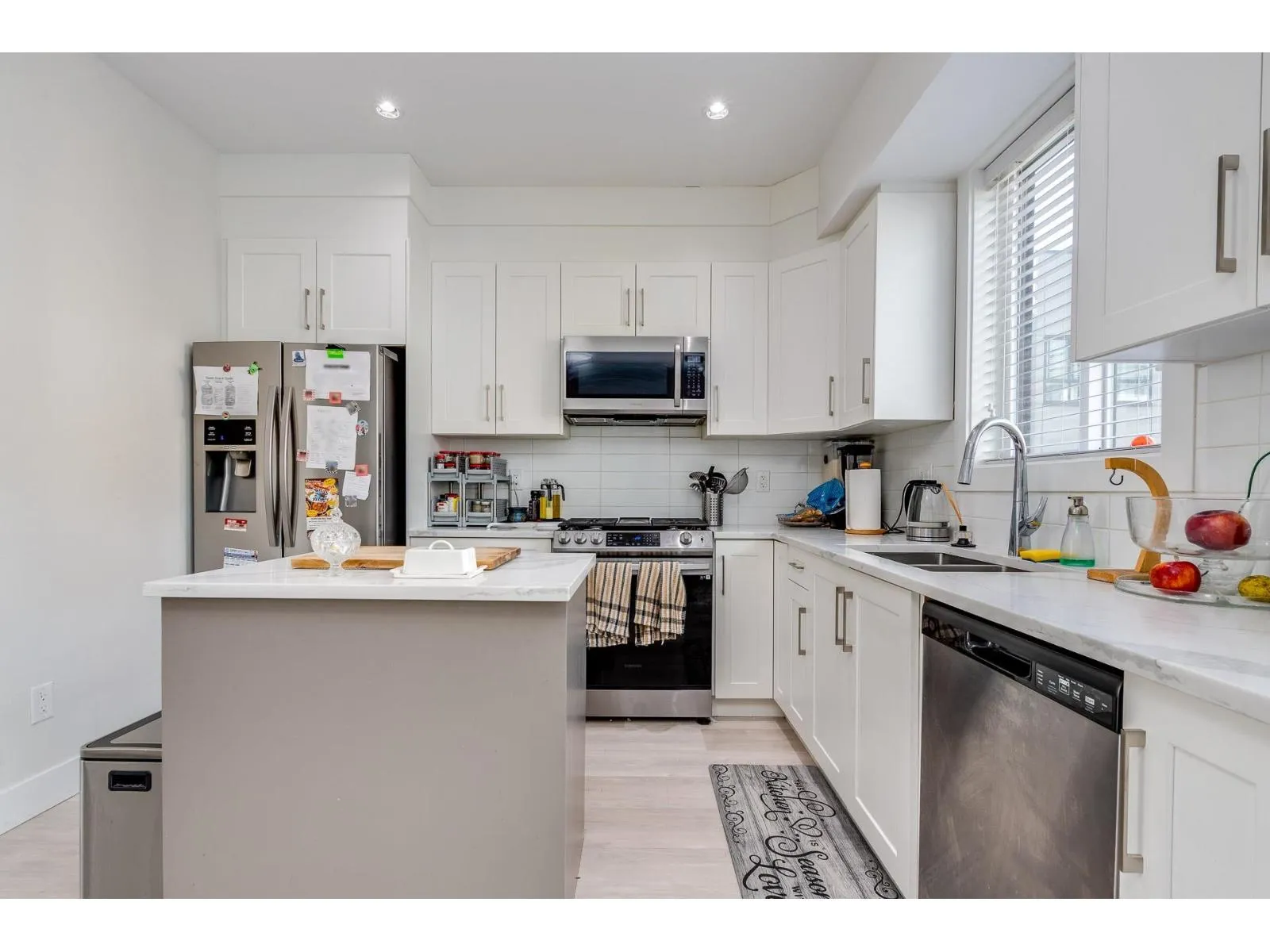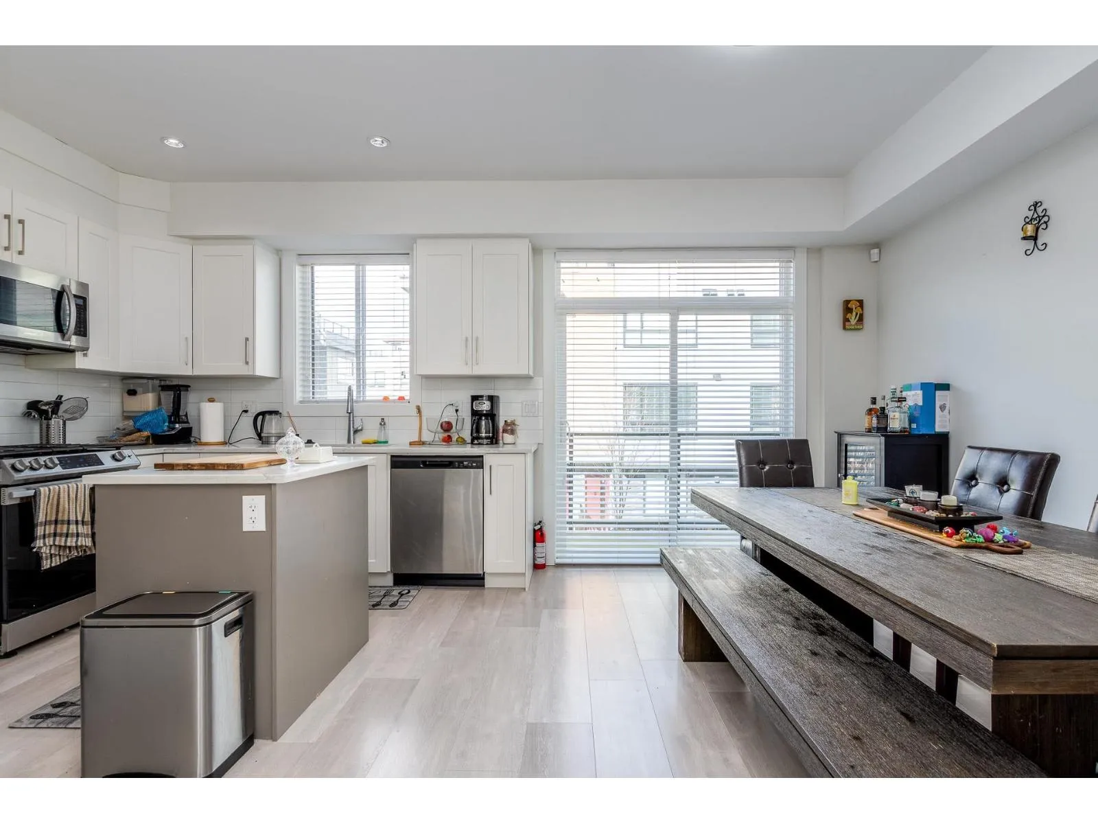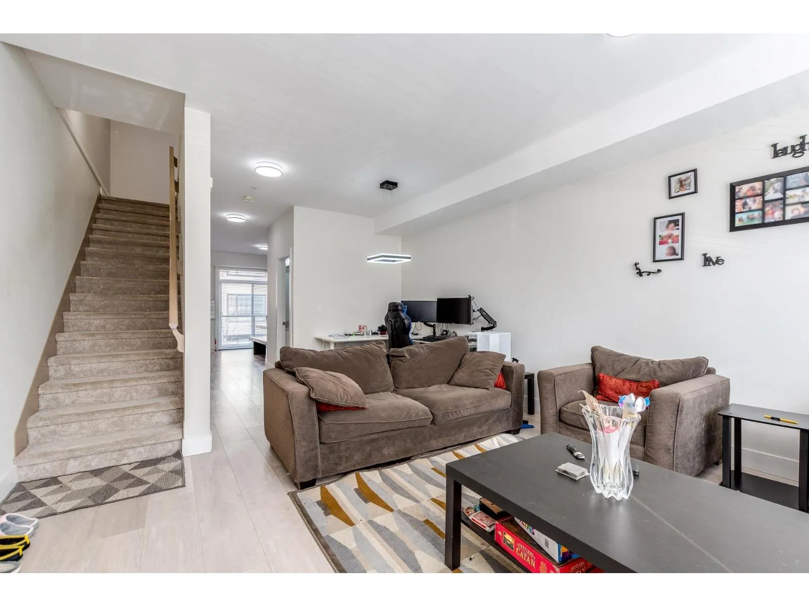 This spacious unit next to a dead end street is Bright,facing south.3 bed / 2.5 baths,4 year old unit with 1474 sq ft,Primary bedroom has double closets,2nd 3rd bedroom are good size.Double tandem garage with area can be used as a workshop area in the garage. Roof top deck approx 500 sq ft. Sundeck off the nook area. Bright Kitchen with gas Range, quartz countertops, engineered laminate flooring, frameless glass showers, custom wooden cabinets, stainless steel appliances.Enjoy Air conditioning, Gas forced air furnace.Excellent value. Located in Langley City close to shops, restaurants, shopping, recreation and the newly expected Skytrain Station (id:27476)