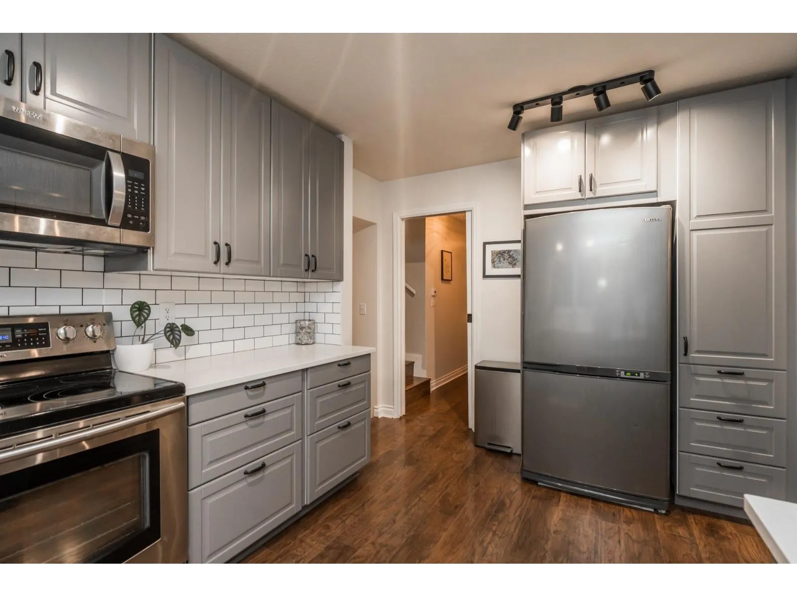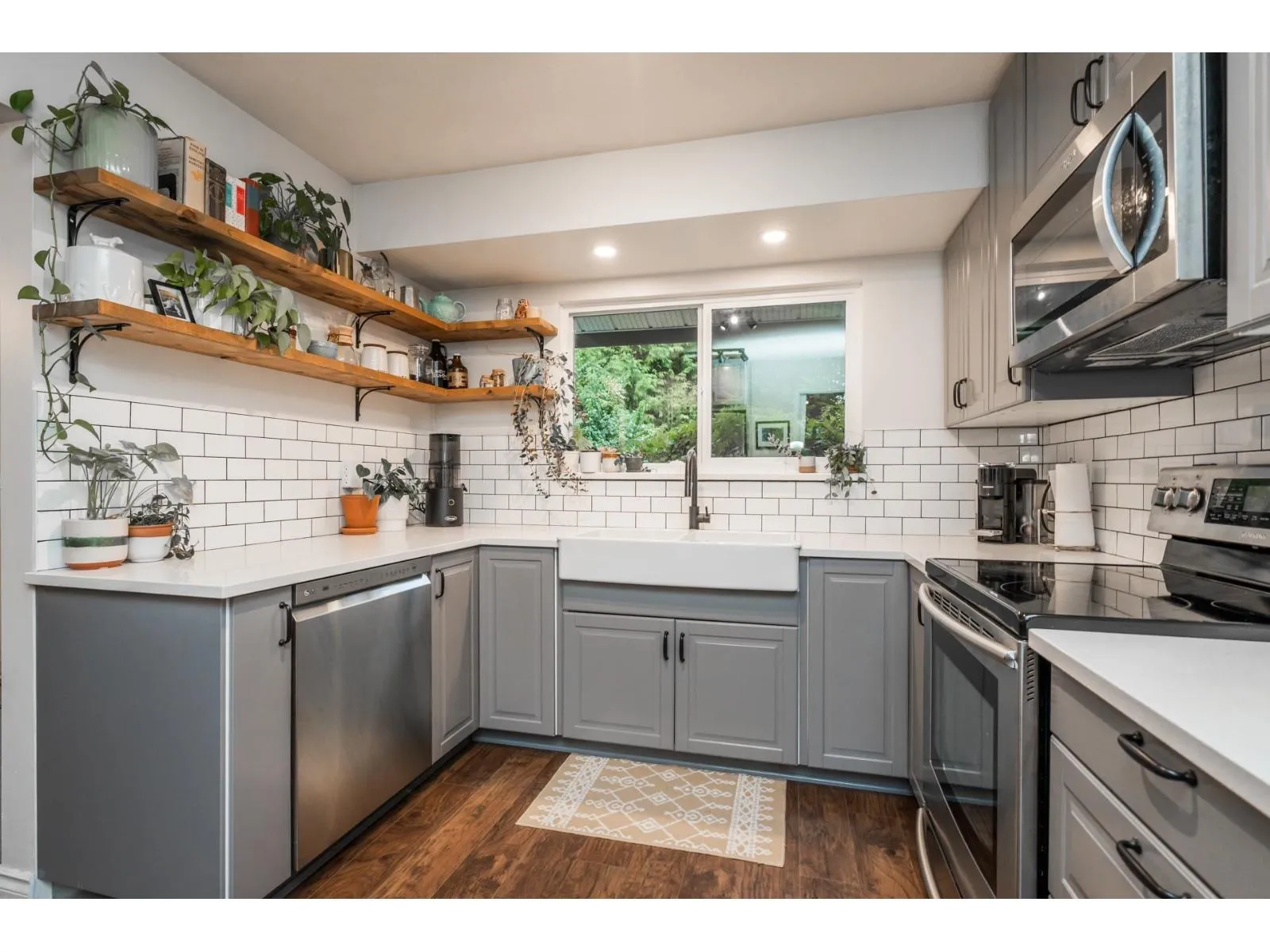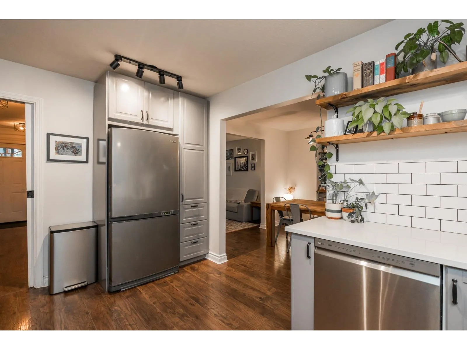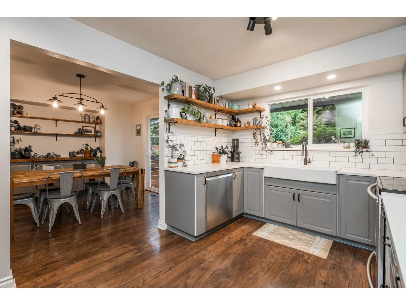 Beautifully maintained and updated family home. Newer rich laminate flooring through the main and upper level. A large living room that will accommodate your family gatherings that opens to your formal dining room complete with a built-in buffet and sliders to a patio area. Fabulous newer contemporary kitchen with quartz counters and stainless steel appliances. Your family room has a floor to ceiling rock faced gas fireplace and sliders to a large covered patio. Three large bedrooms upstairs. Newer vinyl windows throughout. The west facing backyard is huge and very private that's perfect for entertaining. Lots of parking including RV parking. Convenience of Transit on your doorstep. Development potential "Ground-Orientated Residential" allowing townhomes, rowhomes and du- tri- fourplexes. (id:27476)