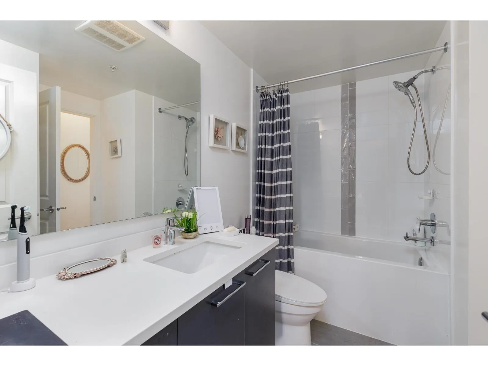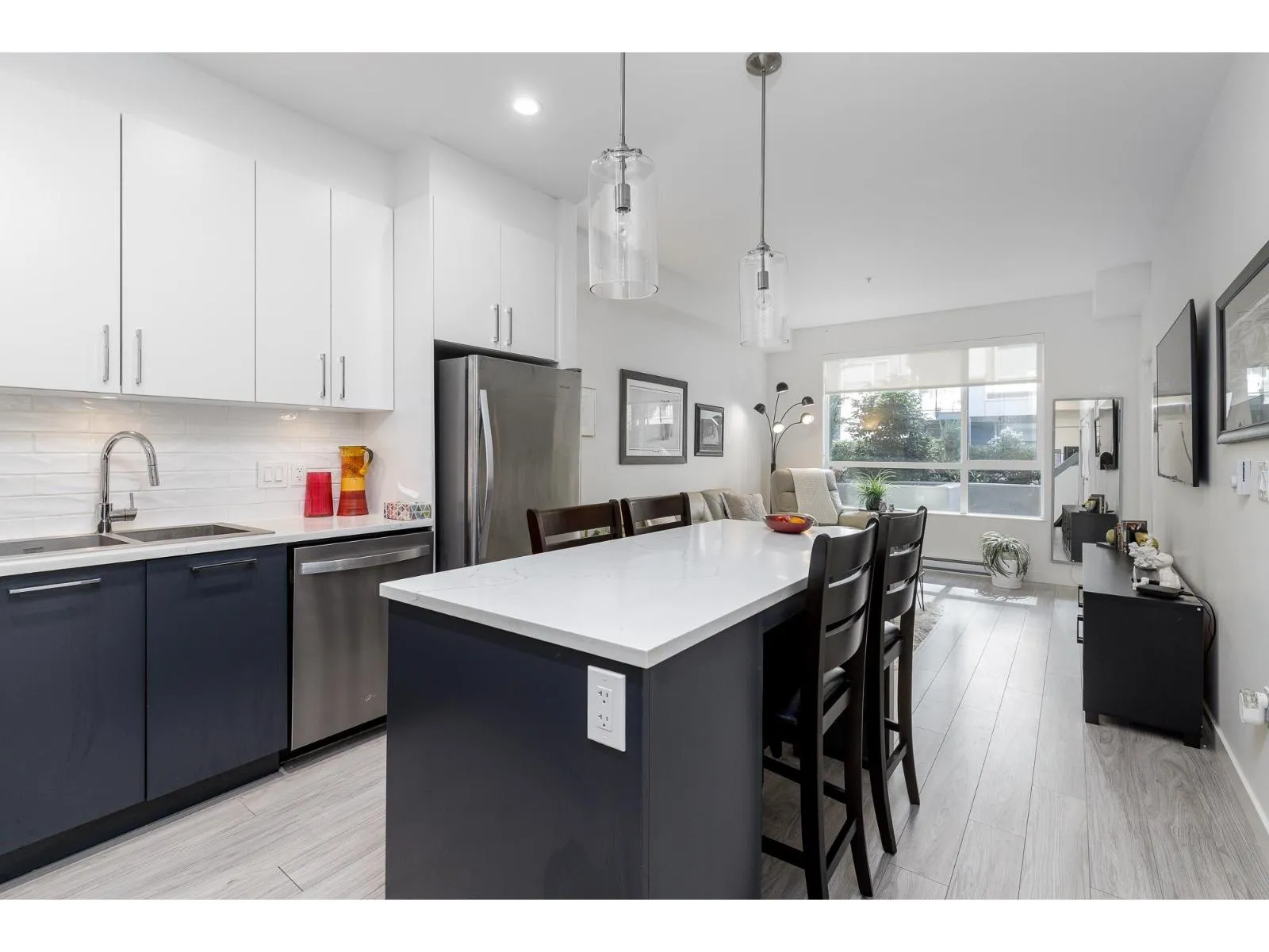 HUGE DEN + 1 Bedroom! This amazing home offers the utmost in comfort, and convenience. You'll love the build quality & finishing quality. With 1 spacious bedroom plus a sizable den (could be a spare bedroom, office, personal gym), large bright windows, stainless steel appliances, quartz counters... the list goes on! Step outside onto your own extended patio, great for relaxing and entertaining. The building features a fabulous gym with plenty of equipment, a stylish lounge, plus a communal rooftop space, with BBQs that makes for a great retreat. 1 parking spot + Storage locker. Close to all levels of schools. Only steps away from Willoughby Town Centre Shopping Mall, for banking, groceries, dining and more! Close to bus stops, and minutes to Hwy 1. OPEN HOUSE MARCH 8 1-3 (id:27476)