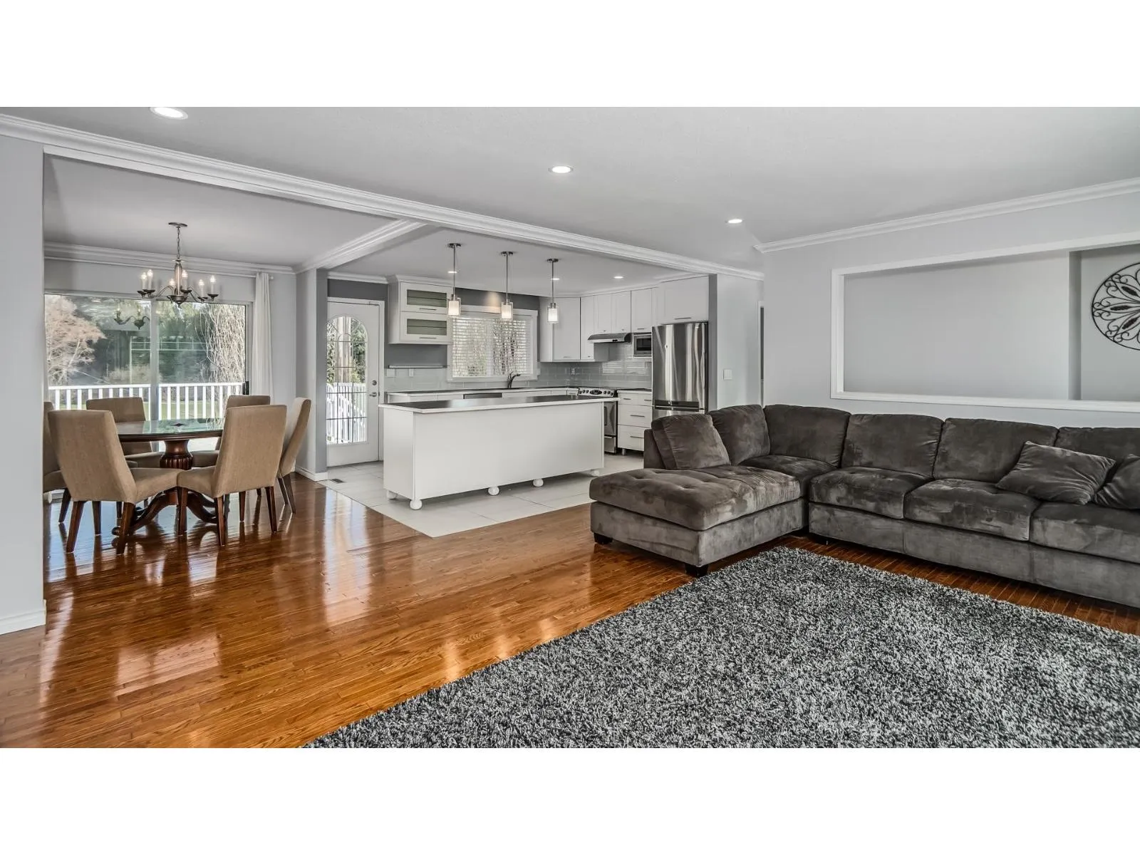 Backing directly onto Newlands golf course, this stunning basement-entry home offers the perfect blend of comfort and views. Enjoy a newer kitchen featuring sleek stainless steel appliances, modern finishes, large island and ample space for entertaining. Featuring hardwood flooring throughout your bright open-concept living area that is filled with natural light & steps out onto the huge balcony where you can take in breathtaking views of the lush fairways and surrounding mountains - the ideal setting for morning coffee or evening relaxation. 3 large bedrooms up. Basement offers 2 bedrooms and huge living space. Easy maintenance backyard features a large 15 x 11 powered shed. A rare opportunity to own a home with space, style, and unbeatable scenery. (id:27476)