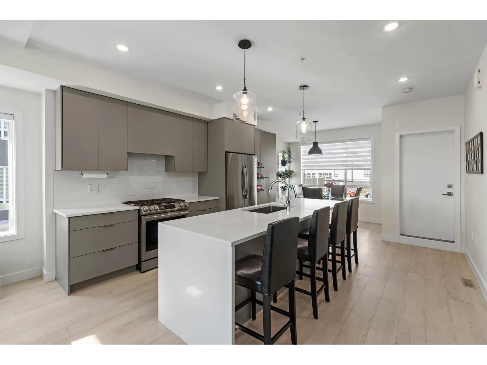 Corner Unit with Roof Top Patio with stunning mountain views! This townhome features 4 spacious Bedrooms, 2.5 Washrooms and 1,642 of modern interior living space. Bright and filled with natural light from every window. The kitchen features a large island, custom pantry, gas stove, and stainless steel appliances - perfect for entertaining. Enjoy year-round comfort with air conditioning and a Nest smart system. Additional highlights include a double car garage, electric hot water tank, built-in Murphy bed frame for flexible space, and custom pantry. Rooftop has stunning mountain views. Minutes away from Shopping, Schools and Brydon Park & Lagoon, and Brydon Playground. (id:27476)