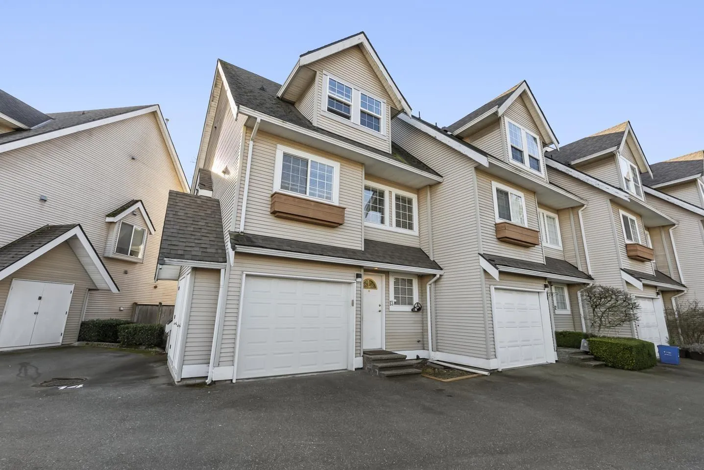 Book your private showings. This spacious end-unit townhome on the edge of Langley Meadows offers over 1,700 sq.ft. of inviting living space. 3BR & 2.5 Bath home features a functional layout w/ 2 spacious BR up, including a primary suite with vaulted ceilings, walk-in closet & cheater ensuite. The 3rd BR on the ground level has its own 3pc bath, perfect for teens, in-laws, int'l students or a home office. There's plenty of naturaly light in the bright living & dining areas with large windows & a balcony. Enjoy a fully fenced patio overlooking the courtyard & green space. Walk to Langley Meadows Elem & Meadows Edge Park. Located in the RE Mountain catchment, mins to Langley Crossing, Willowbrook Mall & Walmart, transit at your doorstep & future skytrain station approx. 1.5 km away. (id:27476)
