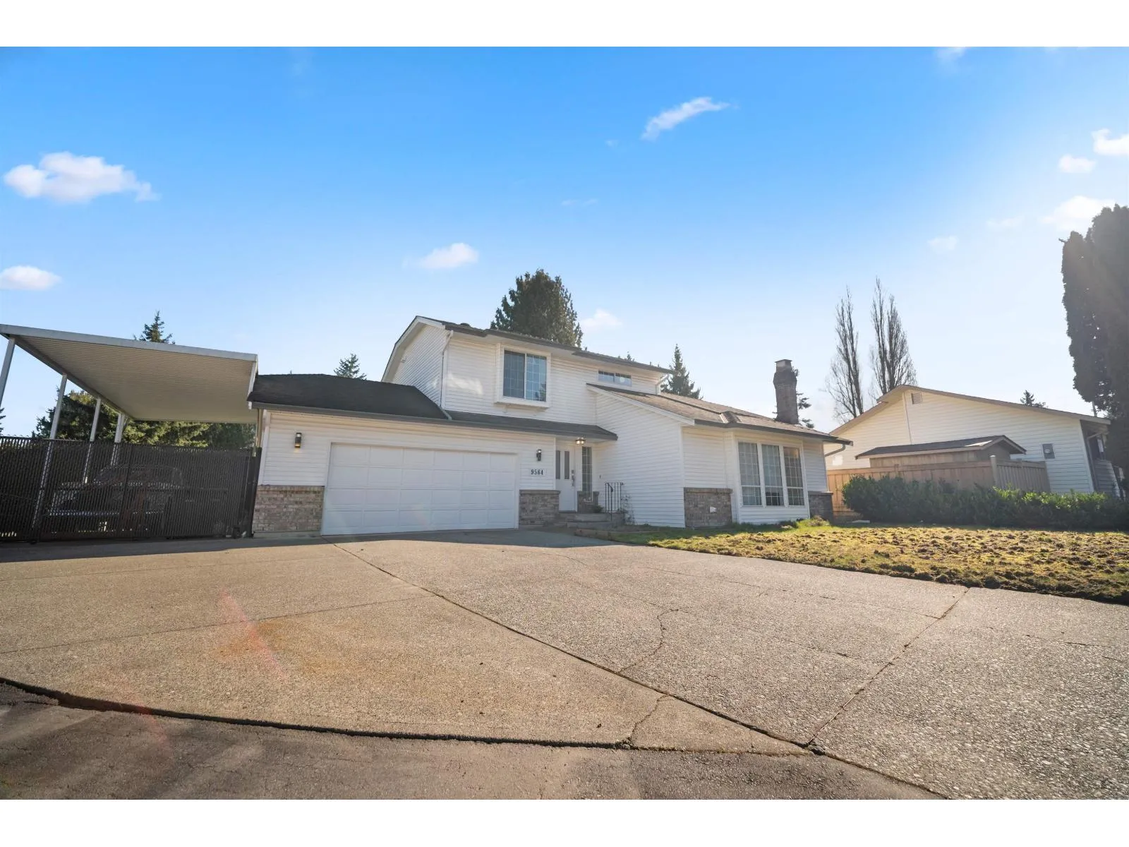 Walnut Grove. Nicely updated family home. Sought after RV covered parking, Car covered parking, with room for 2nd vehicle open parking, all behind gates. Oversized double garage. 10,088 sq. ft. cul de sac lot, with a fenced and hedged private north-east facing rear yard. 1807 sq. ft., main floor open layout, upper level 3 bedrooms, all generous room sizes. Features: 2010 asphalt roof. Expansive and gated rear sundeck with retractable sunshade ceiling. Extensive hardwood flooring on main, 2 gas fireplaces. Renovated kitchen: floor to ceiling cabinetry, granite counters, stainless appliances, renovated baths: new cabinets, fixtures, granite and quartz tops, primary seamless shower. Blocks to shopping, schools and park trails. Open House Sat., March 14, 2 to 3:30 (id:27476)