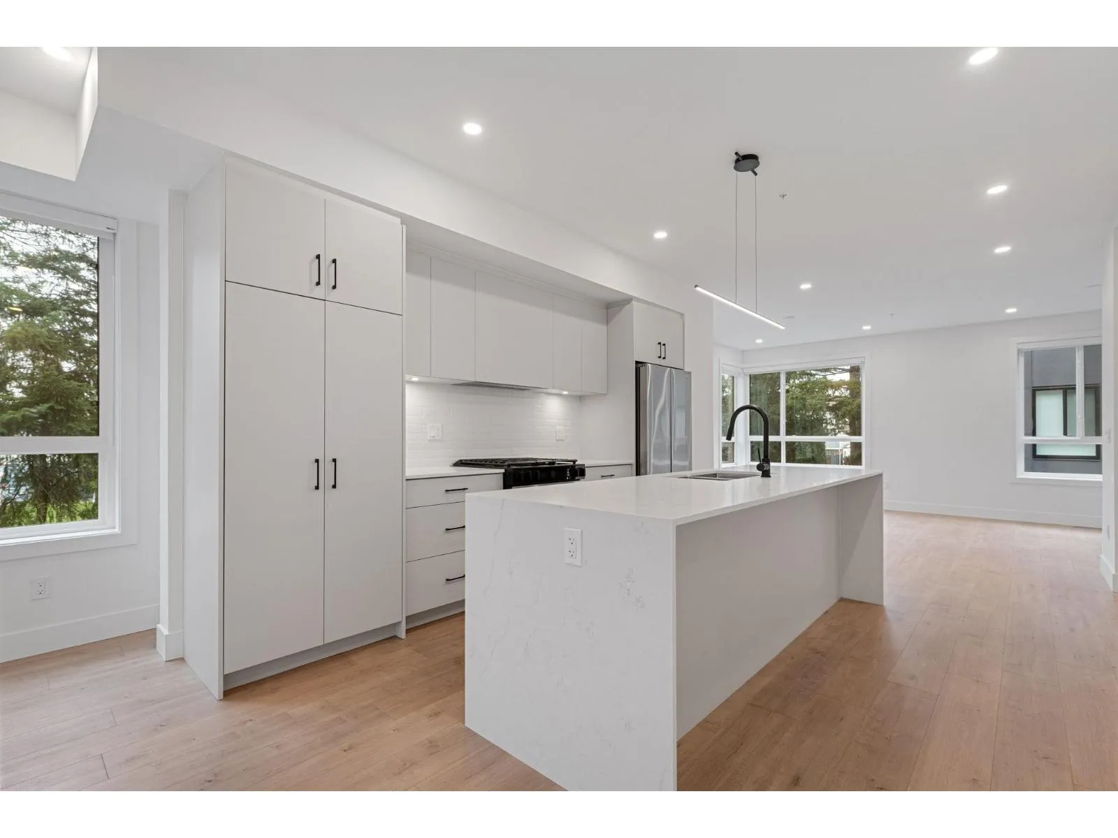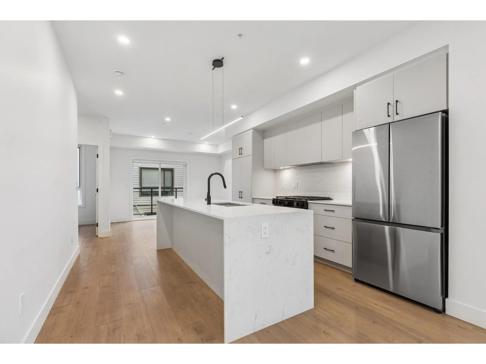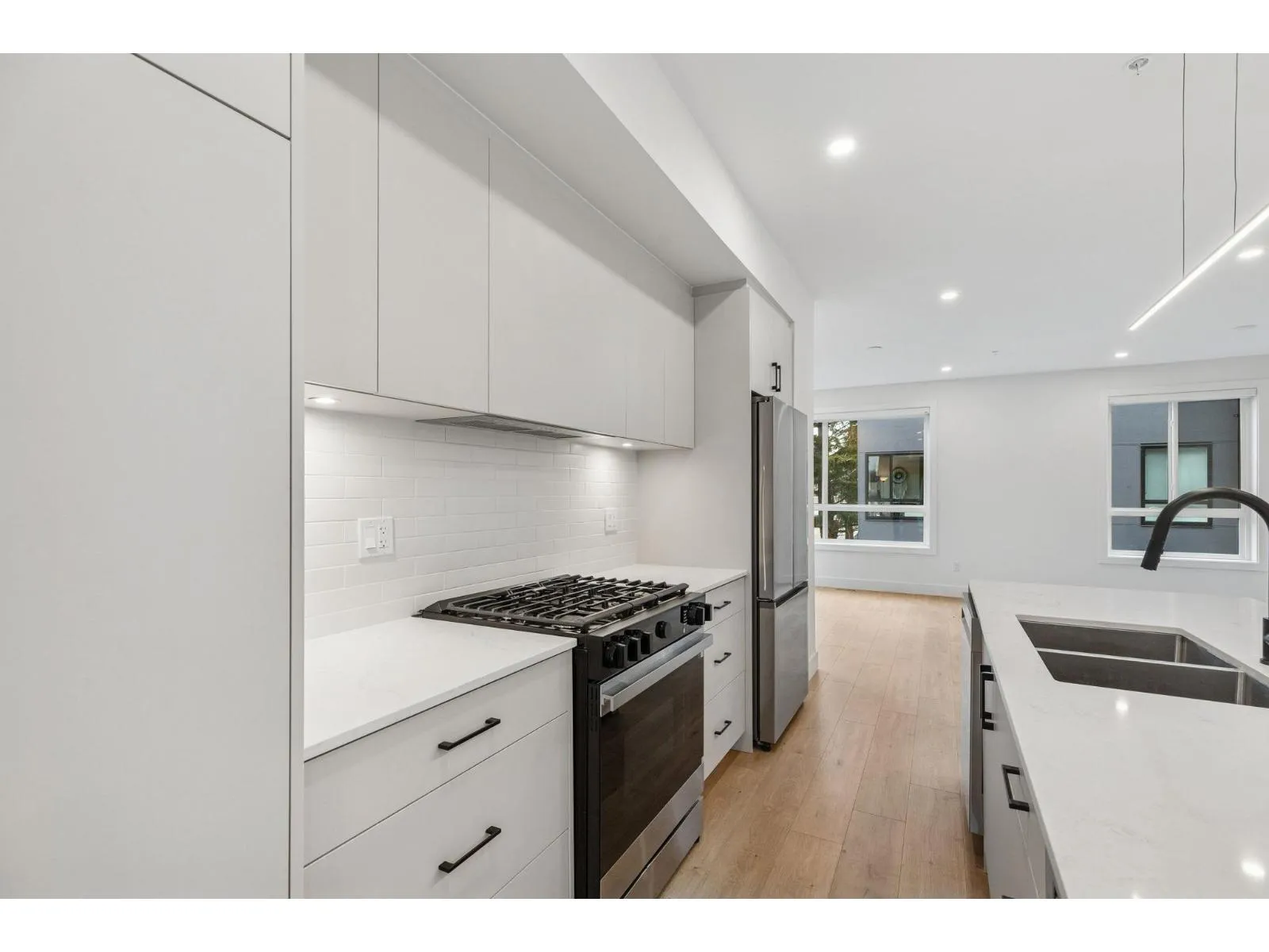 BRAND NEW CORNER 3 BEDROOM TOWNHOME WITH ROOFTOP DECK! This townhome features an open concept kitchen with sleek cabinetry, large kitchen island with quartz waterfall countertops, stainless steel appliances including gas range, flowing on durable laminate flooring into the spacious living and dining rooms and opens onto a patio with gas hookup. Appreciate 9' ceilings, oversized windows, forced air heating/air-conditioning and roller blinds throughout. Above is a primary suite with 4 piece , double vanity ensuite and 2 additional spacious bedrooms sharing a beautifully contemporary bathroom. This home features a 559SF rooftop deck and garage for 2 vehicles and EV charging! ****OPEN HOUSE: SATURDAY, MARCH 21 1:30-3PM*** (id:27476)
