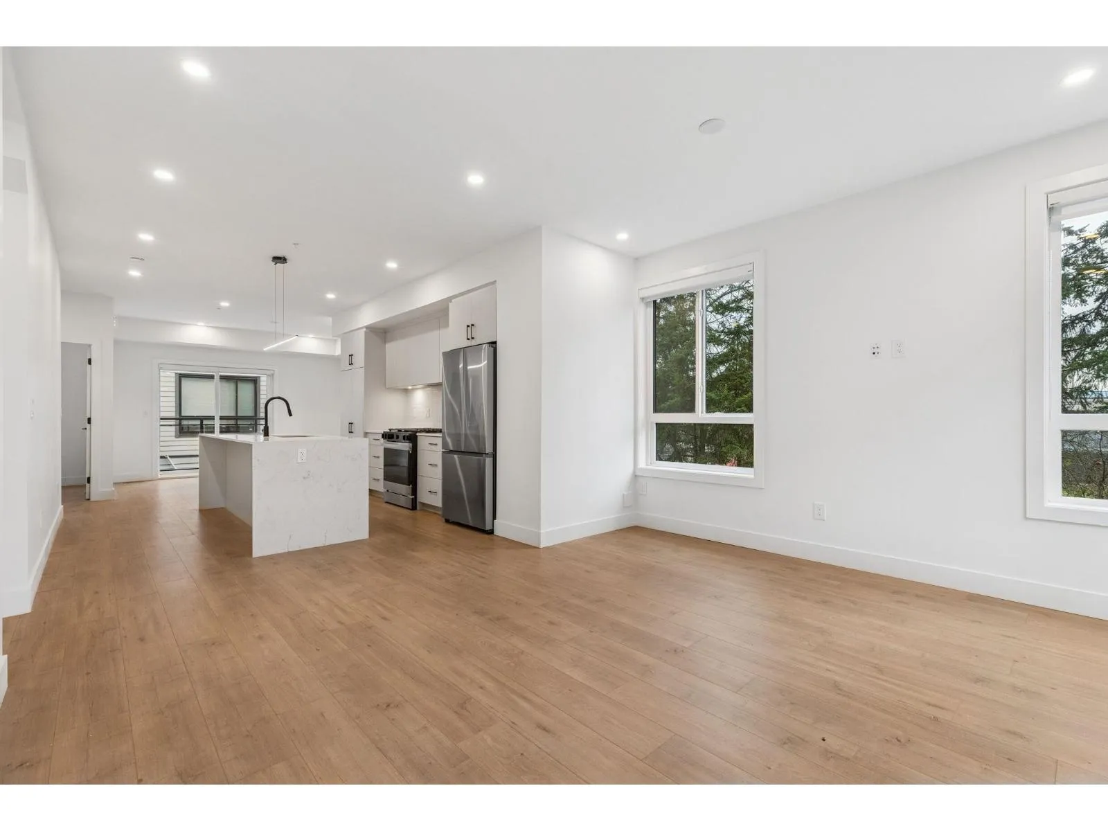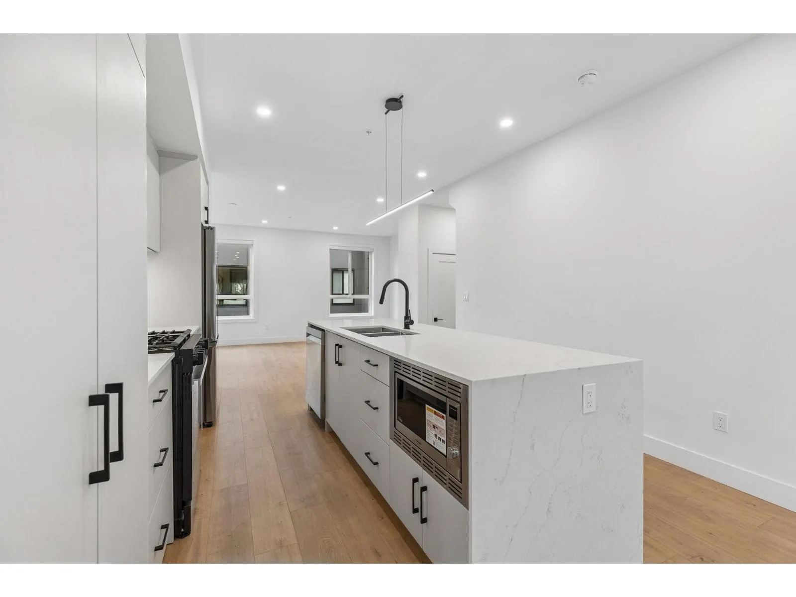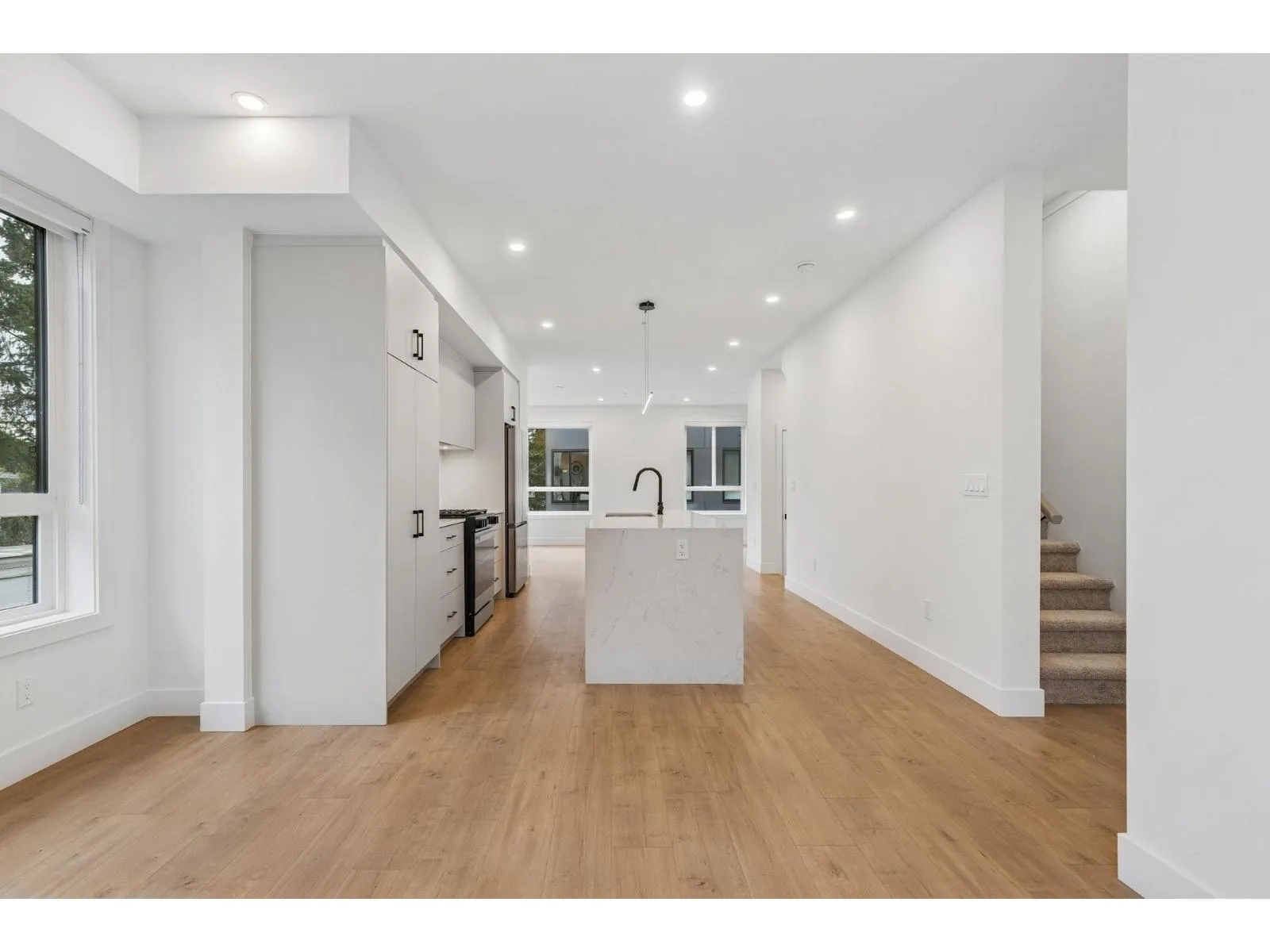 BRAND NEW CORNER 3 BEDROOM TOWNHOME WITH ROOFTOP DECK! This townhome features an open concept kitchen with sleek cabinetry, large kitchen island with quartz waterfall countertops, stainless steel appliances including gas range, flowing on durable laminate flooring into the spacious living and dining rooms and opens onto a patio with gas hookup. Appreciate 9' ceilings, oversized windows, forced air heating/air-conditioning and roller blinds throughout. Above is a primary suite with 4 piece , double vanity ensuite and 2 additional spacious bedrooms sharing a beautifully contemporary bathroom. This home features a 559SF rooftop deck and garage for 2 vehicles and EV charging! ****OPEN HOUSE: SATURDAY, MARCH 21 1:30-3PM*** (id:27476)
