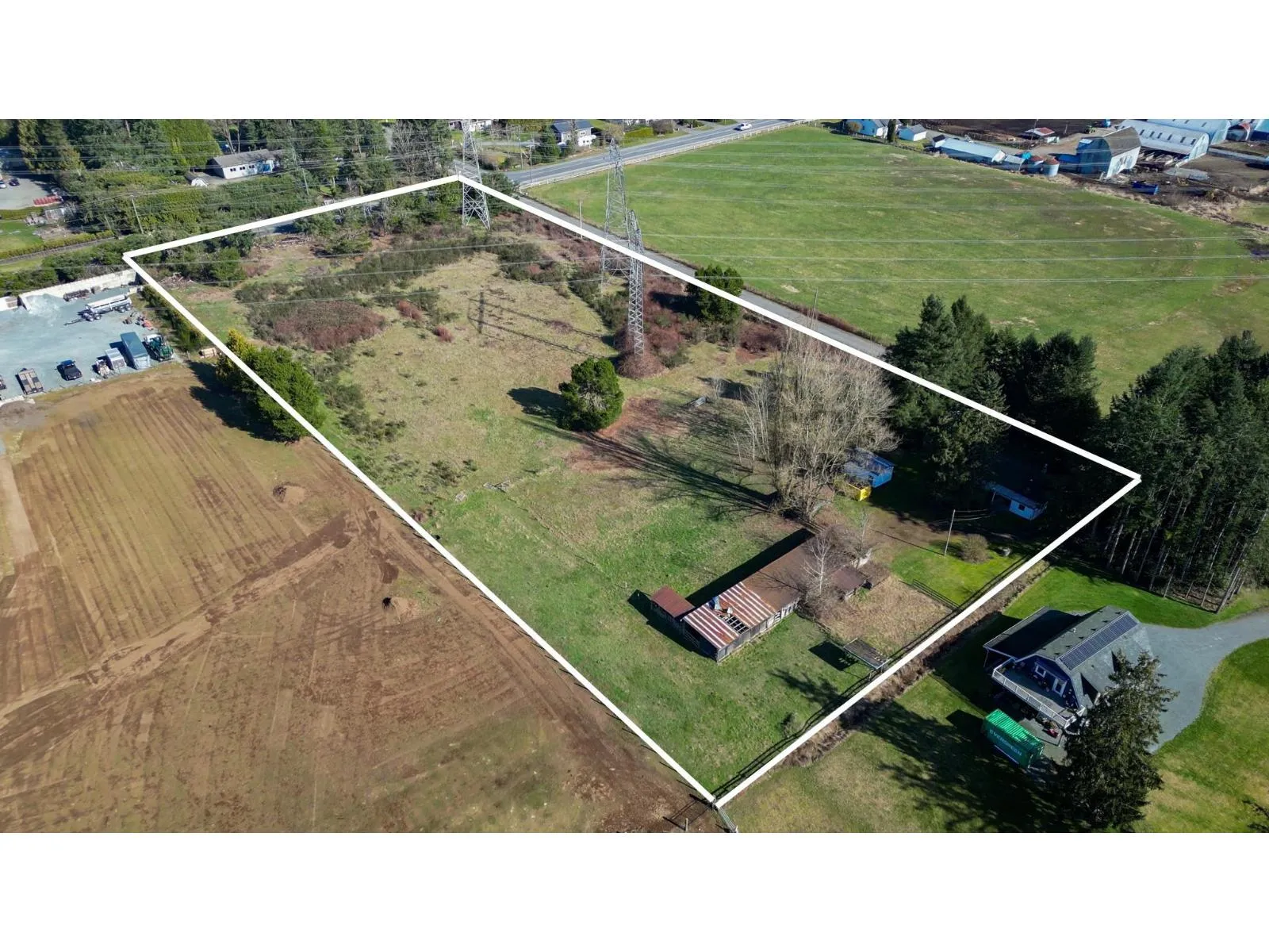 4.41 acre property has 622 ft of frontage & the land is level & fertile w/ no creeks or ponds. Tons of room for parking trucks. Property is a perfect rectangle w/ two road frontages & is close to the new Brookswood Community Development plan! Mins to Brookswood Secondary, Langley Fundamental School, Noel Booth School & numerous parks! Super quiet no thru street located in such a central location! This cute 1033 sq.ft rancher farmhouse w/ 3 bdrm, 1 bath is just waiting for your renovation ideas; or its a great location to build your custom dream home & listen to the birds singing! Currently in the ALR. Property also has an older barn & shop & is on city water. Great land for growing blueberries or veggies! BC Hydro power lines cross over approx 2 acres on north side of the property. (id:27476)