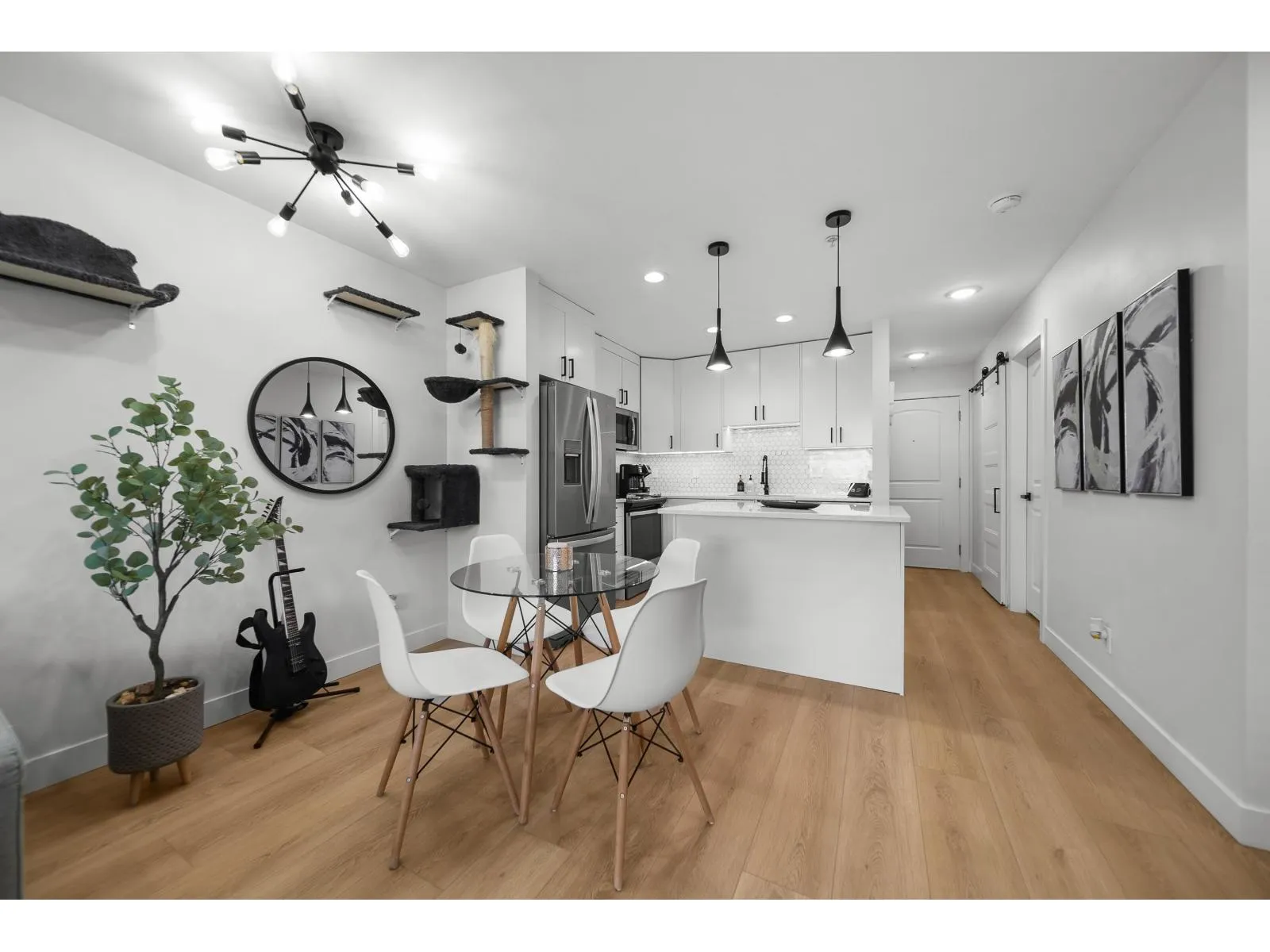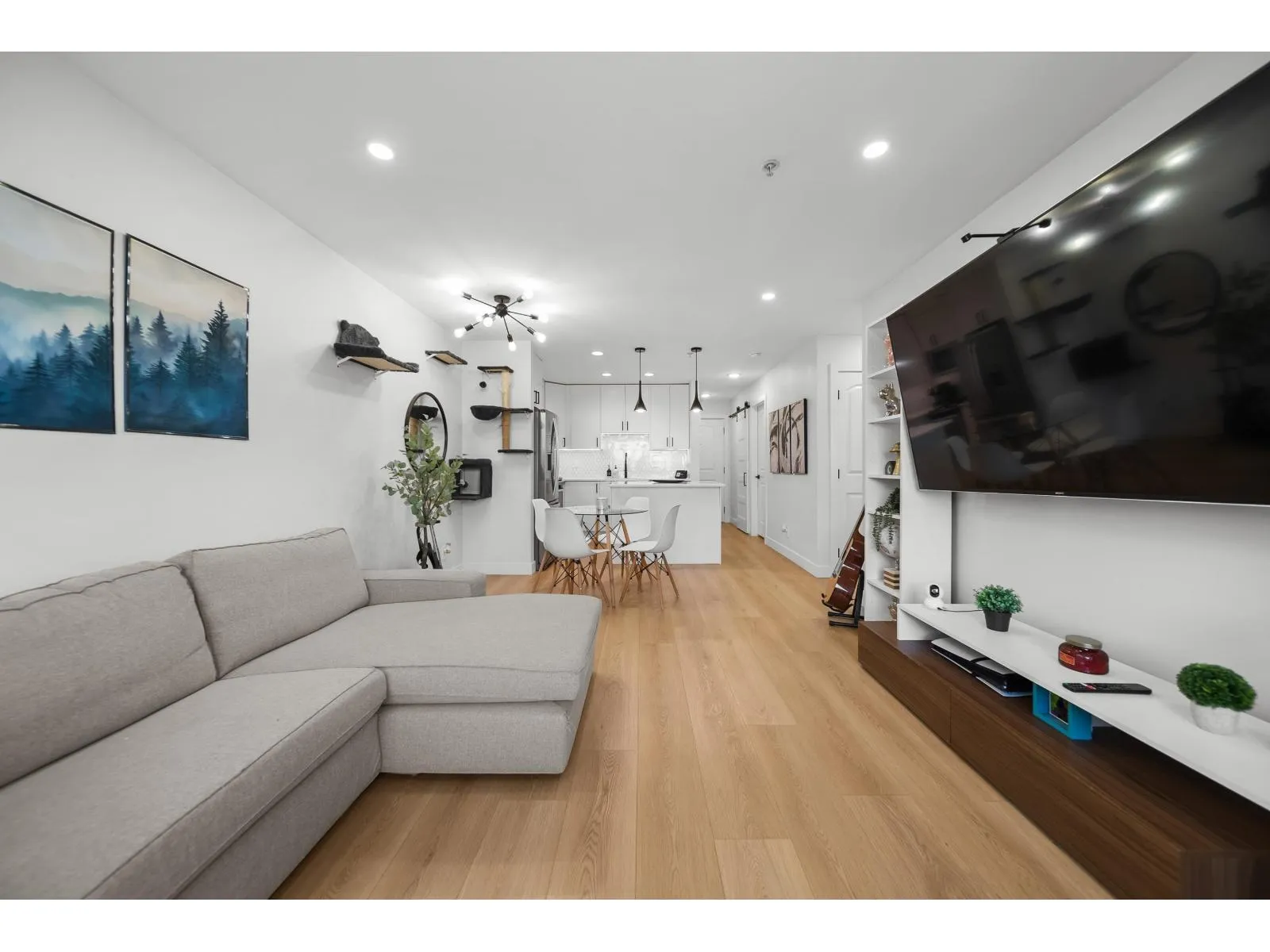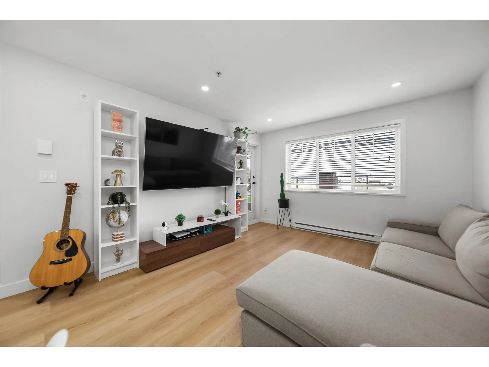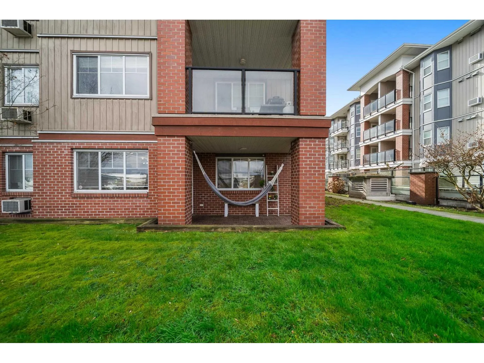 Wow! Langley City beauty at Madison Station! A lot to appreciate at this CORNER two bed and two bathroom condo. Situated on the ground floor with access to covered 12x8 patio plus spacious grass area (common property) making for a great space for children to play! This 'like new' home features an abundance of updates including: kitchen with quartz counters, luxury SPC vinyl flooring, updated main bath, remodeled ensuite with in-floor heating, A/C in primary, lighting system controlled by Alexa, paint, baseboards and even the outlets and switches. Enjoy TWO dedicated parking stalls, private storage and a well run building including fitness and club rooms. Strata fee of 408/month and welcoming all ages plus one pet (cat or dog of any size). Call Madison Station home! (id:27476)