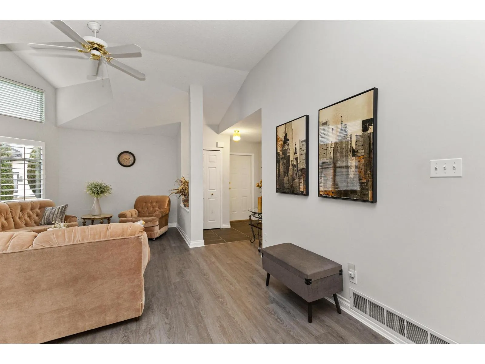 Welcome to Huntersfield Green! This gorgeous end-unit rancher townhome with double garage shows like new and is loaded with thoughtful upgrades. Located in a sought-after 55+ gated community featuring a deluxe clubhouse with pool and hot tub, this home offers the perfect blend of comfort, privacy, and lifestyle. The bright, open-concept layout features spacious living and dining areas with vaulted ceilings, transom windows, and a cozy gas fireplace. The timeless white solid oak kitchen includes an island, wine rack, pantry, and a sunny eating area that opens to the family room with sliders to a private covered deck and extended brick patio-ideal for relaxing or entertaining. Too many extras to mention. Shows 10 plus. Call today before it's too late! (id:27476)