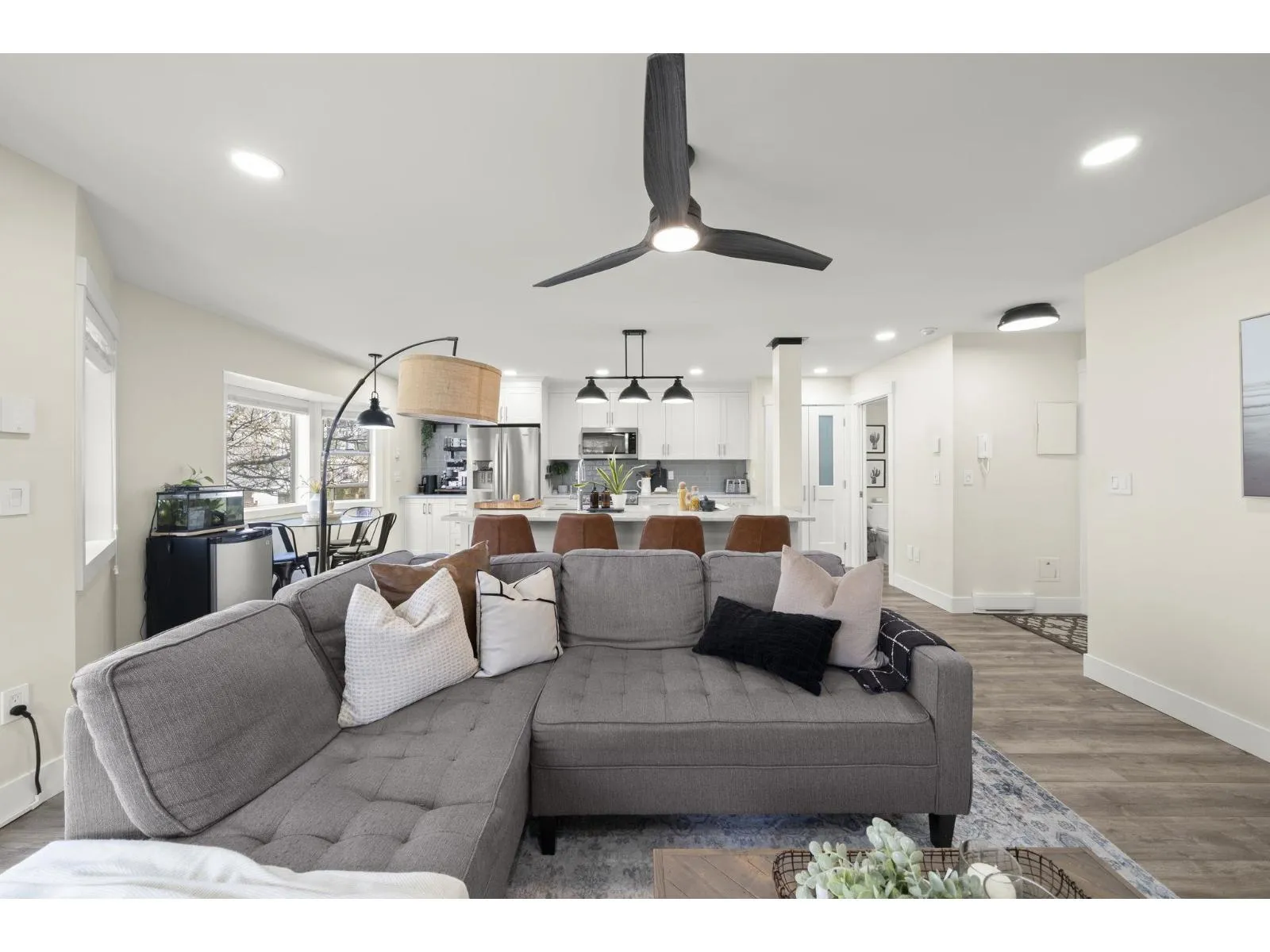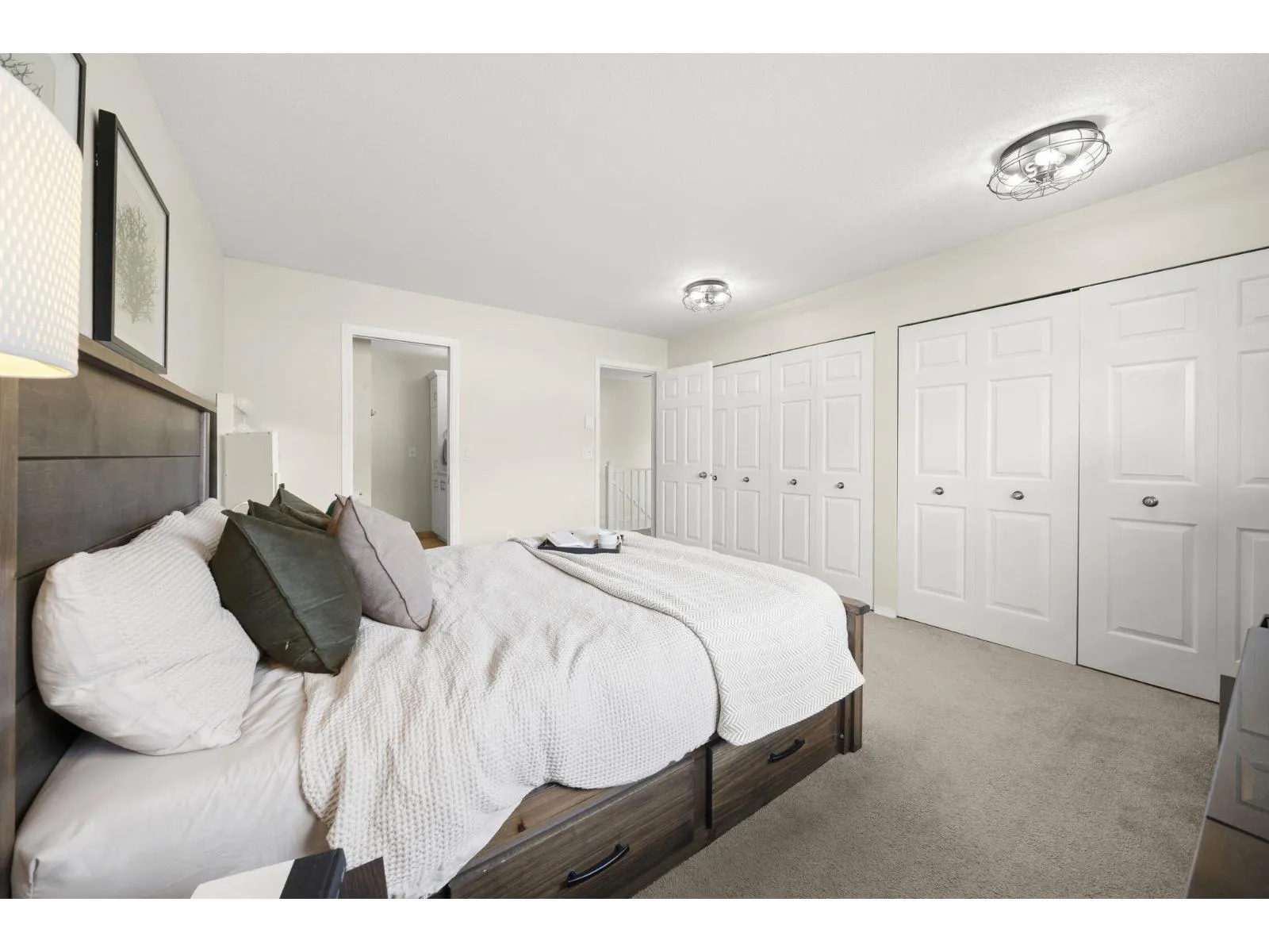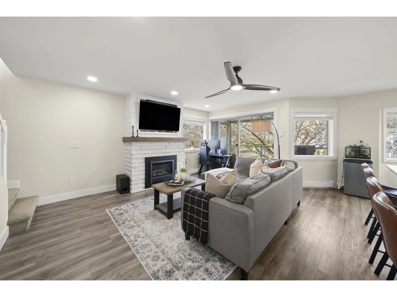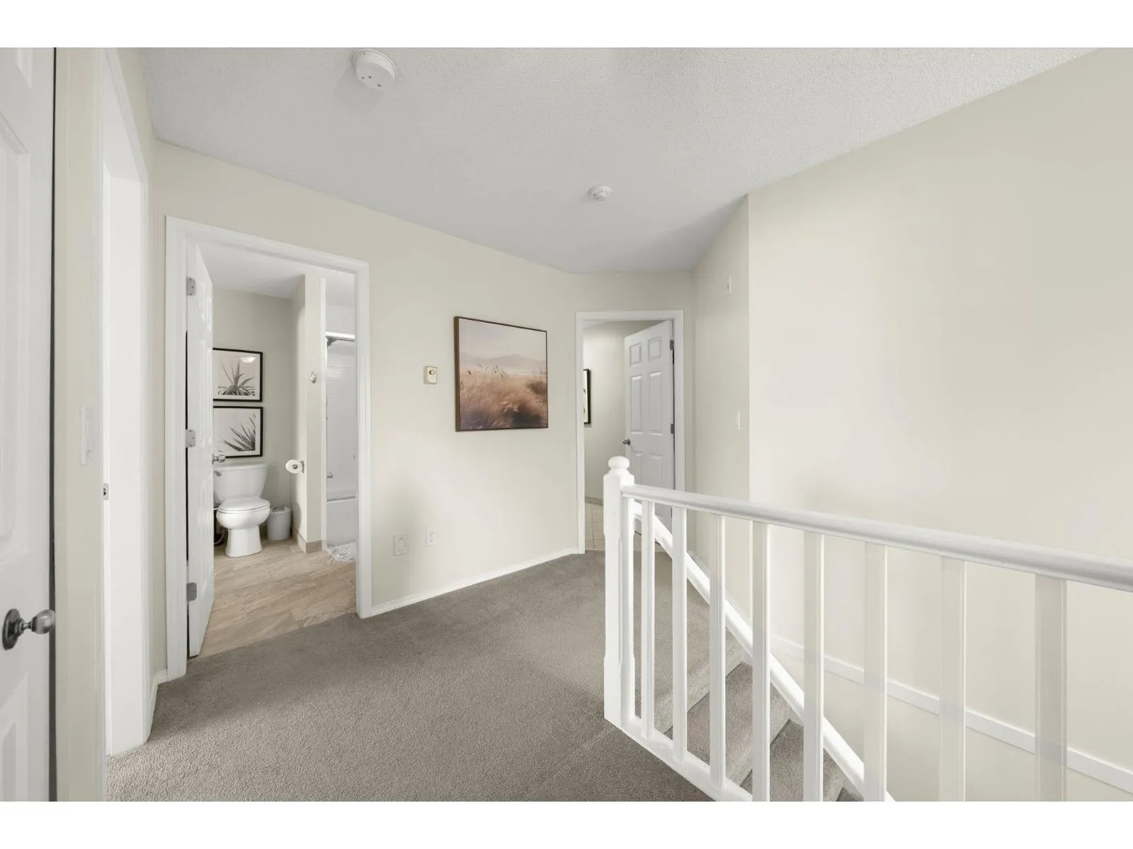 Welcome to your new home in the heart of Langley City! This spacious corner top-floor unit offers nearly 1,300 sq ft over two levels, providing the privacy and feel of a townhouse with the convenience of a condo. Both bedrooms are generously sized with plenty of closet space. The heart of the home features an open-concept kitchen and living area, highlighted by an oversized island, the ultimate setup for meal prep and hosting friends or family. Enjoy summer BBQs on your balcony or take advantage of the ample storage throughout, including 2 dedicated parking spots and 1 storage. Located steps from the park and walking distance to One Way in downtown Langley and the future SkyTrain station, this location offers unbeatable connectivity. Don't miss out on this rare find! (id:27476)