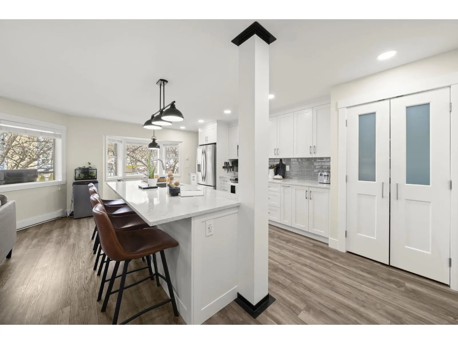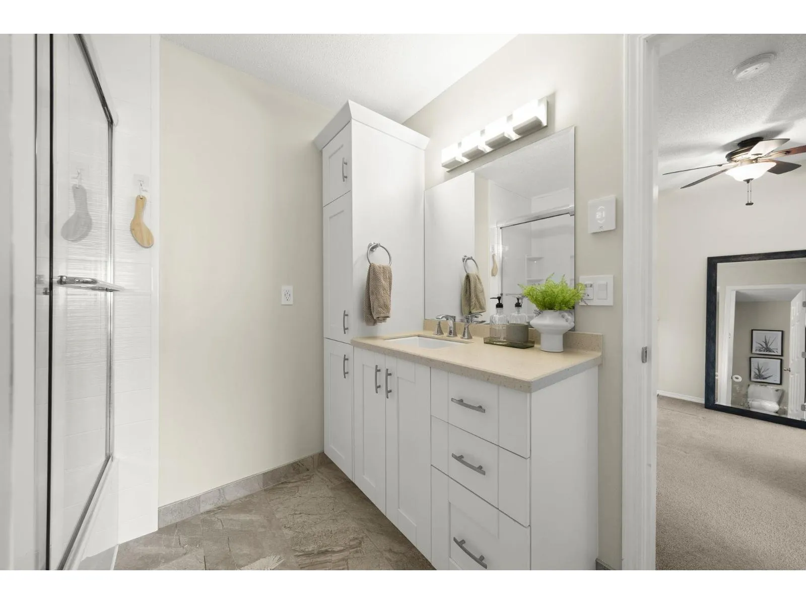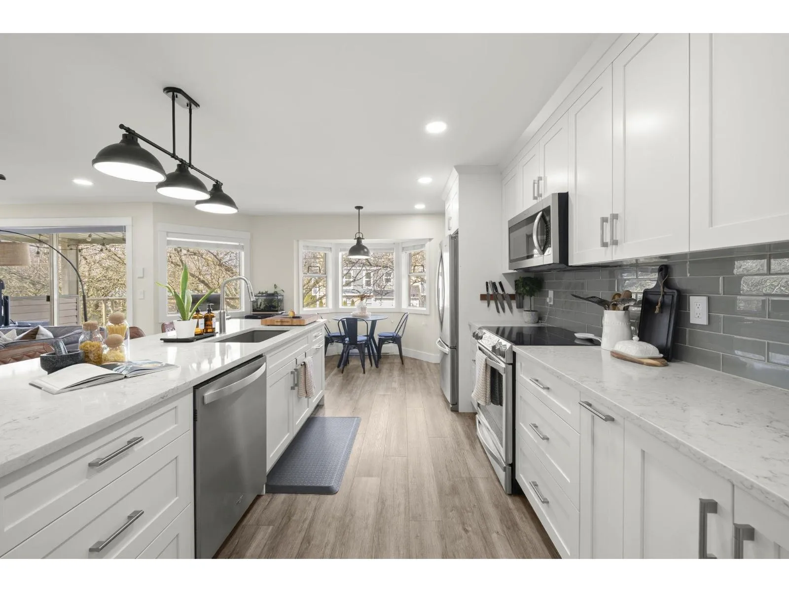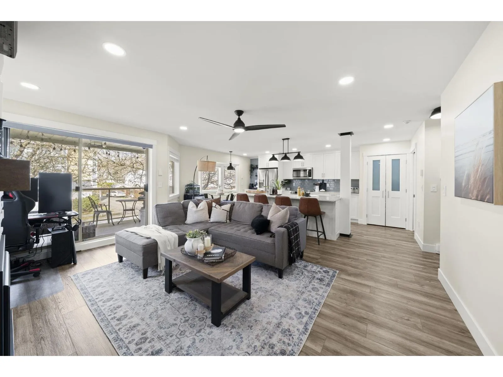 Welcome to your new home in the heart of Langley City! This spacious corner top-floor unit offers nearly 1,300 sq ft over two levels, providing the privacy and feel of a townhouse with the convenience of a condo. Both bedrooms are generously sized with plenty of closet space. The heart of the home features an open-concept kitchen and living area, highlighted by an oversized island, the ultimate setup for meal prep and hosting friends or family. Enjoy summer BBQs on your balcony or take advantage of the ample storage throughout, including 2 dedicated parking spots and 1 storage. Located steps from the park and walking distance to One Way in downtown Langley and the future SkyTrain station, this location offers unbeatable connectivity. Don't miss out on this rare find! (id:27476)