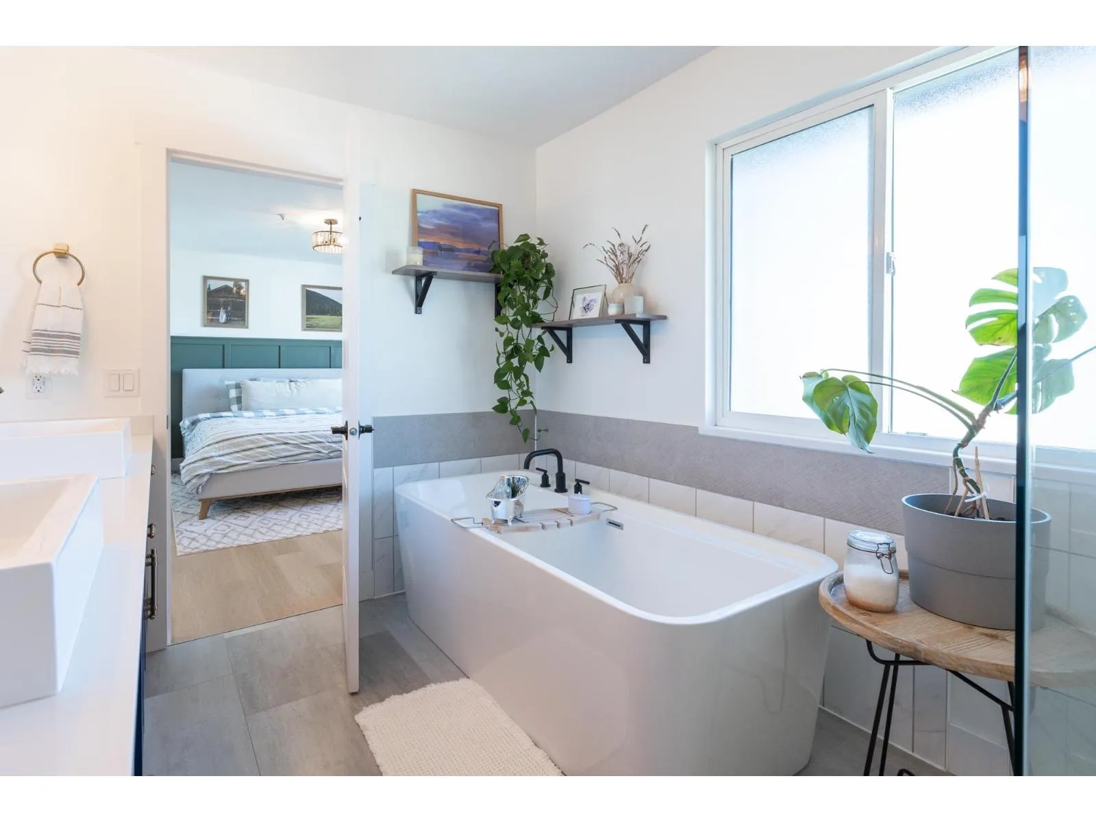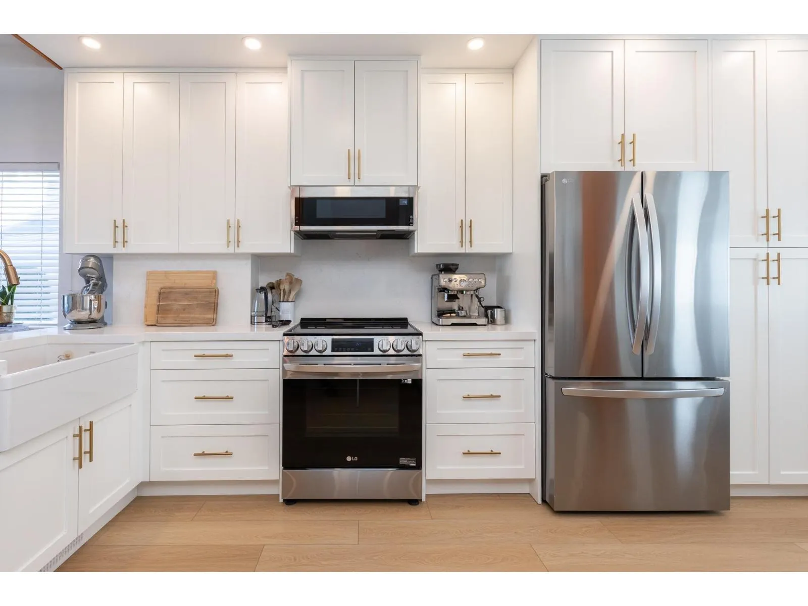 Welcome home to your deluxe, totally updated end location townhome in Heritage Glen. This 3 bedroom, 3 full bathroom townhome with side-by-side double garage has had no expense spared in making this the most luxurious and comfortable home in Walnut Grove. Check out the open concept main floor with new kitchen (incl modern cabinets, counters & appliances), redesigned living room with custom fir & solid wood mantle, all new vinyl plank flooring, mouldings, lighting, paint, blinds. Fantastic bones: heat pump(2023), newer furnace(2020), hot water(2021), vinyl windows & updated roof. Check out the master suite complete w/deluxe shower, stand alone soaker & peek-a-boo mountain view too!The quality will show in the fit and finish. Walkable to Gordon Greenwood Elem., WGSS, shops, & rec centre (id:27476)