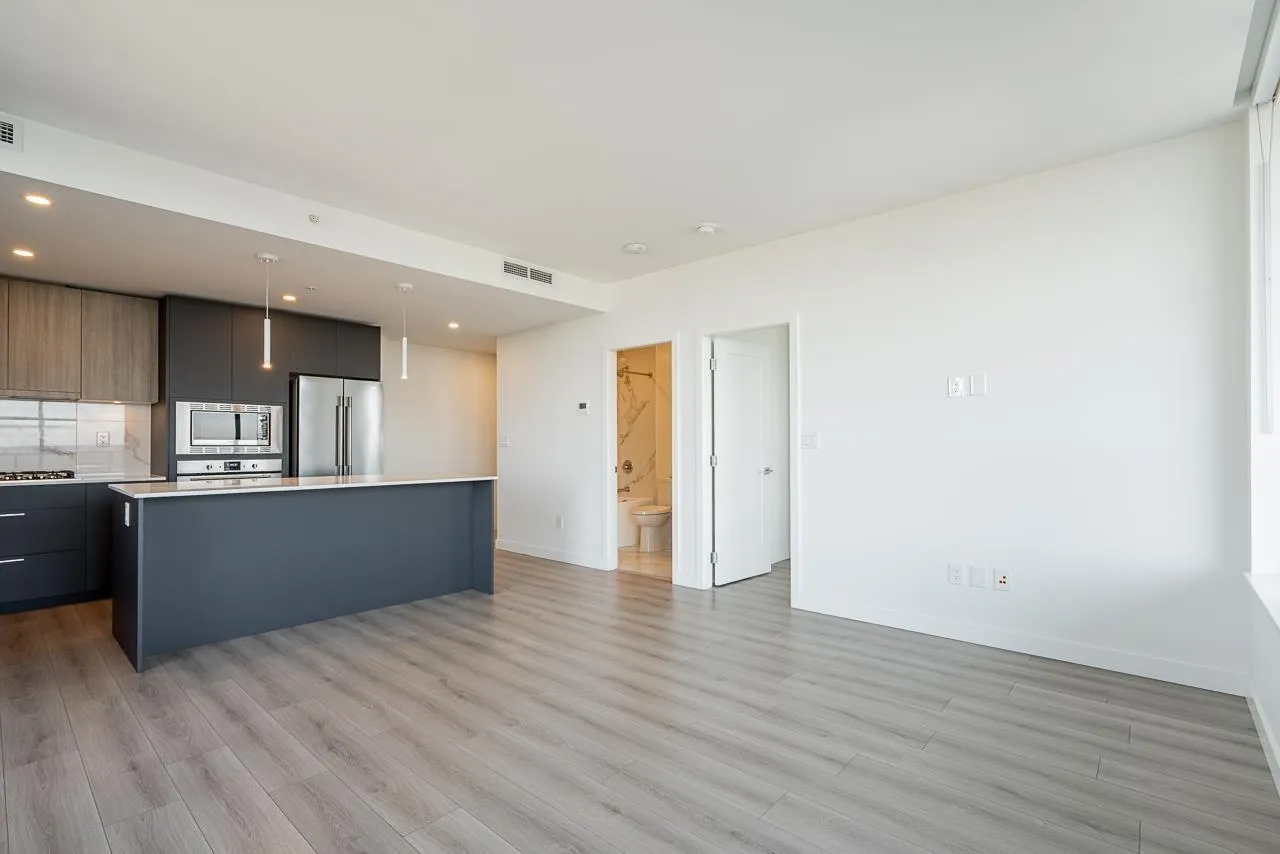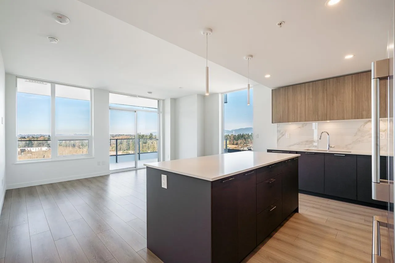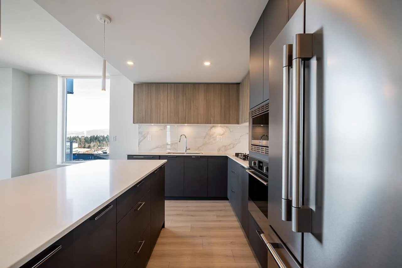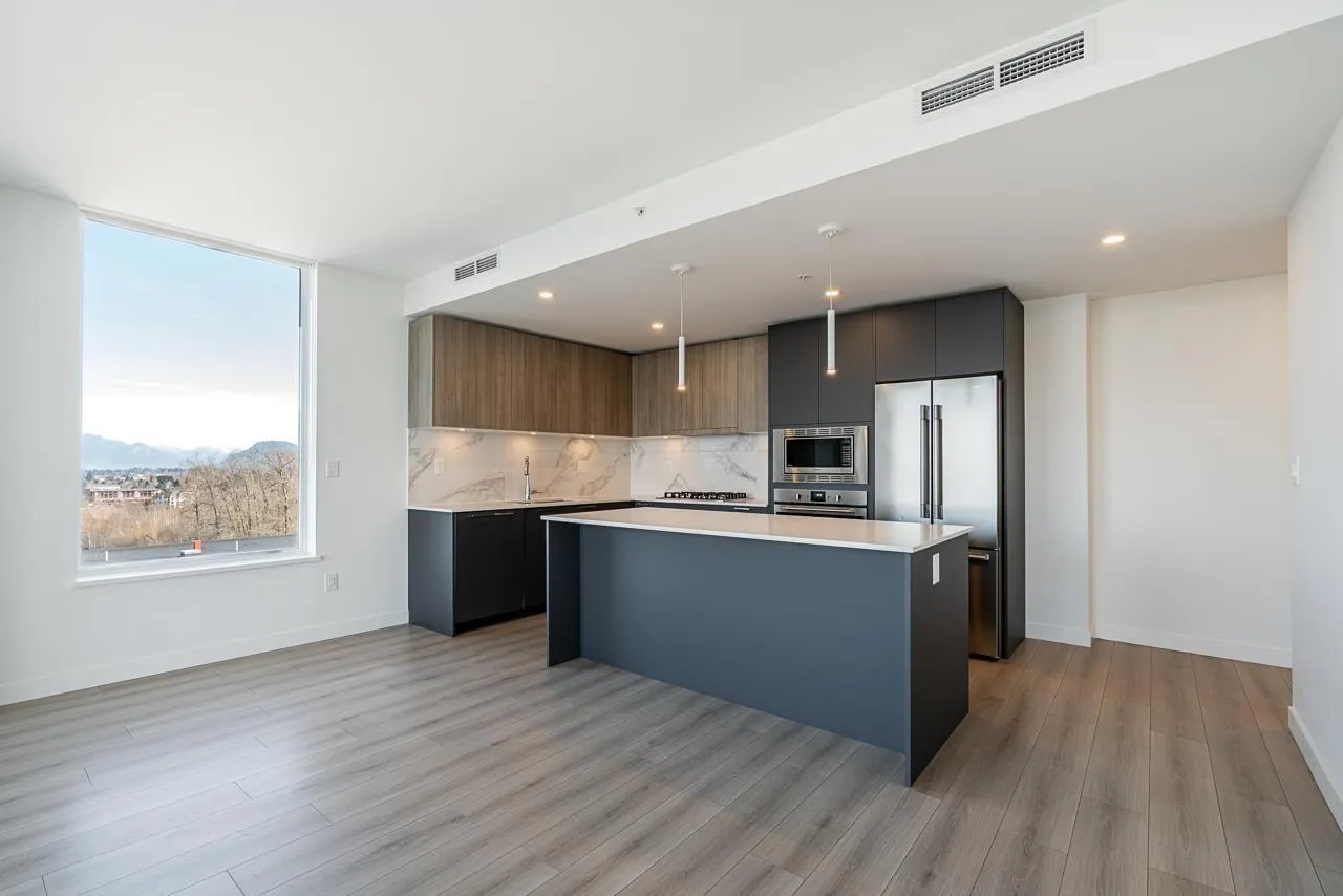 Welcome to The Towers! This spectacular 1 Bed + Den corner unit offers breathtaking, panoramic mountain views that will captivate you daily. Flooded with natural light from its prime vantage point, this modern residence is the epitome of urban living. Stay cool with built-in A/C and enjoy an efficient layout featuring high-end appliances designed to maximize space and functionality. Located in a premium concrete high-rise, this home includes one EV-ready parking stall and a storage locker. Situated in a vibrant community, you are steps from schools, premium shopping, and transit. Enjoy exclusive access to incredible building amenities, including a gym, lounge, and multi-purpose room. Don't miss this fantastic opportunity to own with an unforgettable mountain view! (id:27476)