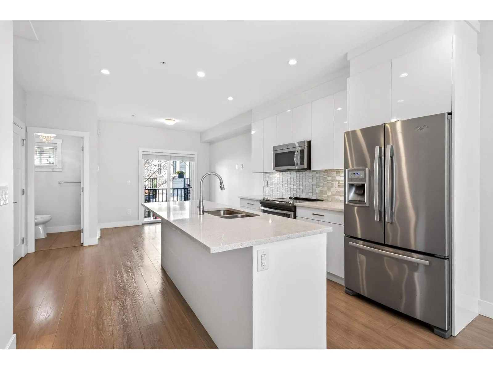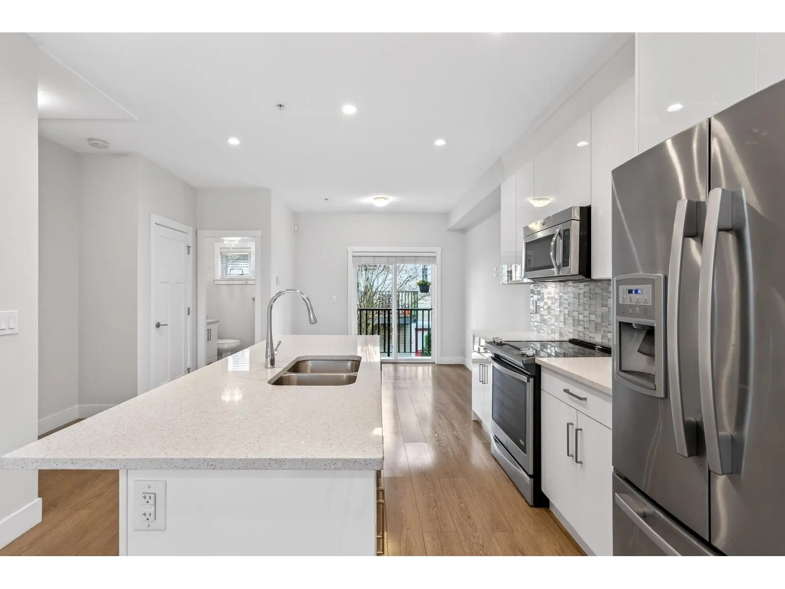 Welcome to Lotus Living in the highly sought-after Willoughby community! This spacious and meticulously maintained 3 beds/2.5 baths townhouse offers a bright, open-concept layout designed for comfortable family living and effortless entertaining. It features a deluxe kitchen with quartz countertops, a MASSIVE island& S.S. appliances, convenient powder room, a generous living room, an adjacent dining area, plus an extra nook-perfect for a home office or kids' play space.Upstairs boasts a stunning primary bedroom with soaring vaulted ceilings, a walk-in-closet, and a private ensuite. Two well-sized bedrooms and a separate 4-piece bathroom complete the upper level. Enjoy a fully fenced, kid- and pet-friendly yard, plus a private balcony for outdoor relaxation.LOW strata fees and ample visitor parking make daily living even more convenient. Ideally located within walking distance to Richard Bulpitt Elementary, Willoughby Town Centre, and parks. Just a 5-minute drive to Highway 1 and 200 Street for easy commuting. (id:27476)