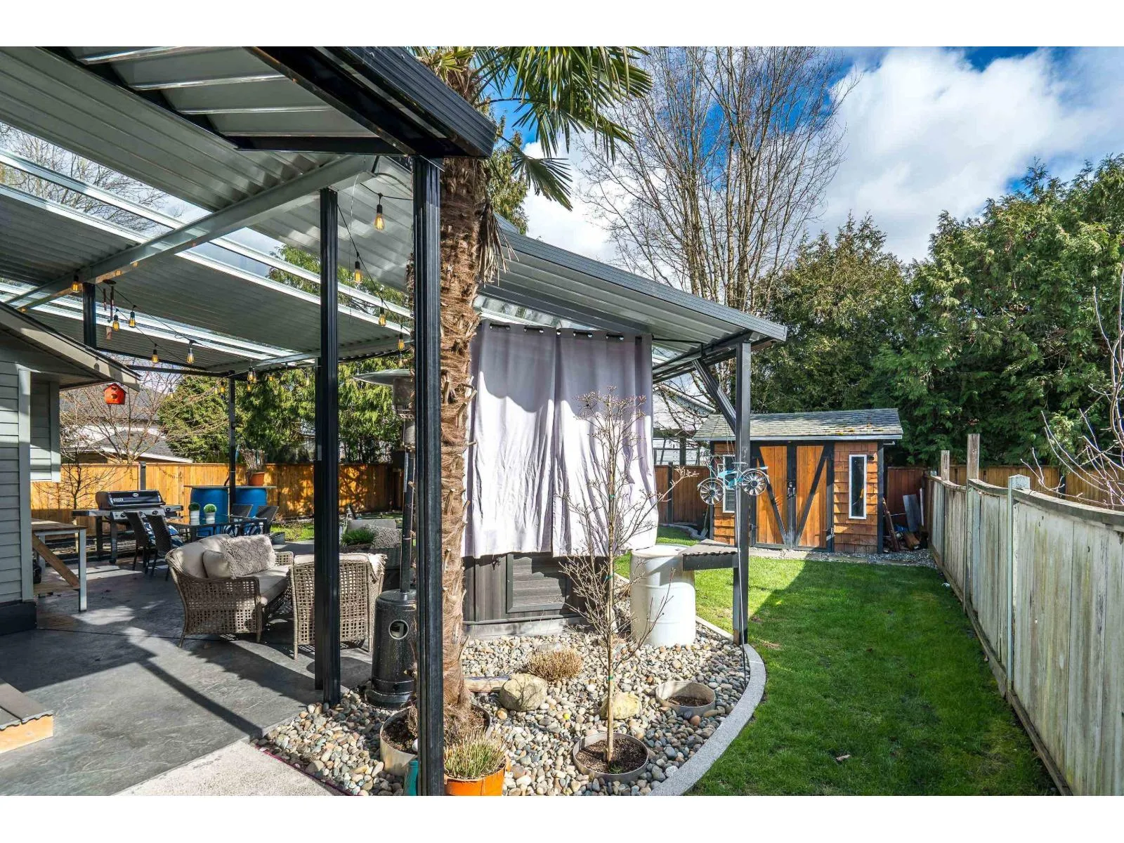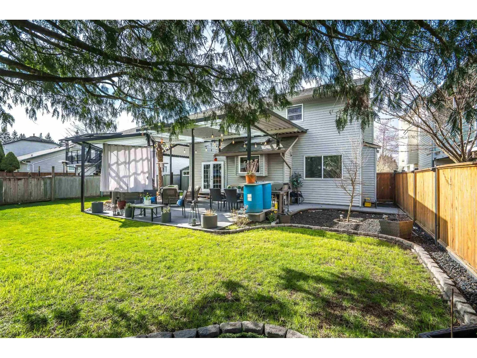 Ideally located a short walk to Blacklock Fine Arts Elem. H.D. Stafford Middle School, City Park, Al Anderson Pool & Langley Music school. This beautiful 2-storey home offers comfort & style throughout. Featuring 3 spacious bdrms, an oversized primary w/ a large W/I closet & 3-piece ensuite. The main floor boasts a bright, open layout ideal for everyday living. The kitchen is equipped w/newer S/S appliances. A formal dining room w/ alcove for a hutch or flex rec room and a large living room features a cozy gas fireplace. Fully fenced backyard, perfect for relaxing or hosting guests w/ impressive 330 sf covered stamped concrete patio complete w/ saltwater hot tub, plus two storage sheds. Recent upgrades incl. a roof 2017, furnace & A/C 2022, HW tank 2024 &upper-floor windows 2023. (id:27476)