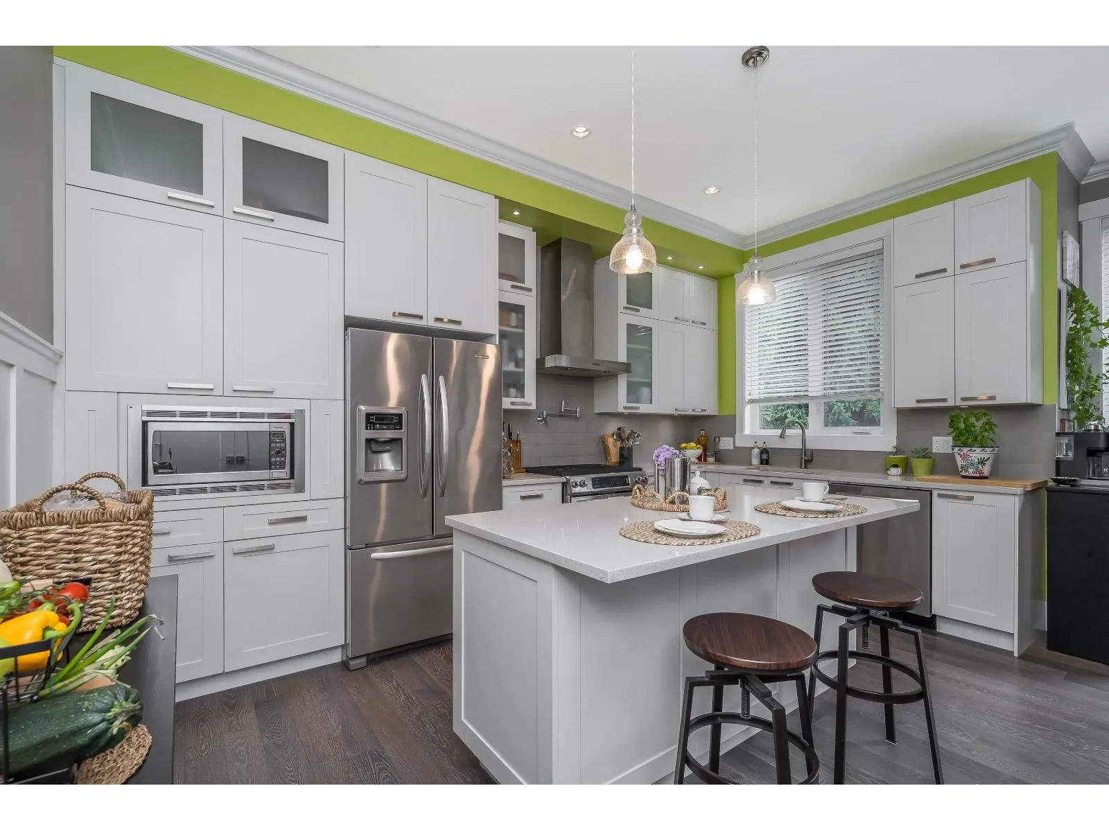Beautiful 2 storey & basement home on a quiet cul-de-sac in the desirable area of Murrayville. Open concept on the main floor living space w/10ft ceilings & a large south facing bright welcoming living room plus den. Features include gas stove & pot filler, stainless appliances, huge island, quartz counters, pantry, gas fireplace & hardwood flooring. French doors from the kitchen leads to the yard with a lovely patio & mature landscaping. Upstairs a large primary with vaulted ceiling, w/i closet, 5 pc bath with his 'n her sinks, w/i shower & soaker tub. 4 pc main bath & 2 more bedrooms. Bonus is a spacious family room upstairs. Private lower level living with separate entry for in laws or guests plus a media room. Sound system w/ built in speakers thru out, wired for a Hot tub & gas bbq. (id:27476)