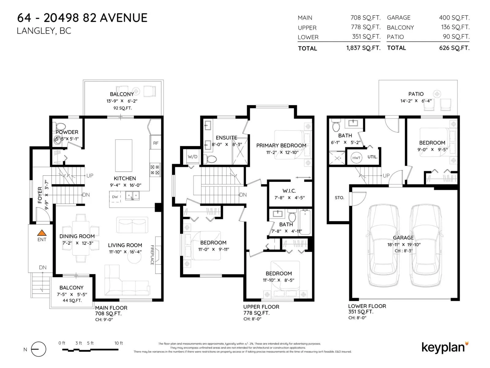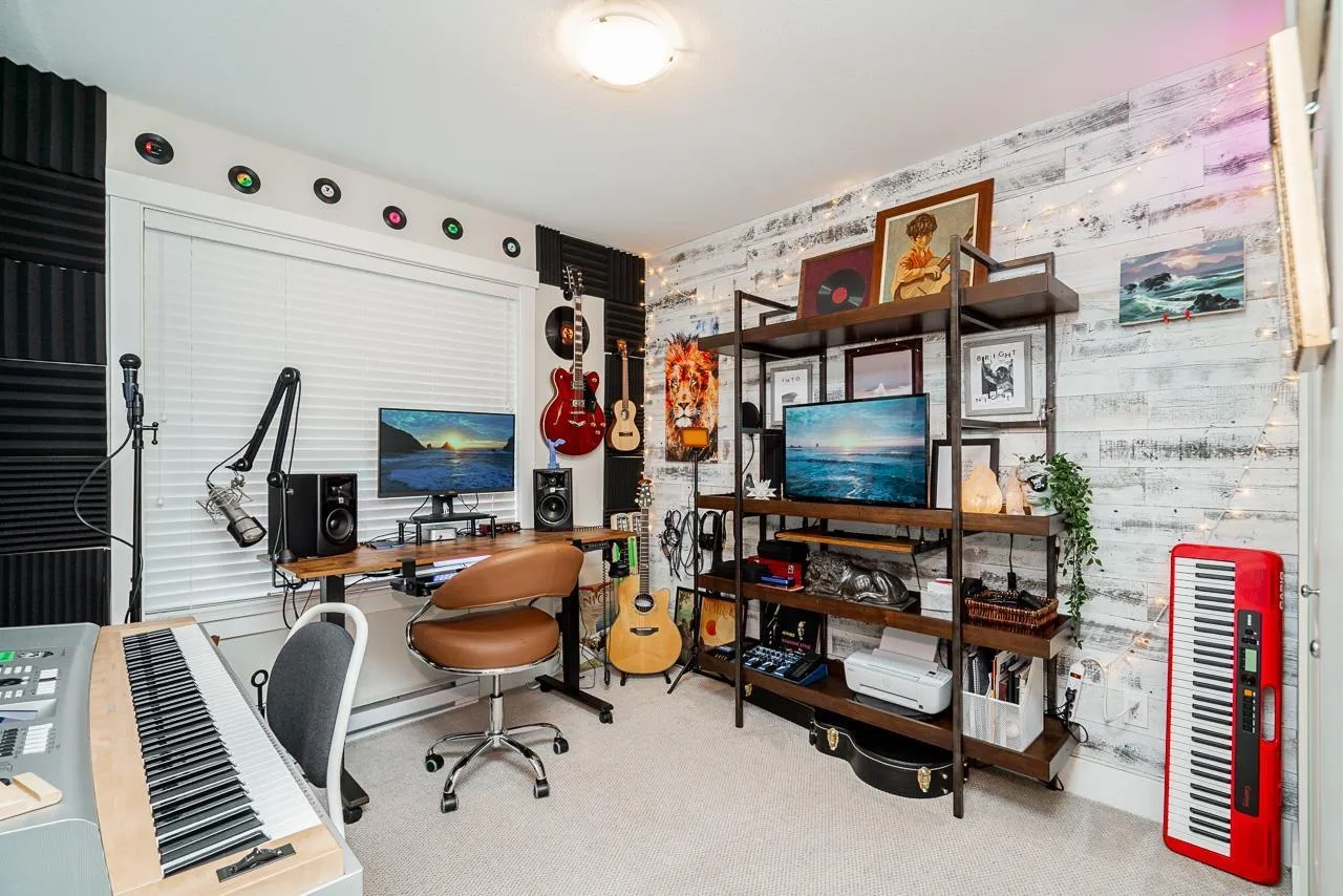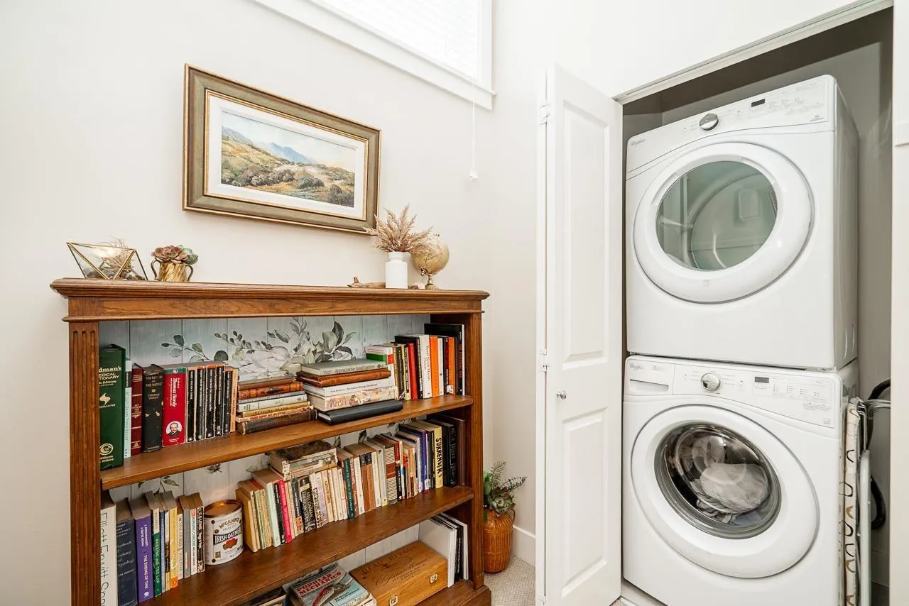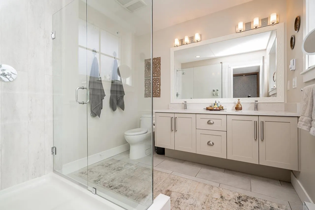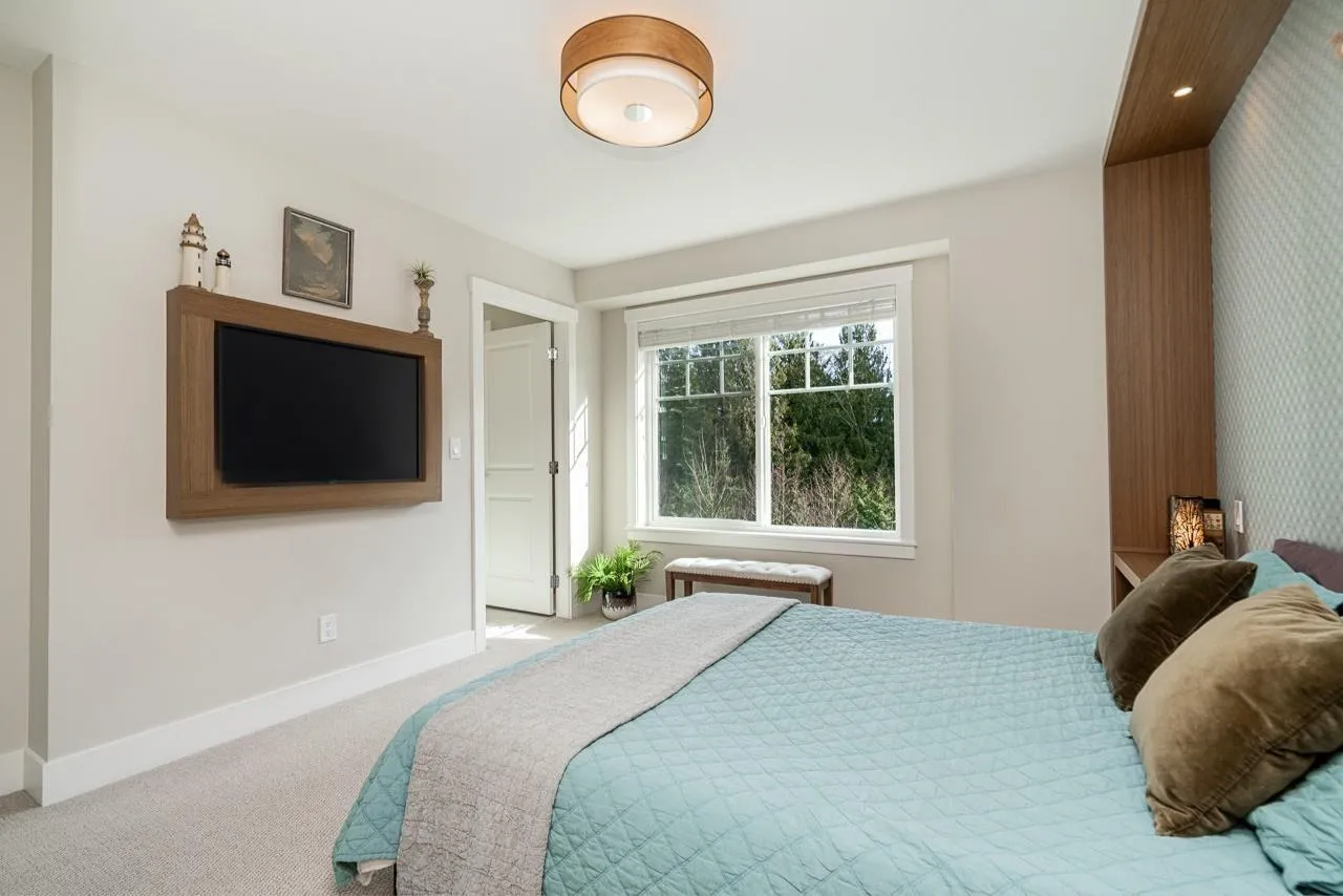 Beautifully maintained end unit, 4 bed, 4 bath townhome with 4 car parking in the sought-after Gabriola Park community. Backing onto a private GREEN BELT with no neighbors on two sides, this home offers rare privacy and peaceful views. The bright open-concept main floor features 9' ceilings, a spacious living and dining area, and a modern kitchen with oversized quartz island, shaker cabinetry, and stainless steel appliances. Enjoy morning sun on the east-facing balcony off the kitchen, plus a fully fenced yard and patio perfect for kids or pets. Upstairs offers three generous bedrooms including a primary suite with walk-in closet and double vanity ensuite. Family and pet-friendly complex with playground, clubhouse, and trails, all close to schools, parks, shopping and local amenities. (id:27476)